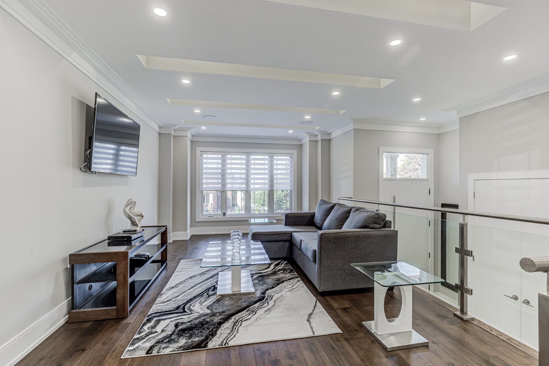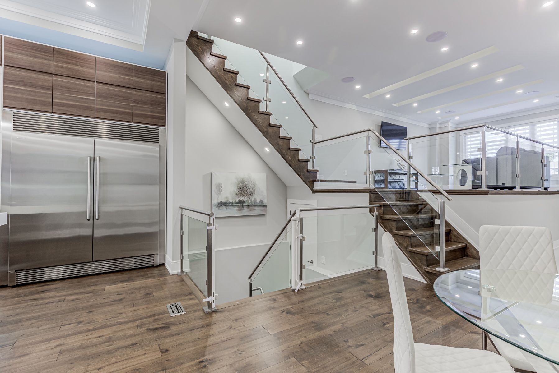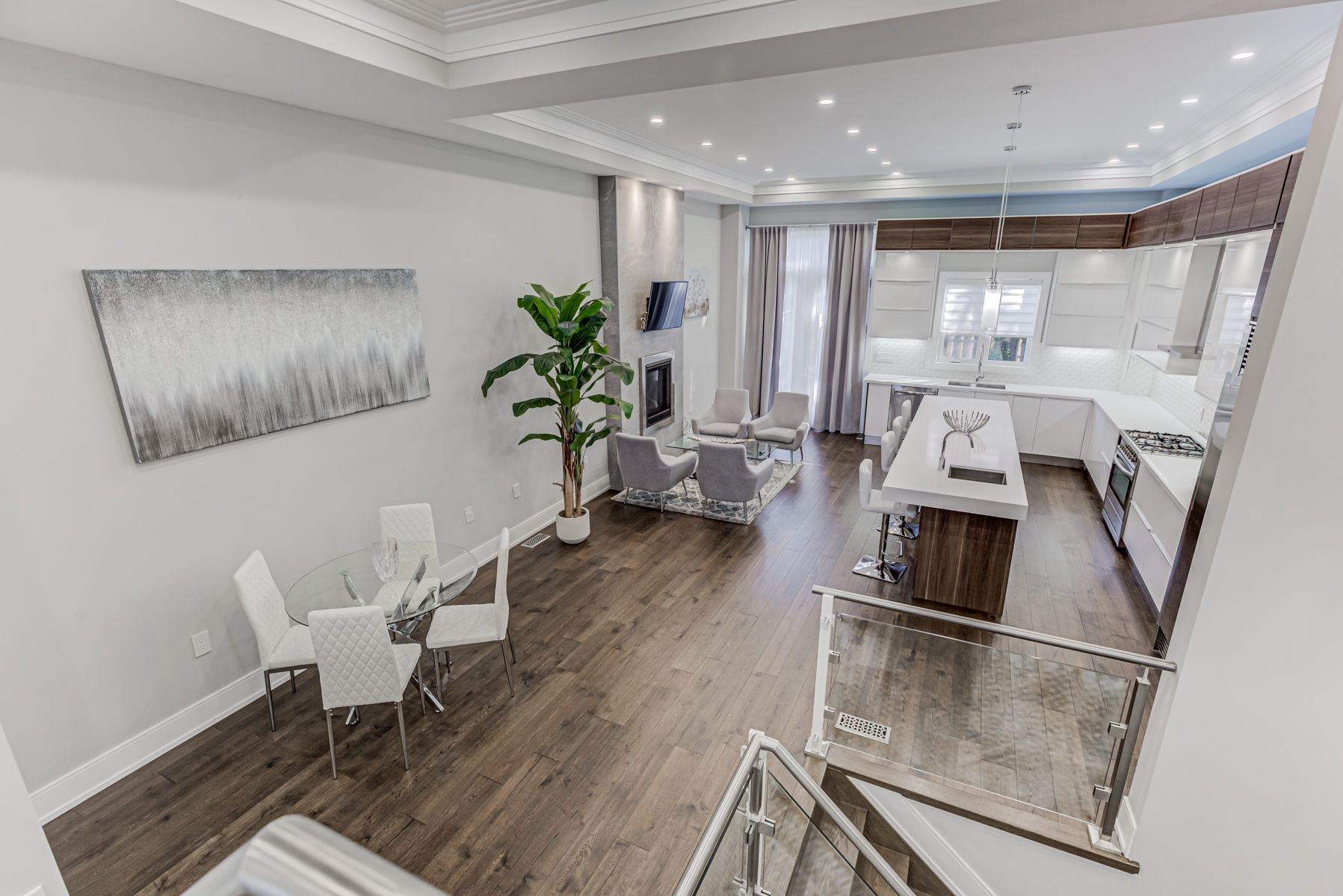 Custom Built Contemporary House with Stone Facade Designed for Grand Entertaining. Featuring 12' Ceilings, Wide Plank Engineered Oak Hardwood Floors. Chef Kitchen Design with Grand 13' Island, Pot Filler, Gas Fireplace, Ceiling Speakers with Modern Plaster Molding and LED Ceiling Design, 2nd Floor Skylights and Chic Chandelier. Laundry on Second Floor and Basement. W/O to Balcony from 2 Bedrooms. Master Bedrm W/His+Her Closet and Spa Like Ensuite. Spacious Walk-Up Basement W/4PC Bath. Interlocked Driveway. Glass Railings Through-out the House.