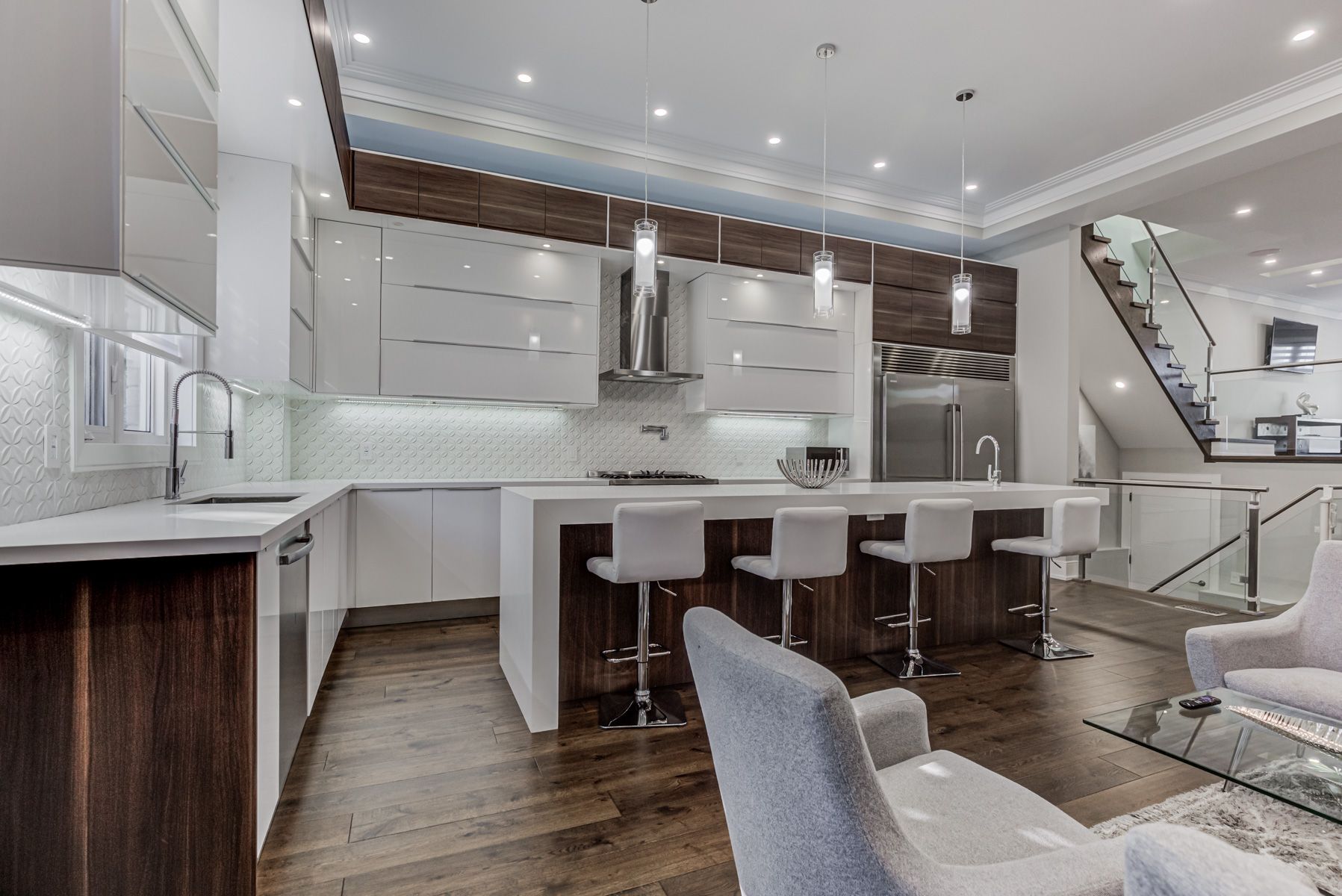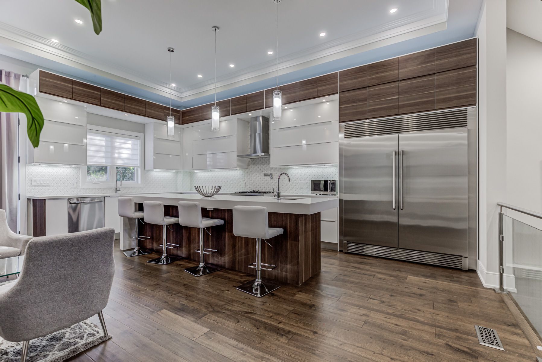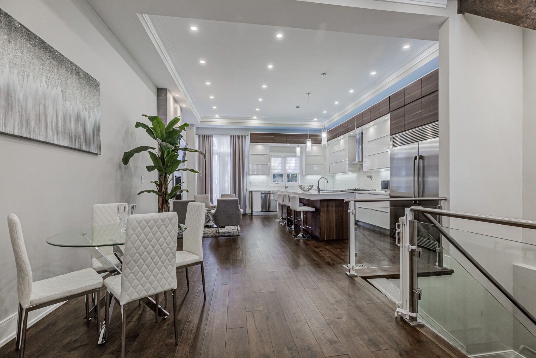 Custom Built Contemporary House with Stone Facade Designed for Grand Entertaining. Featuring 12' Ceilings, Wide Plank Engineered Oak Hardwood Floors. Chef Kitchen Design with Grand 13' Island, Pot Filler, Gas Fireplace, Ceiling Speakers with Modern Plaster Molding and LED Ceiling Design, 2nd Floor Skylights and Chic Chandelier. Laundry on Second Floor and Basement. W/O to Balcony from 2 Bedrooms. Master Bedrm W/His+Her Closet and Spa Like Ensuite. Spacious Walk-Up Basement W/4PC Bath. Interlocked Driveway. Glass Railings Through-out the House.
