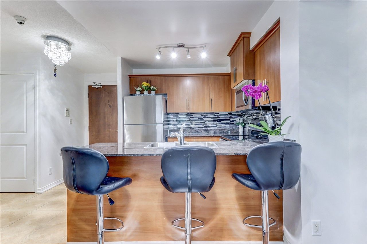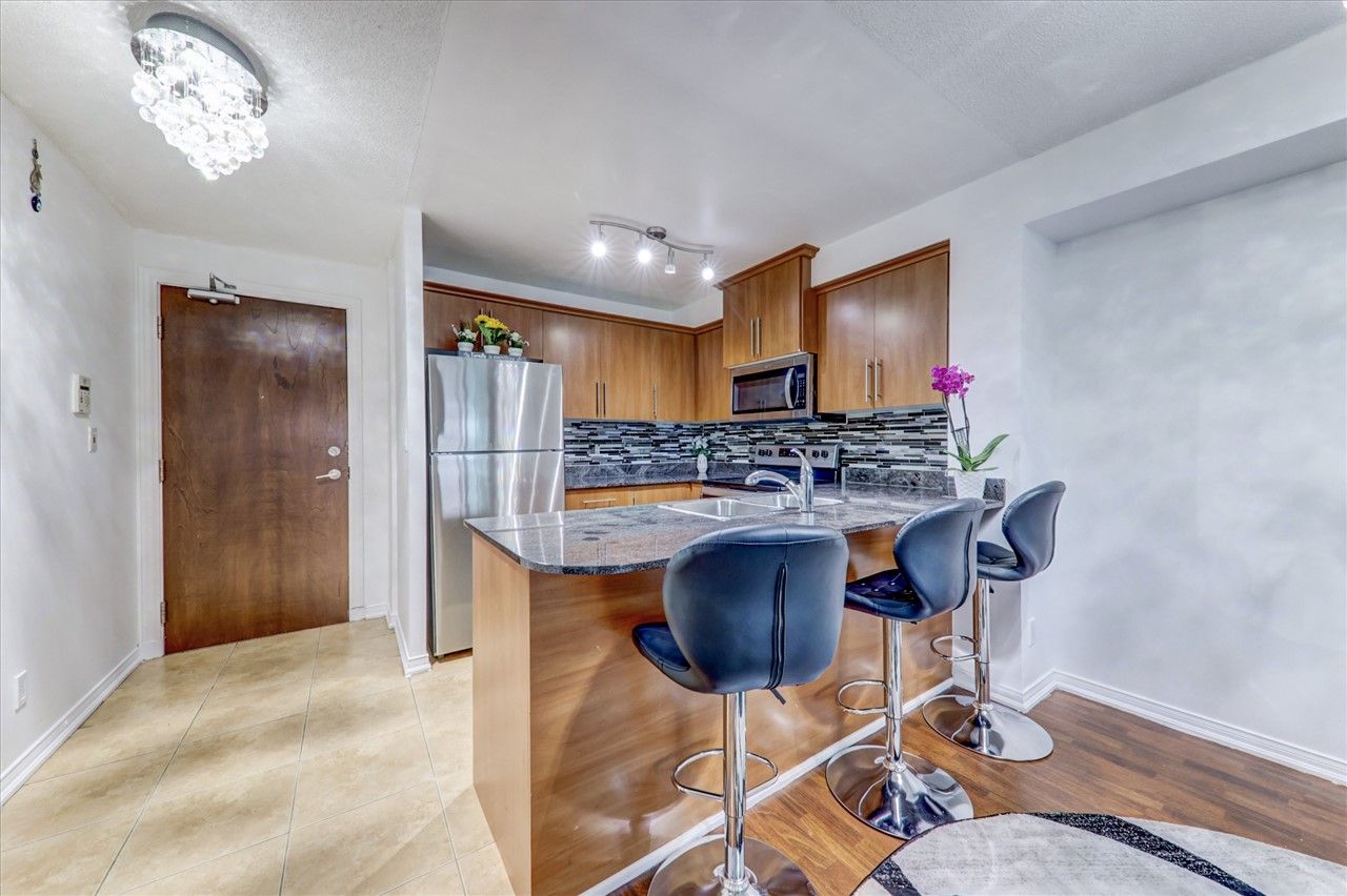 Beautiful 1 Bedroom + 1 Den Condo W/Walkout To Balcony; South Views. Den Can Be Used As 2nd Bedroom. Clean And Modern And Well Kept Unit. Upgraded Kitchen W/ Granite Counter Top, B/I Microwave. Fully Upgraded Washroom & Freshly Painted. Bright & Spacious. Building Amenities Include 24 Hr Concierge, Gym, Game Room, Party Room and Guest Room. Great Location With Easy Access to Hwy 401, Centennial College, Shopping, Public Transportation & Place Of Worship.S/S Fridge, Brand New S/S Stove, B/I Microwave, B/I Dishwasher, Front Load Washer/ Dryer, All Light Fixtures, Window Coverings, 1 Parking