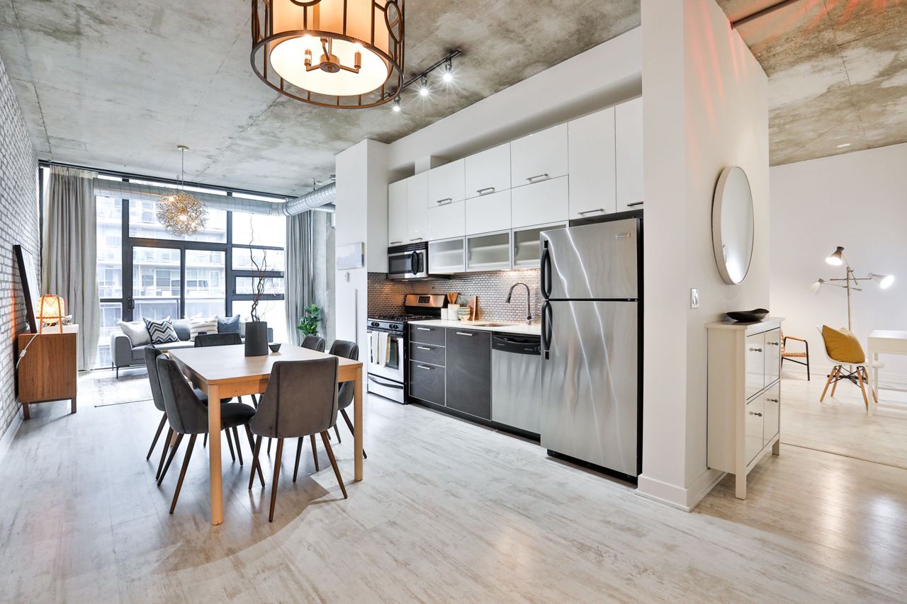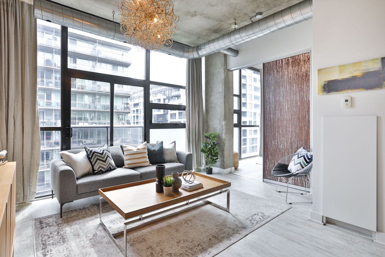 An Incredible Opportunity To Own In One Of King West's Most Iconic Addresses - Sixty Lofts! This Expansive, 857 Square Foot One-Bedroom Plus Den Residence Offers A Unique & Luxurious Living Experience. The Dining, Living Rooms & Modern Kitchen Are Designed For Seamless Entertaining On Any Scale & Showcase A Breathtaking East Exposure. The Soaring, Exposed Concrete Ceilings Provide A Warm, Yet Raw Soft Loft Experience. Indulgent, Primary Bedroom Retreat Has Easy Access To A Spa-Like Semi-Ensuite Bath & Large Closet With Top Of The Line Custom Organizers. The Spacious Enclosed Den Is Perfect For A Home Office, Guests Or A Nursery.Unbeatable Location! Steps To Transit, Acclaimed Restaurants & Shopping Of King & Queen West, Easy Access To Entertainment & Financial Districts, Martin Goodman Trail & Lake Ontario, QEW, Parks & Hotel One.