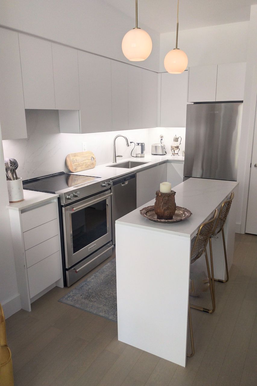 Stainless Steel Appl Quartz Counter Breakfast Bar