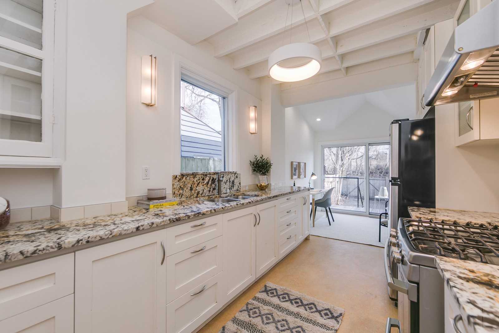 Riverside 1890'S Victorian Gem On Iconic De Grassi. Bright Open Concept Living/Dining, Custom Designed Kitchen W/Granite Counters Plus Breakfast Nook/Den With Vaulted Ceiling And Walk-Out To Beautifully Landscaped Gardeners Paradise. The Second Floor Boasts 2 Bedrooms And An Oversized Newly Renovated Bathroom. 2 Car Parking. Third Floor Loft Potential. Steps To Queen St E, Leslieville's Best Cafes, Restaurants, Boutiques, Jimmie Simpson Park, And More. Tight-Knit Family Community. Minutes To Downtown, Major Highways. Incl Existing Light Fixtures, Fridge, Gas Stove, Washer/Dryer, Cac, Gas Furnace. Excl Sheers. Home Inspection Avail By Email. Ask L/A About 3rd Floor Loft Design.