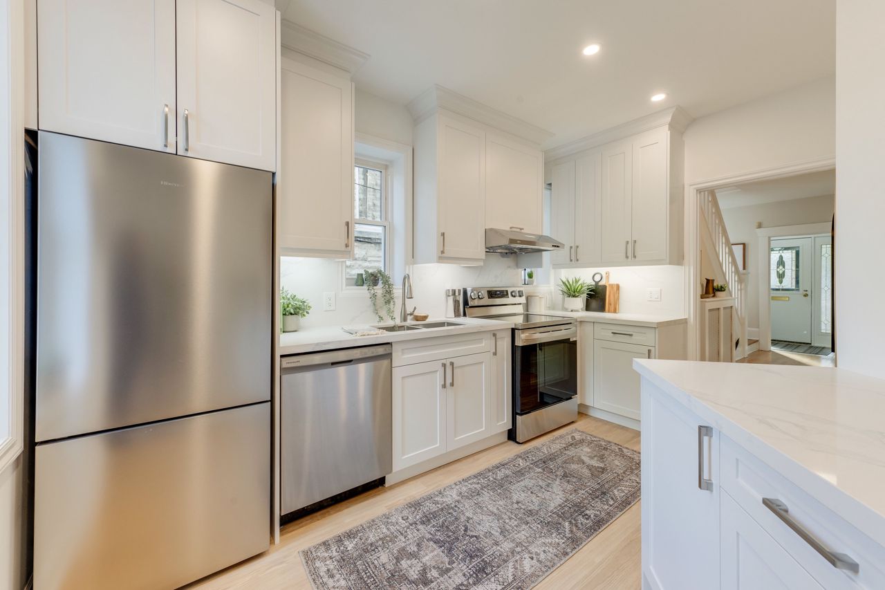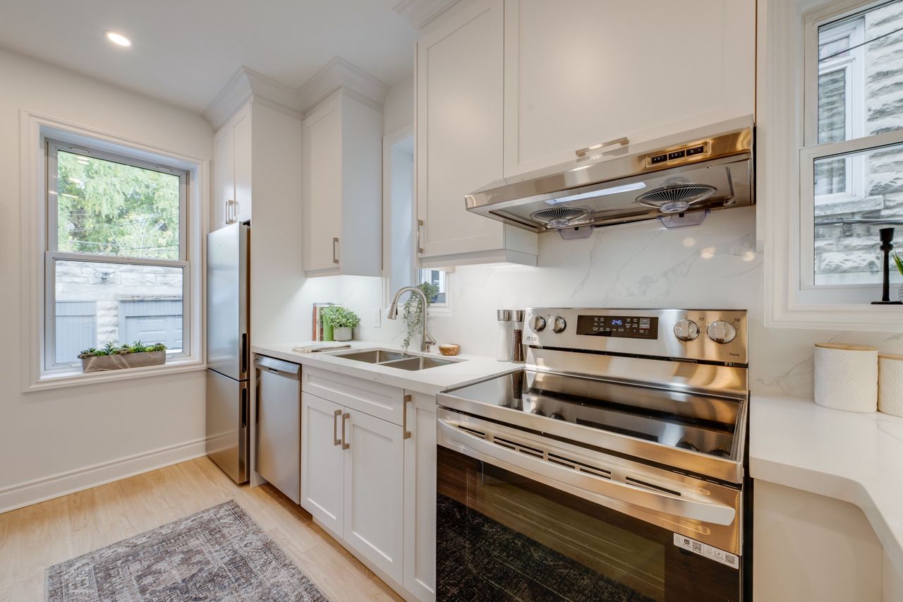 This gorgeous, spacious, and updated 5-bedroom family home features a double garage and a 10-foot wide driveway. It has a separate entrance to an in-law suite with a 7-foot basement height, located on a sought-after street in the esteemed Regal Heights neighborhood. The home has a beautiful and unique 1920s stone exterior with a practical large covered front porch and offers approximately 2200 square feet above grade. There's plenty of space to grow into, work from home, and still have the option to customize to your needs. The lovely main floor layout includes a large sun-filled living room and a one-of-a-kind circular dining room, perfect for intimate dinners. The new kitchen features stone counters, stainless steel appliances, and a passthrough and it overlooks the dining room and family room, with sliding doors leading to a large deck with a pergola and a garden. The bathrooms have been beautifully renovated, and the basement has been updated with new vinyl floors and a new kitchenette. Recently re-wired and painted from top to bottom, you just need to unpack. This home is a walker's paradise with a 98 walk score and an 83 transit score. Enjoy all the modern-day conveniences that St. Clair, Regal Heights, and Wychwood have to offer, as you are steps from shops, restaurants, grocery stores, coffee shops, schools (Regal Road Junior PS & Winona Drive Senior PS), parks, the St. Clair streetcar, and The Wychwood Barns.