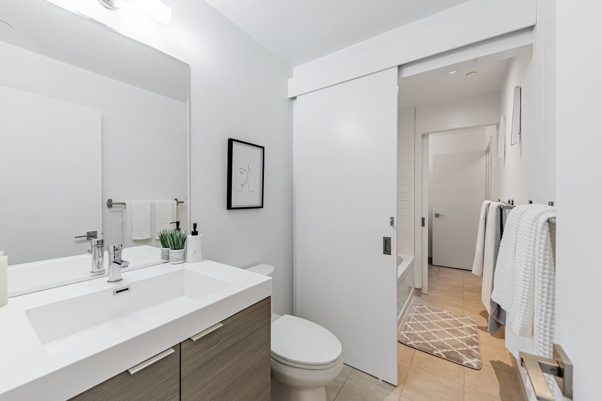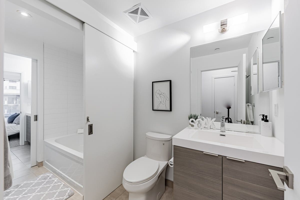 Amazing location!! Luxury condo in prestigious Bayview Village in North York. Vida Condo's is a mid rise Boutique Building offering a 1 BED + DEN with 2 washrooms (Jack & Jill Bath), Den is being used as a 2nd bedroom, functional floor plan allowing you to maximize space usage, Parking + Locker included/INTERIOR:598 SF/EXTERIOR BALCONY:70 SF TOTAL: 668 SF. Open Balcony**High Ceiling**Flr-To-Ceiling Windows magnifying natural sunlight. sunlight***Walking Distance to Bayview Village Mall/Subway/TTC/Park/Ravine/YMCA/Rec Centre/LCBO/Loblaws/Banks/Restaurants. All appliances are upgraded S/S Kitchenaid fridge, stove, dishwasher & built in microwave, Upgraded fullsize stacked whirlpool washer/dryerOwned parking + locker, underground parking offers ample visitors parking. Lobby Lounge W/Fp & Wi-Fi, Sports Bar, Party Room, Bbq Terrace, Guest Suite, Gym, Concierge.
