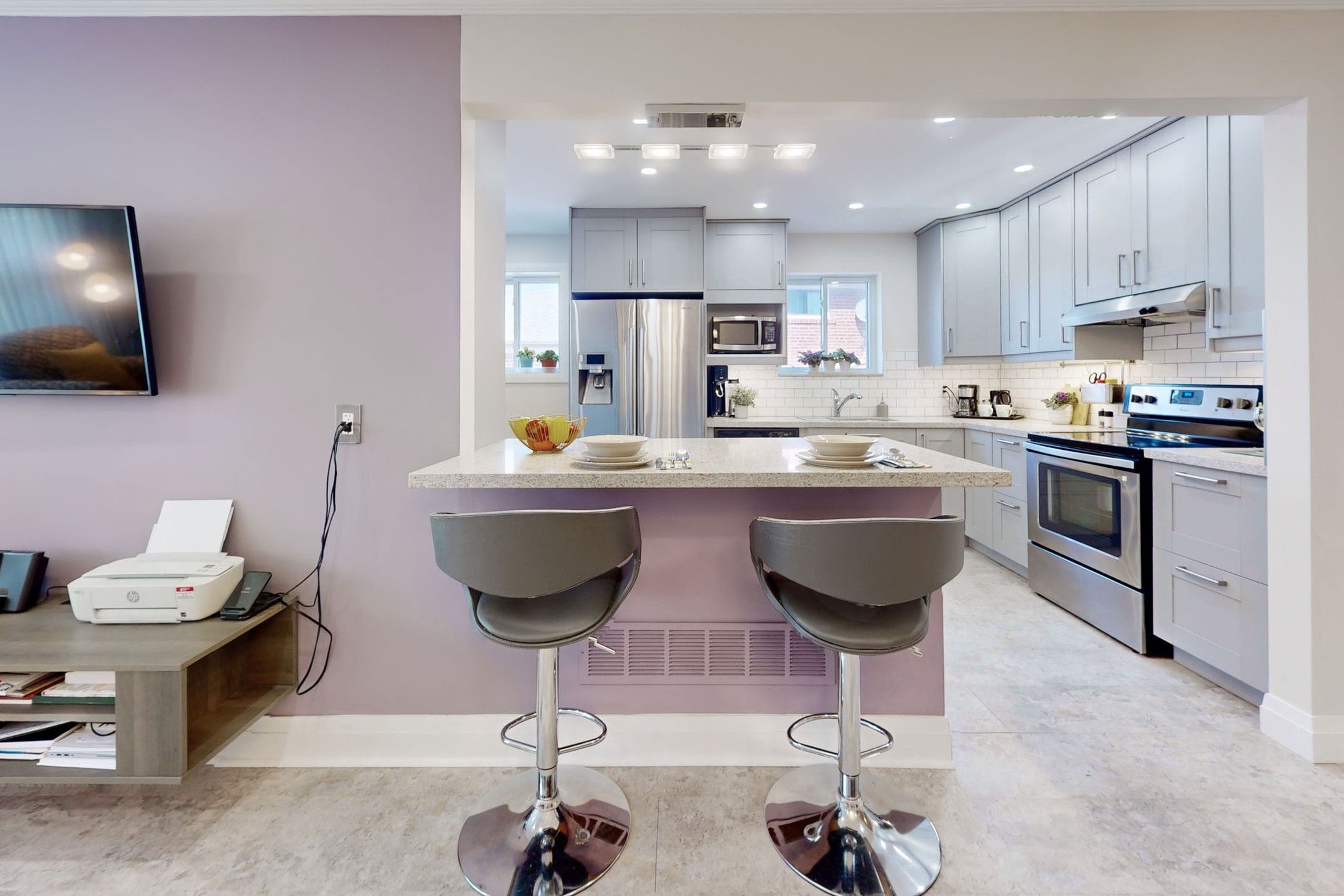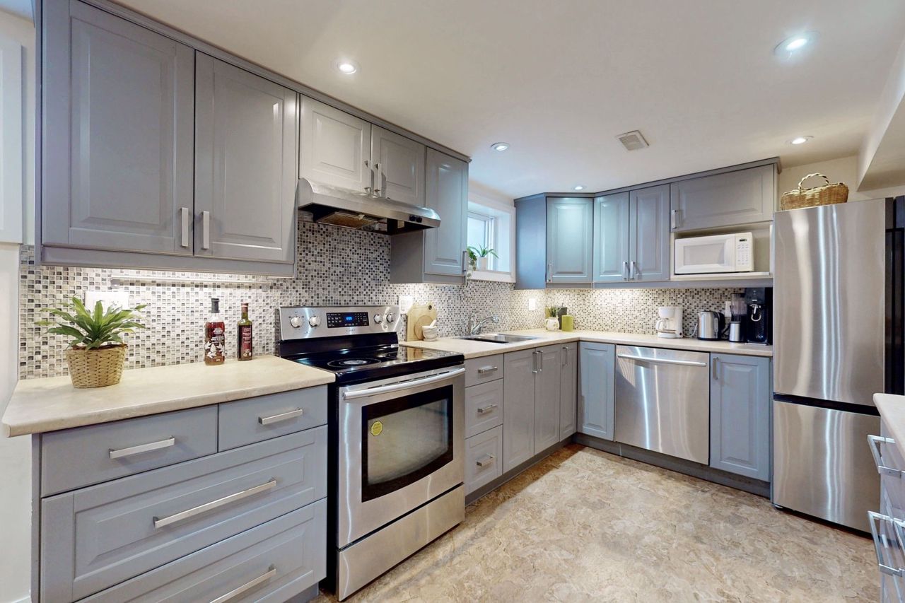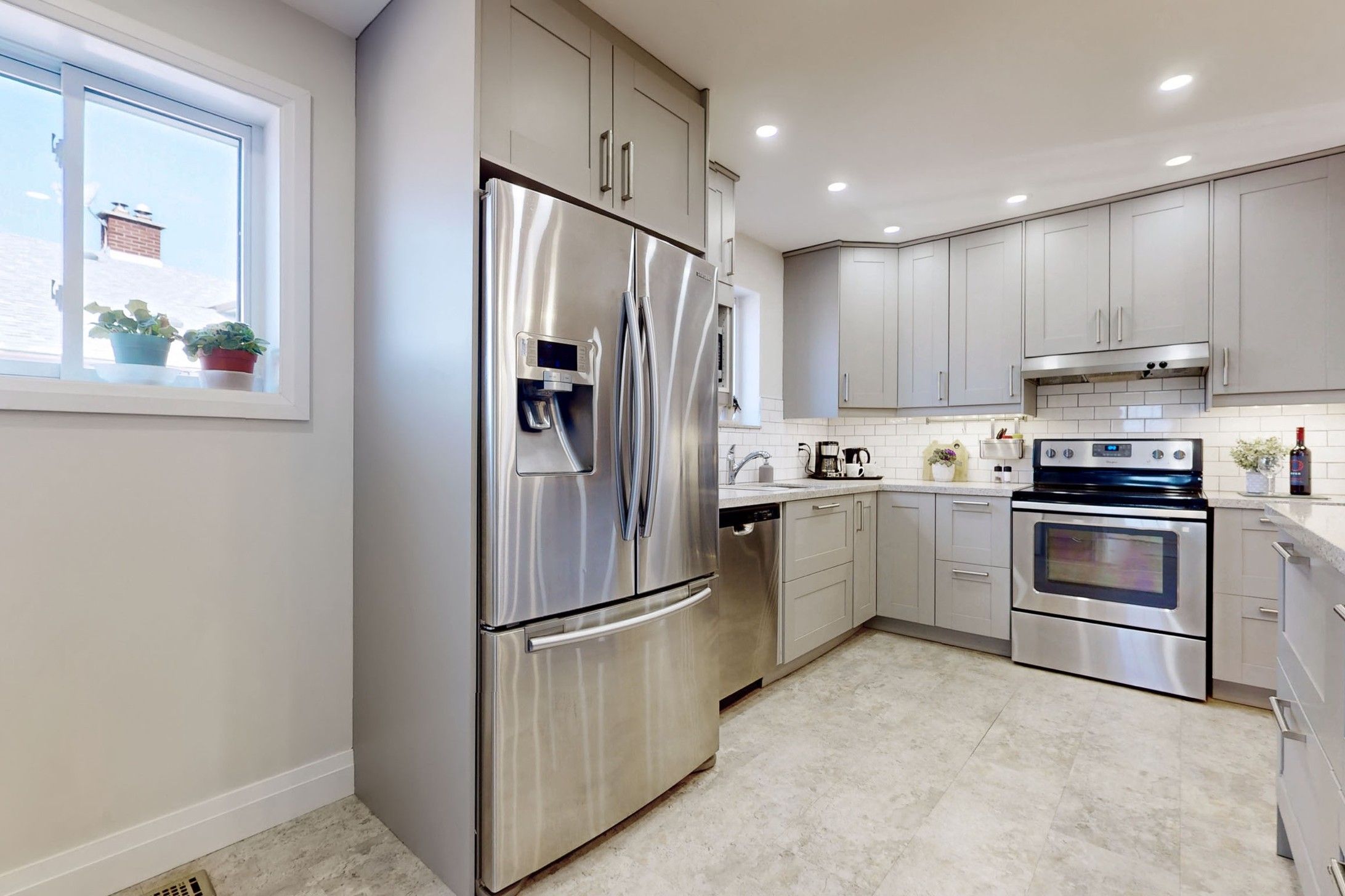 Beautifully Renovated 2 Family Home Like No Other, Shows Like A Model Home! 2 Bright & Renovated Separate Living Areas That Have Been Legally Approved & Retrofitted. Modern Open Concept Main Floor Living Room, Amazing Kitchen With Centre Island, Quartz Countertop, Pot Lights, Pot Drawers, Luxury Vinyl Flooring, Equipped With Cork Underlayment For Soundproofing, Enhances The Main Floor's Living Area. All 4 Bedrooms Are Above Grade. Professional Finished Basement With Renovated Kitchen, Large Bright Windows And Pot Lights, 2 Completely Renovated Bathrooms, Upstairs’ Bathroom Has Heated Floors & Shower Panel Tower. 2 Separate Laundry Areas. Backyard Has Large Patio, Perennial Gardens, Shed, & Gas Line For BBQ Hookup. This Home Is Minutes Of Schools, Elmlea French Immersion School & Grocery Stores, Close To Major Highways (400, 401 & 427) And One Bus To Subway!High-End Stainless-Steel Appliances, 2 Fridges, 2 Stoves, 2 Built-In Dishwashers, 2 Front Load Washers, 2 Front Load Dryers,