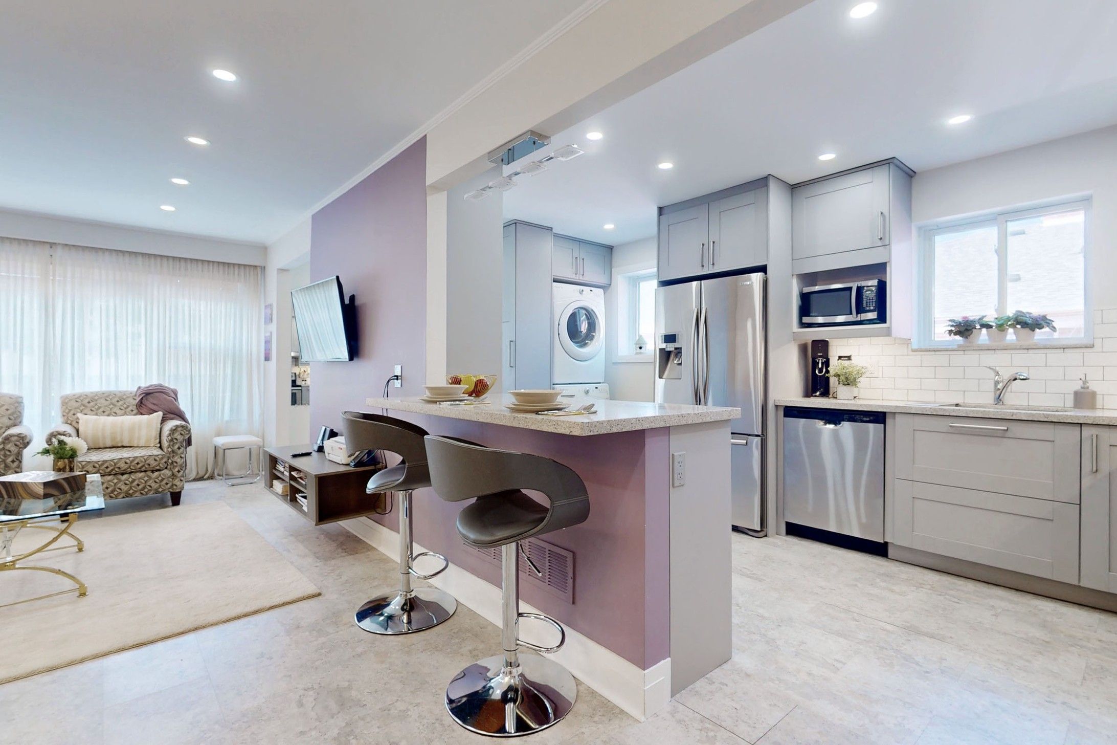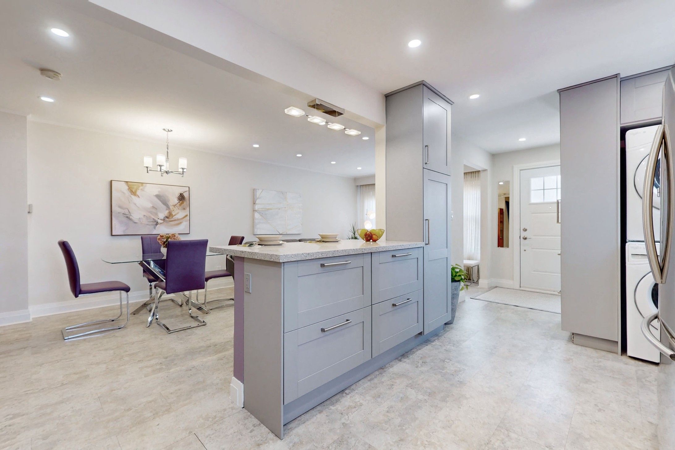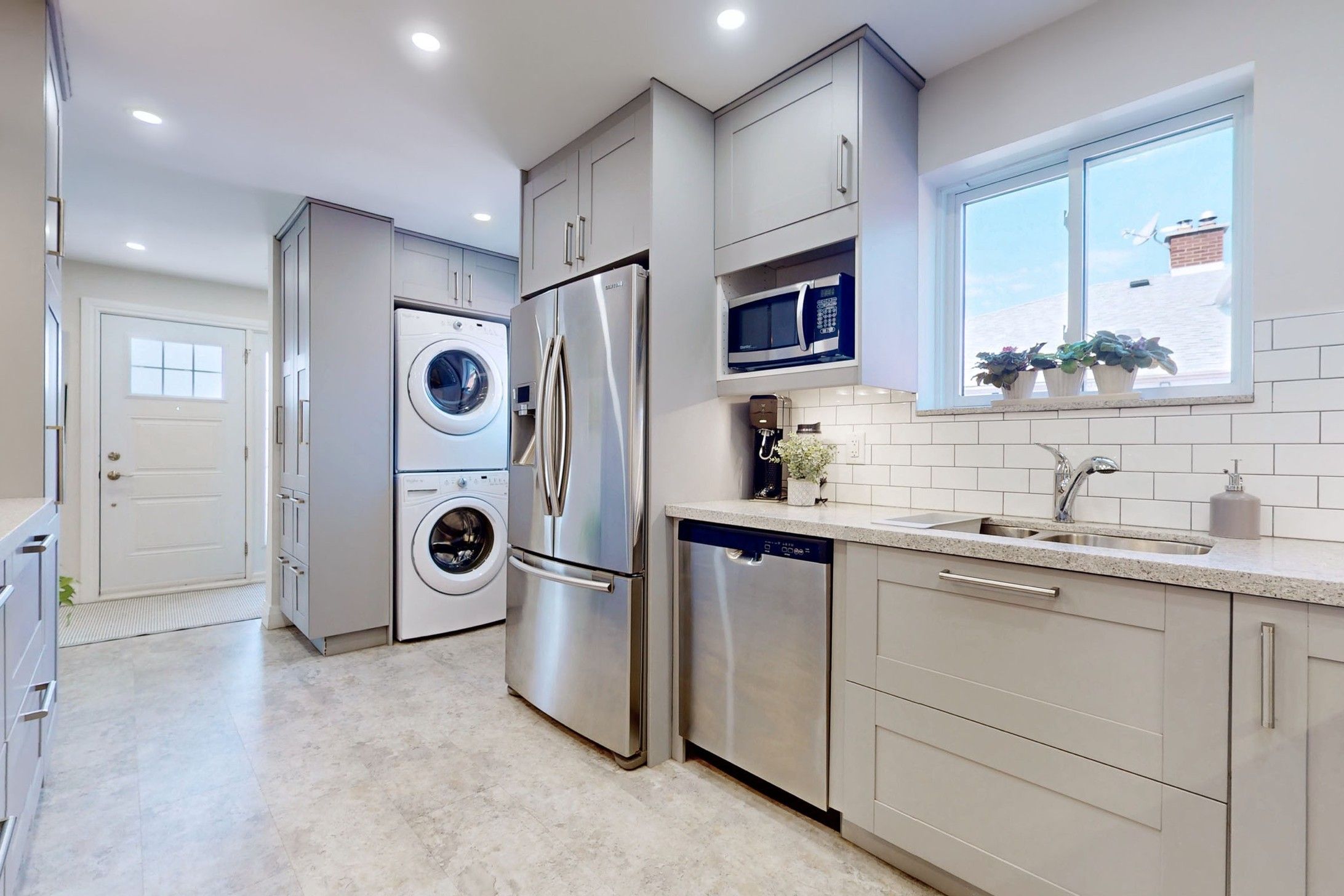 Beautifully Renovated 2 Family Home Like No Other, Shows Like A Model Home! 2 Bright & Renovated Separate Living Areas That Have Been Legally Approved & Retrofitted. Modern Open Concept Main Floor Living Room, Amazing Kitchen With Centre Island, Quartz Countertop, Pot Lights, Pot Drawers, Luxury Vinyl Flooring, Equipped With Cork Underlayment For Soundproofing, Enhances The Main Floor's Living Area. All 4 Bedrooms Are Above Grade. Professional Finished Basement With Renovated Kitchen, Large Bright Windows And Pot Lights, 2 Completely Renovated Bathrooms, Upstairs’ Bathroom Has Heated Floors & Shower Panel Tower. 2 Separate Laundry Areas. Backyard Has Large Patio, Perennial Gardens, Shed, & Gas Line For BBQ Hookup. This Home Is Minutes Of Schools, Elmlea French Immersion School & Grocery Stores, Close To Major Highways (400, 401 & 427) And One Bus To Subway!High-End Stainless-Steel Appliances, 2 Fridges, 2 Stoves, 2 Built-In Dishwashers, 2 Front Load Washers, 2 Front Load Dryers,