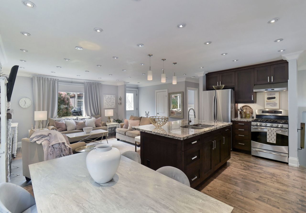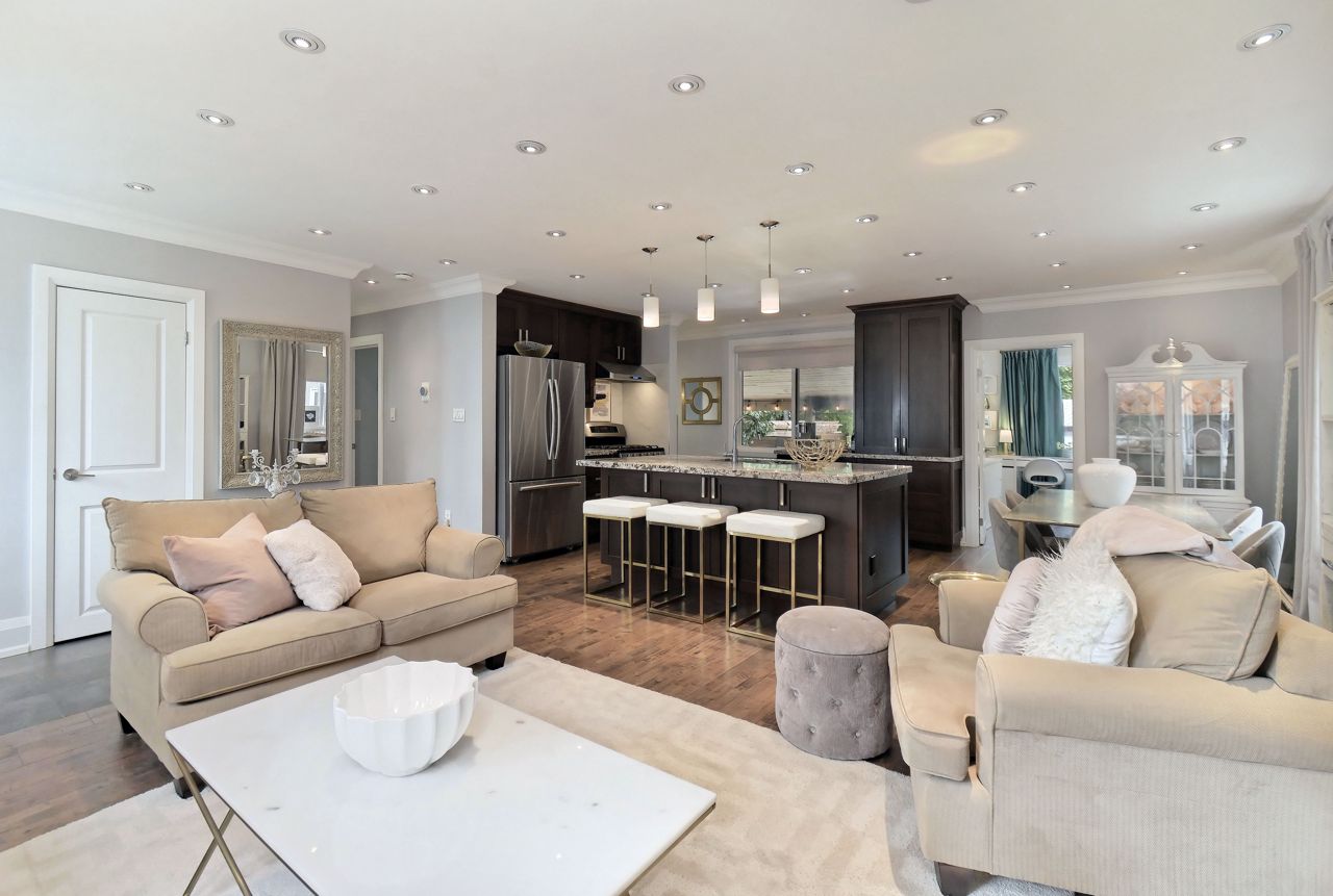 Open Concept Combined W/Living Quartz Counter