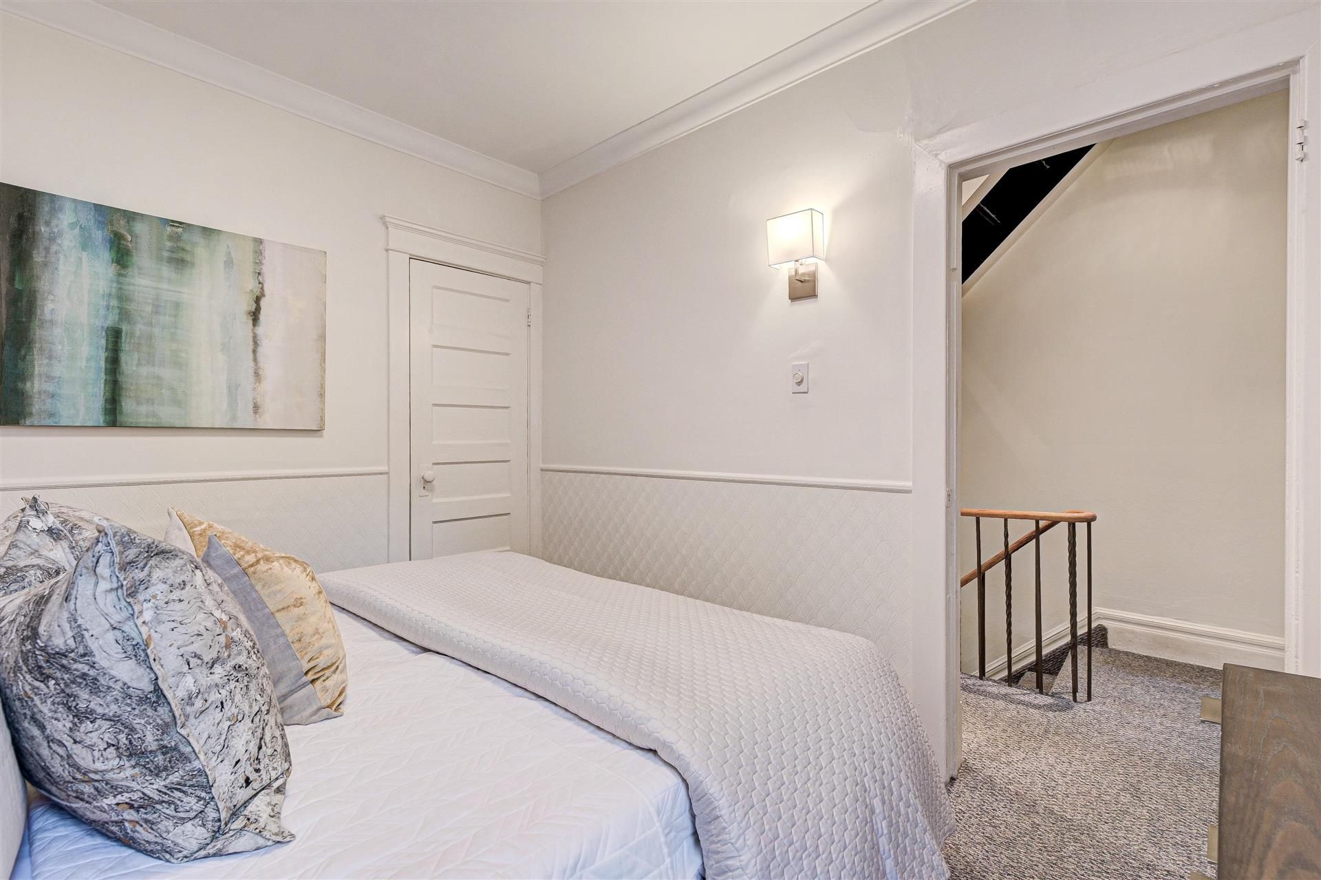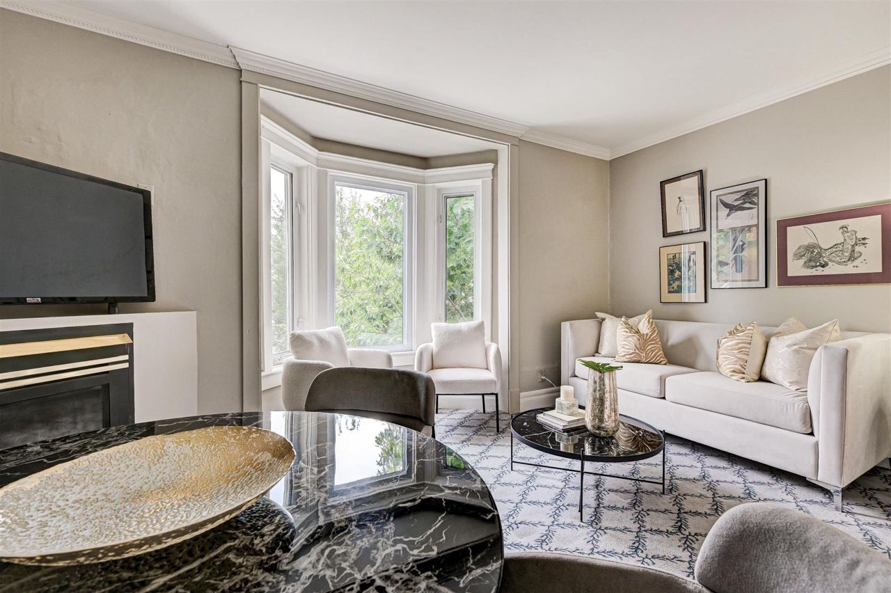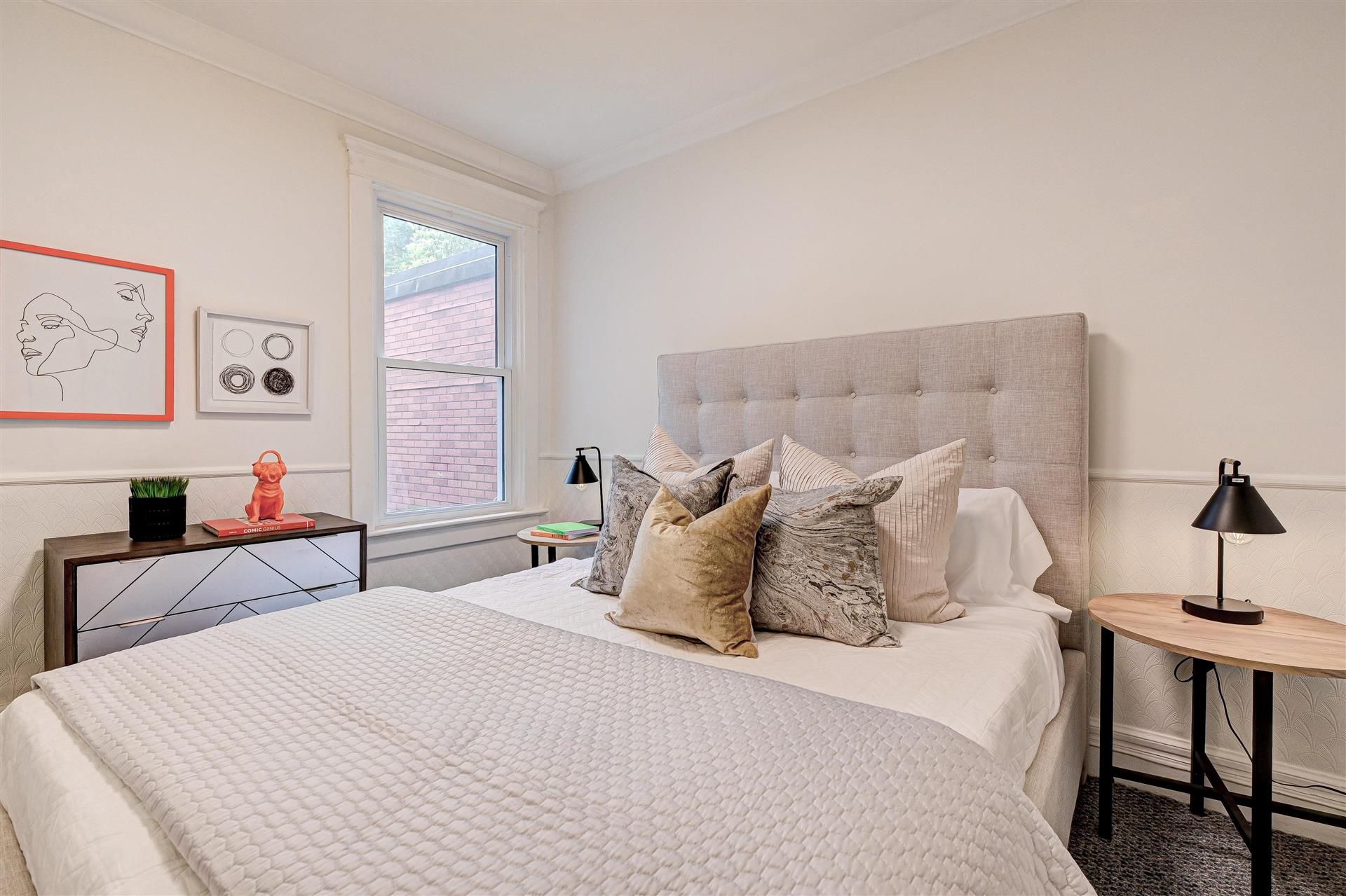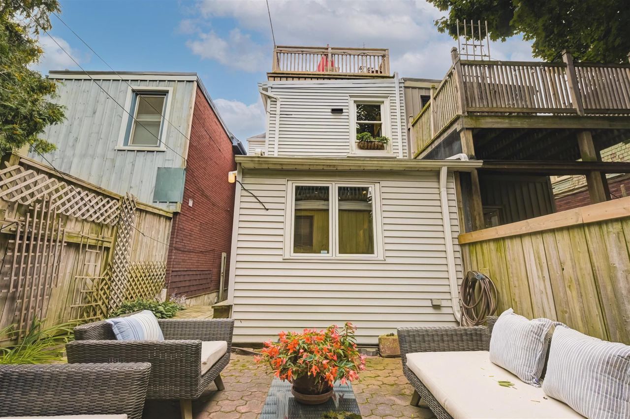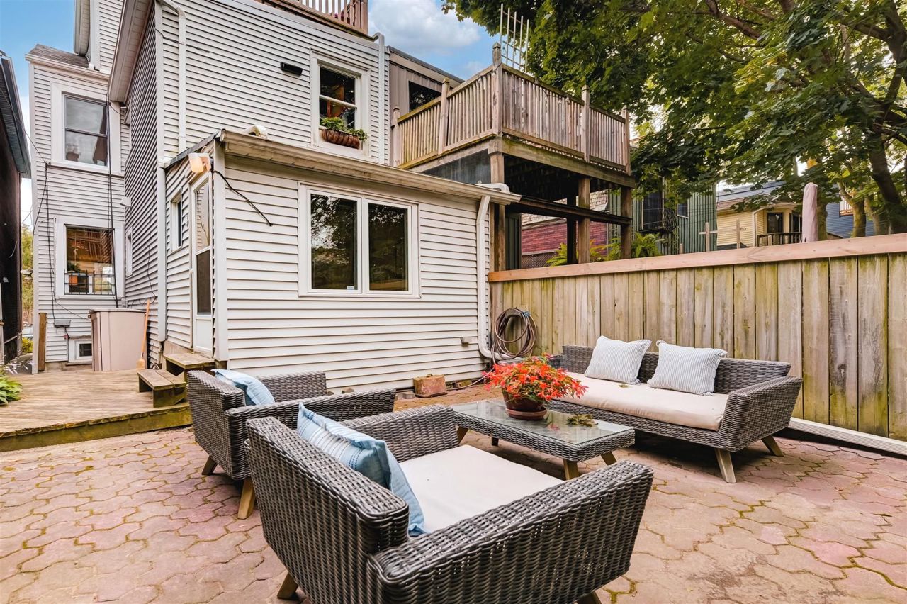 Heavenly on Hunter! Sun-drenched 2.5-storey home in the coveted neighbourhood of The Pocket! Flexible floor plan with generously proportioned rooms. Currently set up as a two-family home that can easily be converted to single family, with a mature low maintenance garden. Live in your dream neighbourhood with incredible supplemental income potential. Lower level features a walk-out -3rd unit potential for further income. The Pocket gives you the best of both worlds: A quiet tree-lined street in a vibrant family-friendly community with beautiful greenspaces, walking distance to the Danforth, Donlands subway station, parks, schools, cafes, restaurants and shops.2 Stoves, 2 Fridges - Main floor fridge and stove as is, Dishwasher, Washer, Dryer, Microwave, All window covers, All electric light fixtures.3rd floor deck furniture, Shed, Wind Sculpture, Safe, Window planters.