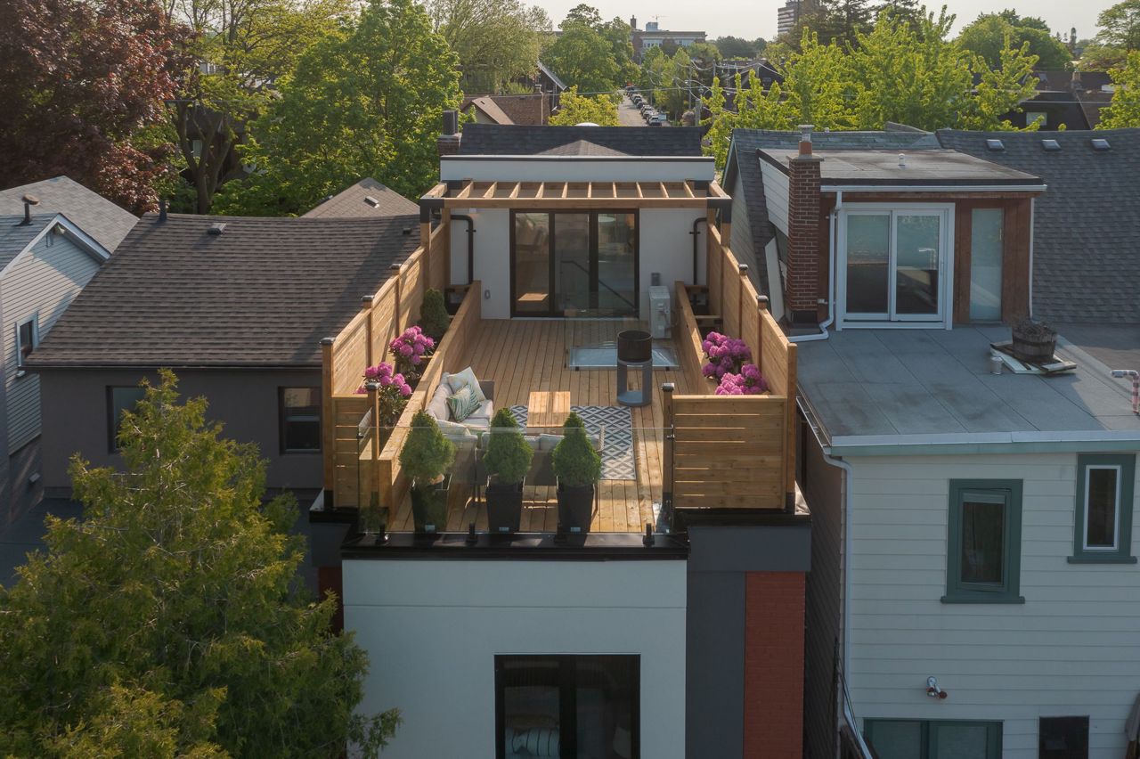 Impeccable Modern Design defines this 3-storey, 4-Bdrm 5-Bathroom detached home in a coveted East York community.perfect blend of functionality & Style creating an inviting comfortable family home. Main lvl features an elegant dining area & spacious living Room seamlessly flowing into an open-concept gourmet kitchen with stylish cabinetry. Ascending to 2nd lvl you will find 3 Generously sized bdrms and a cozy Den with built-in desk. On 3rd lvl, the opulent prime bdrm offering access to a private sunny rooftop patio w/ unobstructed views. Built-in his/her closets & custom shelving enhance comfort of this loft suite, while the 5-piece En-suite features a walk-in shower & freestanding tub w/ picture window and a clear view. The lower level with a heated floor, accessible through a separate entrance walk up to Langford Ave, features a wet bar and 3-piece bathroom, ideal as home office, guest suite or an extended family member.Access to 2 car Garage from back yard & lane.exterior design imbues this house with a unique character that stands out in neighborhood. Enjoy the tranquility of a quiet street, steps away from authentic shops & restaurants on Danforth Ave. Short Drive To Downtown Toronto,Beaches & DVP