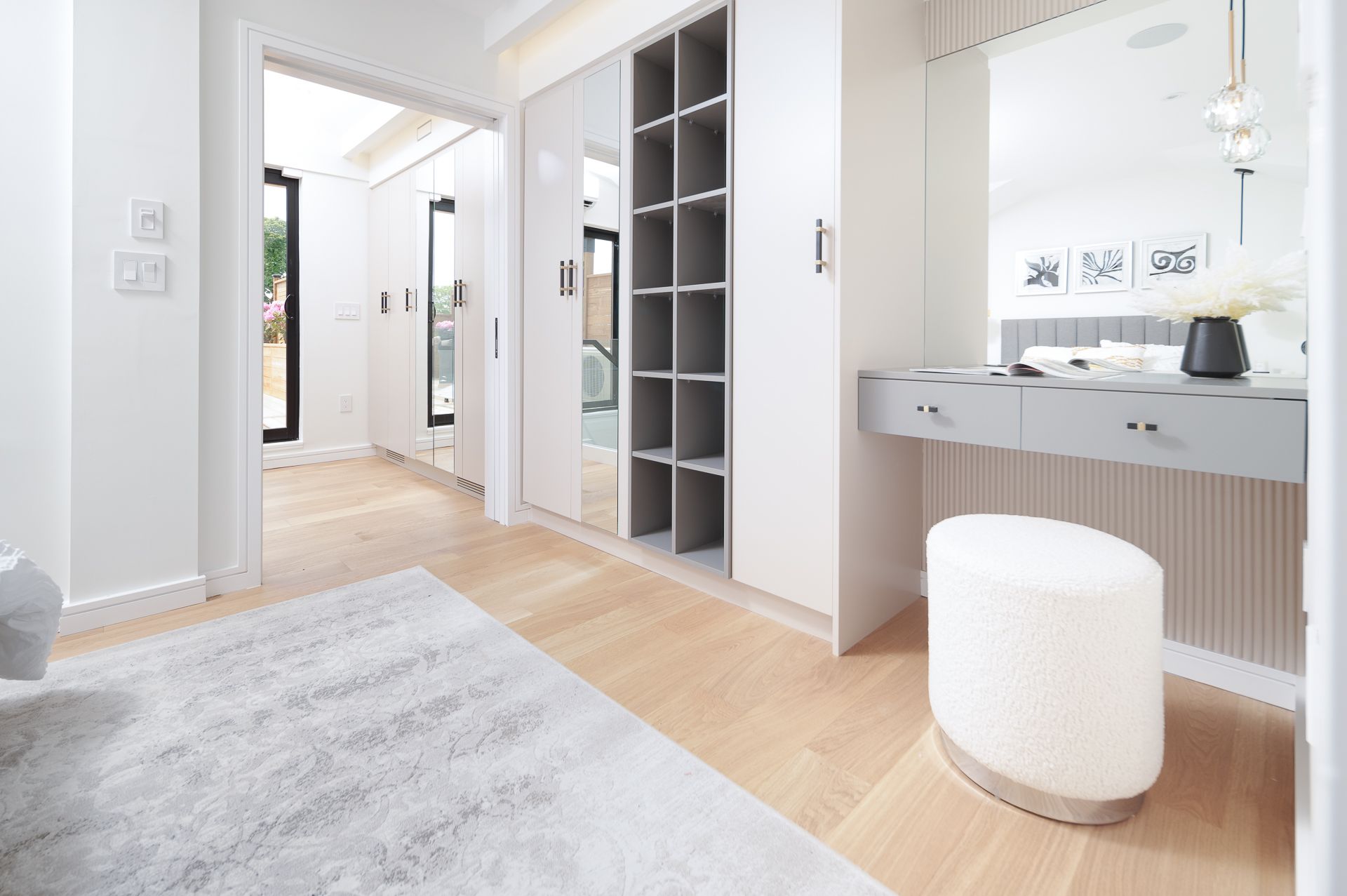 B/I Closet Mirrored Closet Hardwood Floor