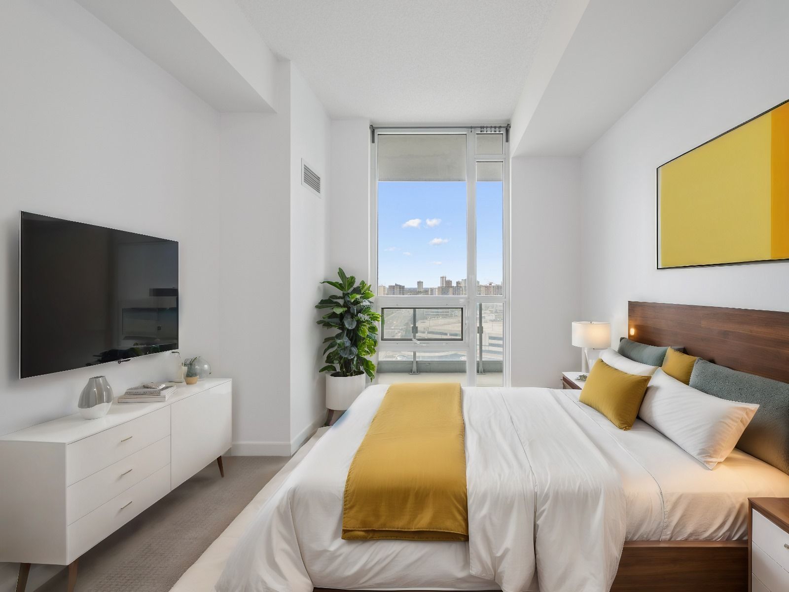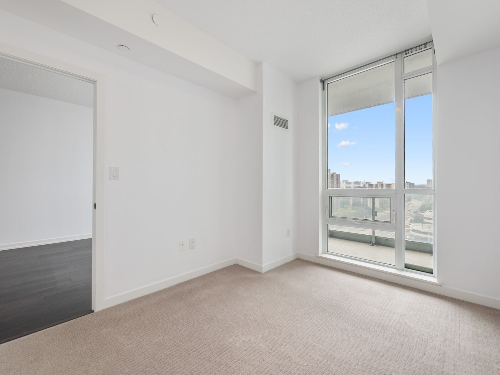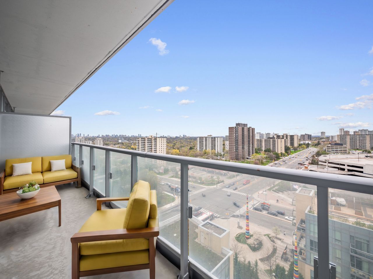 Prime Location! Step into the prestigious Emerald City 2 Condos and experience the allure of this stunning, spacious 1-bedroom suite. Floor-to-ceiling windows flood the space with natural light, accentuating the 9-foot-high ceilings and offering an unobstructed panoramic view. The living area boasts sleek laminated flooring, seamlessly flowing into the modern kitchen featuring upgraded backsplash and Caesar stone countertops with a breakfast area. Residents can enjoy an array of incredible amenities including an outdoor terrace, gym, guest suite, party room, 24H concierge and visitor parking. Conveniently situated with easy access to DVP, Hwy 404 & 401, Don Mills Subway Station, and Fairview Mall. Plus, enjoy close proximity to Fairview library and schools.