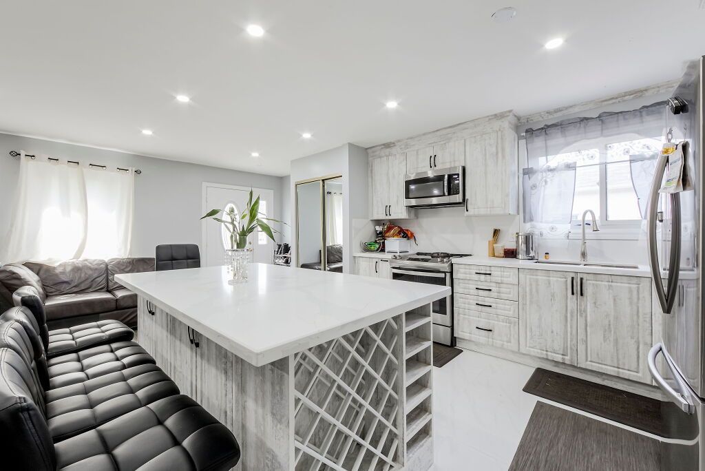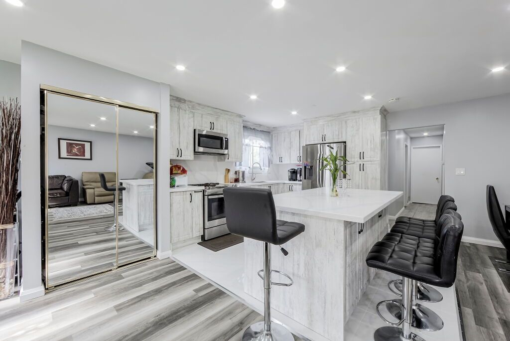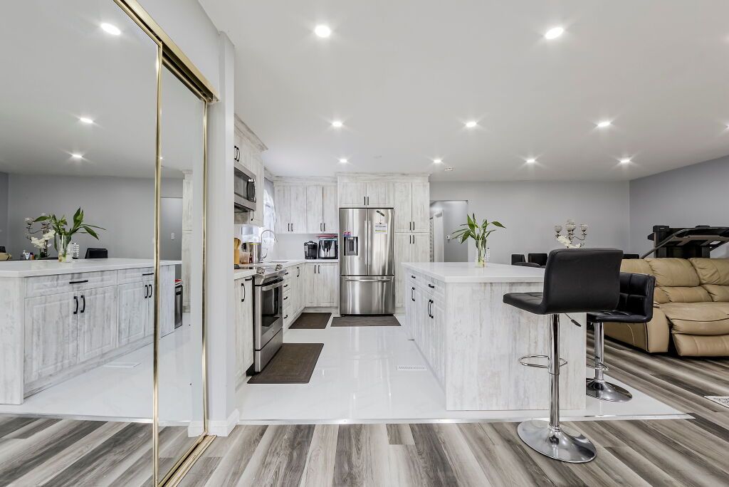 Beautifully Renovated 3 Bedroom Bungalow, with a Separate Entrance to 3 Bedroom newly Renovated Basement Apartment with a 4 Piece Bathroom Fridge and Stove, large above ground windows. Main Floor features Primary Bedroom with 4 piece ensuite with Jet Showers with Glass Sliding Doors and walk in closet , Renovated Kitchen all new cupboards with Quartz counter tops and Large Island with Stainless Steel Appliances Open concept Kitchen Living and Dining Rooms ,main 3 piece Bathroom Jet Showers with Glass Door ,Large Bay Window ,Close to major shopping ,Transit Route < Schools and Place of Worship2 Fridge 2 Stoves ...Furnace 4 years AC unit One Month