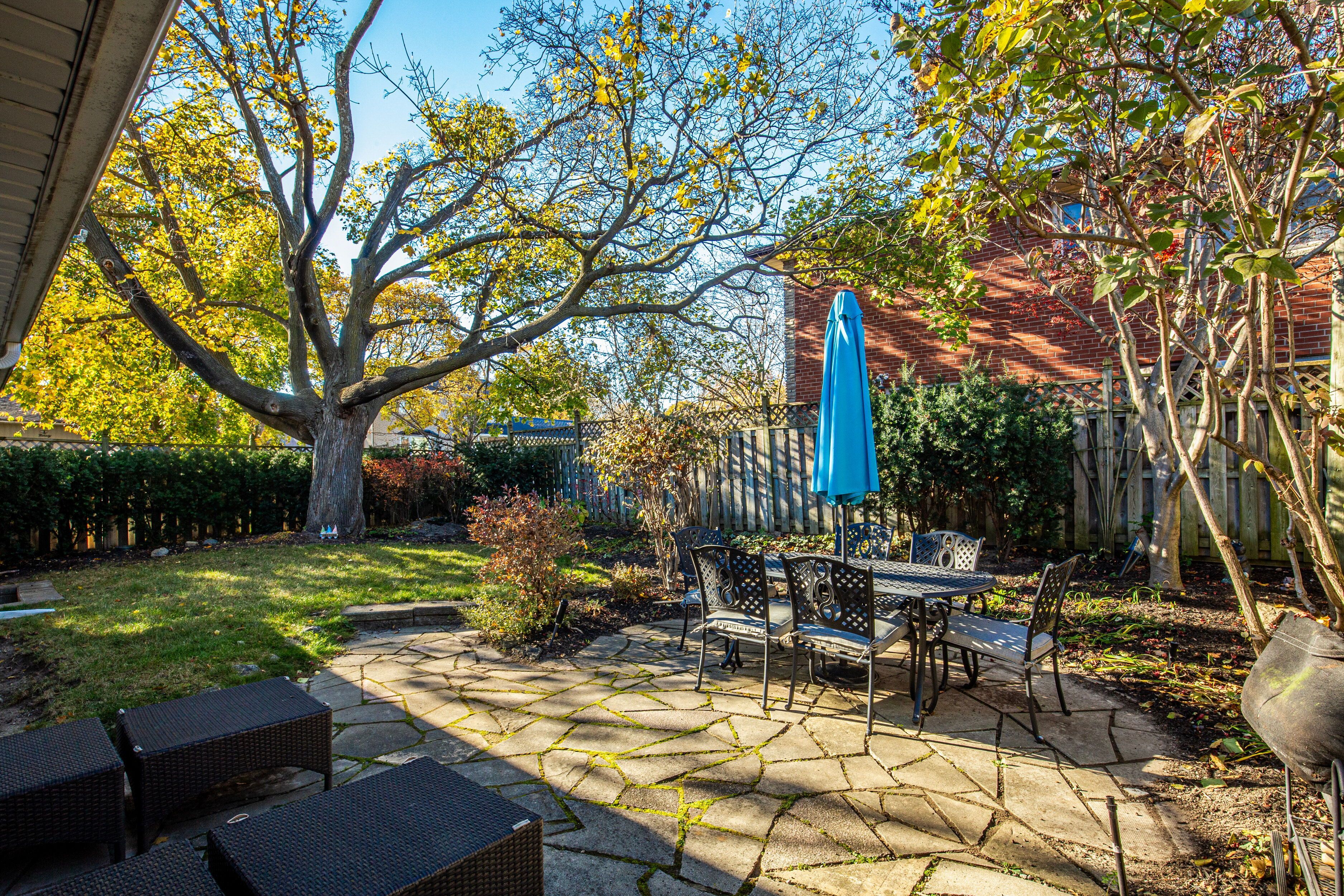 Enjoy a family friendly lifestyle in a highly sought after and well established neighbourhood in the heart of Richmond Gardens and excellent school district within the Father Serra and Richview Collegiate catchment areas. Live your best life in this spacious and spotless fully finished 4 level side split on a landscaped 50 x 114 foot corner lot with 4 bedrooms and 2.5 bathrooms. A functional eat in kitchen with gas burners steps into the open concept living room and formal dining room with an original wood burning fireplace perfect for entertaining. The dining room opens into a rare bonus sunroom with vaulted ceilings a cozy gas stove and access to the garden and yard plus direct access to the garage. Step down to the tastefully appointed and comfortable family room which features an electric fireplace and built-ins which steps further down to the finished recreation room. Easy access to local parks and nearby shopping. This beautiful home can be yours, just move right in. Shows very well, A+!Gas cooktop, wall oven, microwave, fridge, dishwasher. Full size front load washer and dryer. California shutters. Murphy bed in 4th bedroom