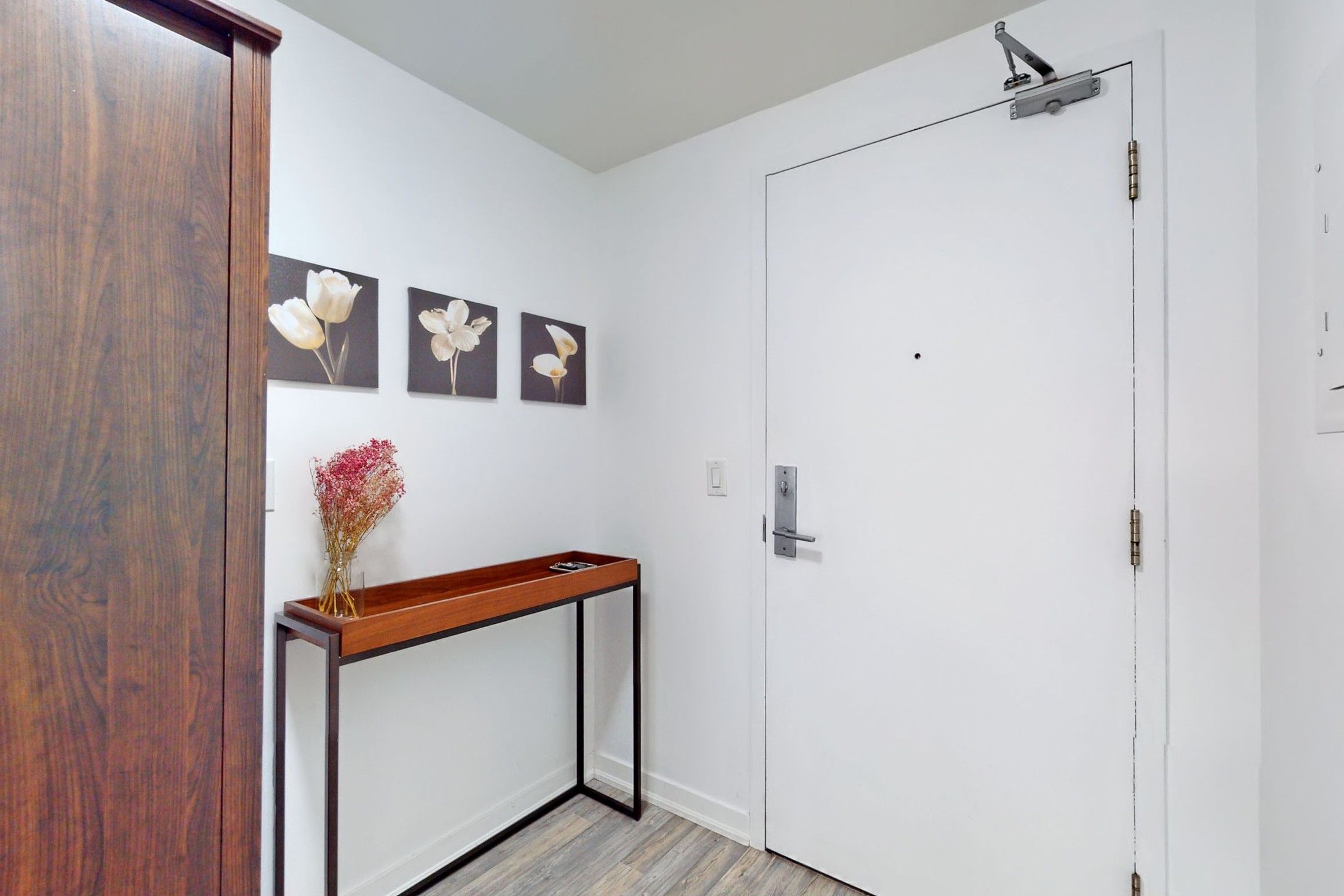 Over 900sqft gorgeous corner unit with wall to wall windows. Exceptionally bright and spacious with split layout and separation of space. Upgraded floors in bedrooms and high-end stainless steel appliances including Bosch dishwasher and french-door fridge. Oversized balcony.