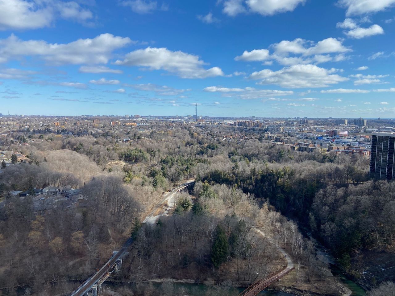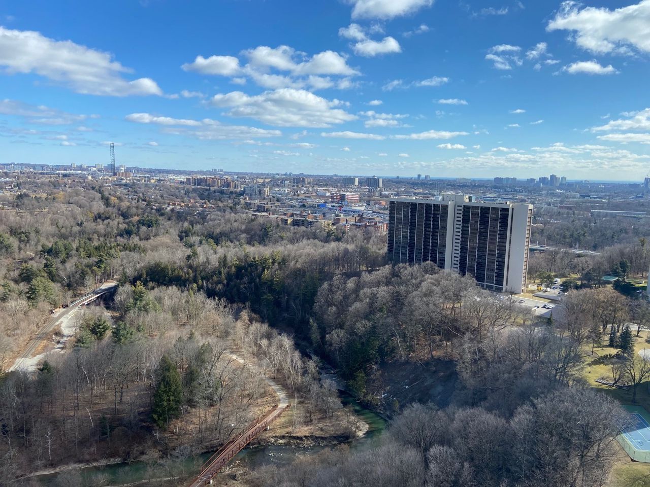 Beautifully renovated, modern, sun filled unit! It has 9 foot high ceiling rarely find in the building! breathtaking ravine, city & lake view. Floor to ceiling windows, Caesar stone counter tops, glass mosaic B/S, S/S appliances, top quality laminate floor, modern vanity w/ stone top, elongated toilet, 4 1/2" high baseboard, LED ceiling lights & pot lights, vertical blinds, 3 side by side lockers & more1 Great location & amenities, TTC at the door, express bus direct to downtown, steps to Shops at Don Mills, DVP. very well managed condo, 24 hrs security.S/S Appliances: Fridge, Stove, B/I Dishwasher, Kitchen Exhaust Fan; Washer & Dryer, vertical Blinds, Electric Light Fixtures, 1 parking & 3 side by side lockers.