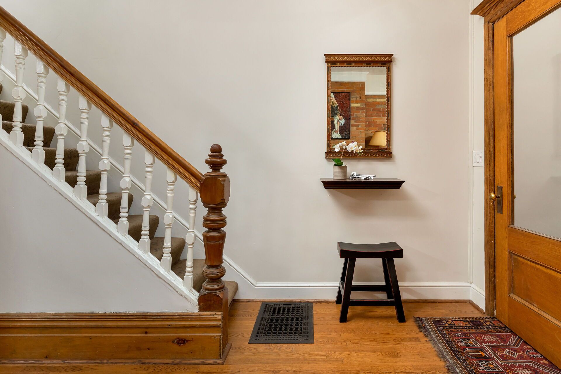 Hardwood Floor Stained Glass Double Closet