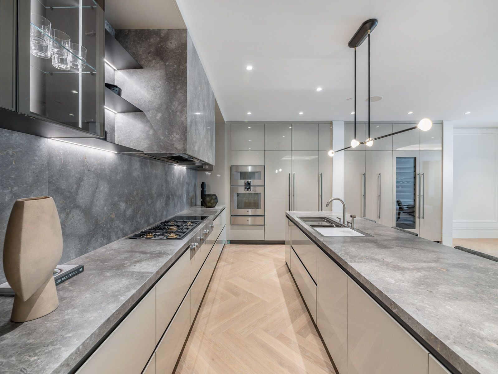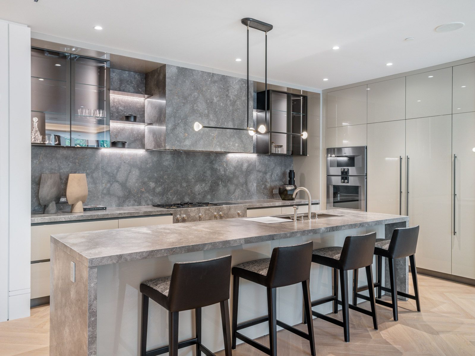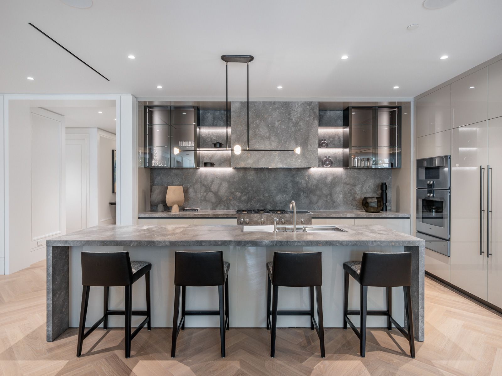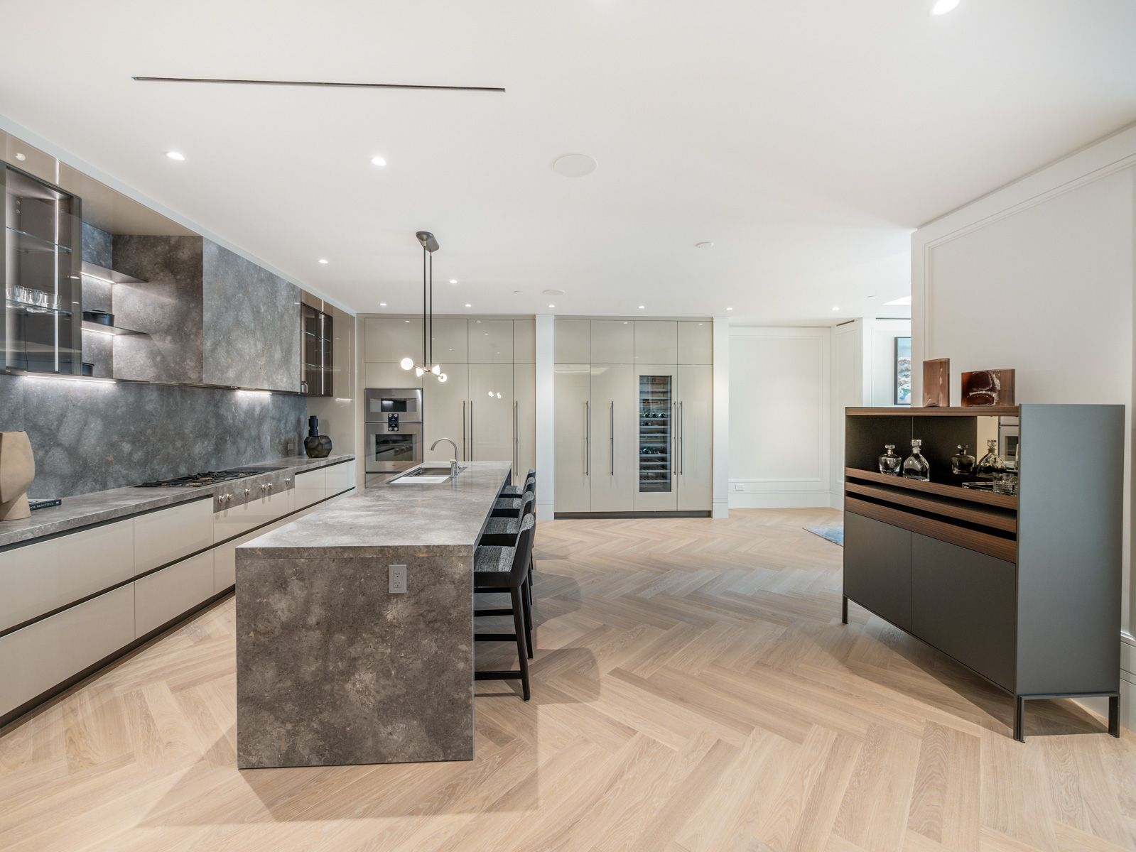 Hardwood Floor Centre Island Stone Counter