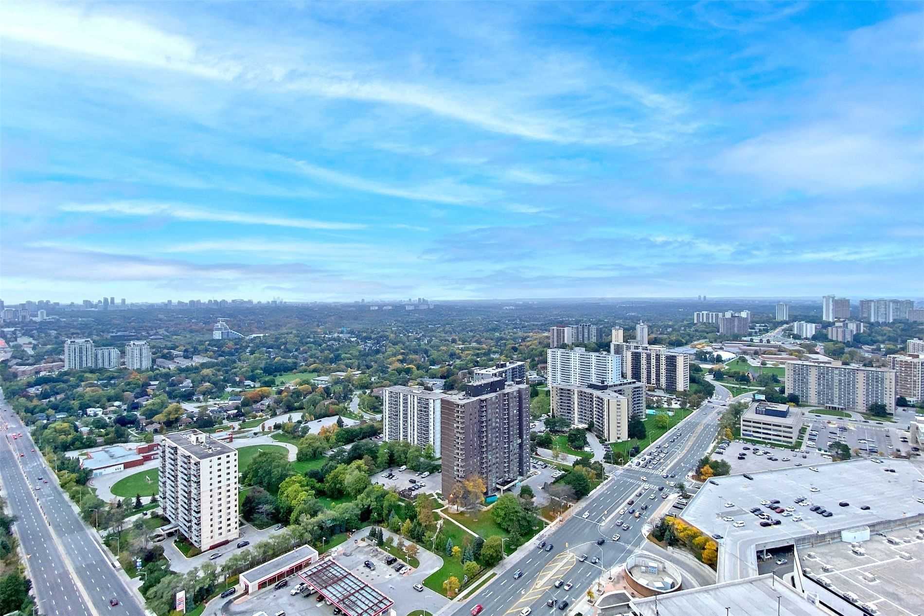 L-Penthouse Suite, High Ceilings, 34th Floor, North City Views, Huge Open Balcony. Modern Kitchen With Granite Countertops, Breakfast Bar. Amenities: Indoor Swimming Pool, Spa, Gym, Fairview Mall, Restaurants, Supermarkets, Schools, Parks. Direct Access To Subway Station. Stove, Fridge, Microwave, Dishwasher, Washer And Dryer, All Elf's. 1 Parking And 1 Locker.