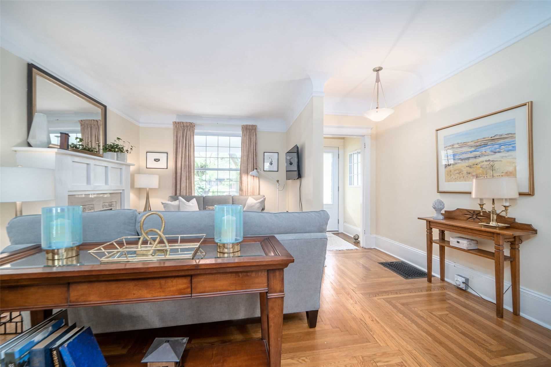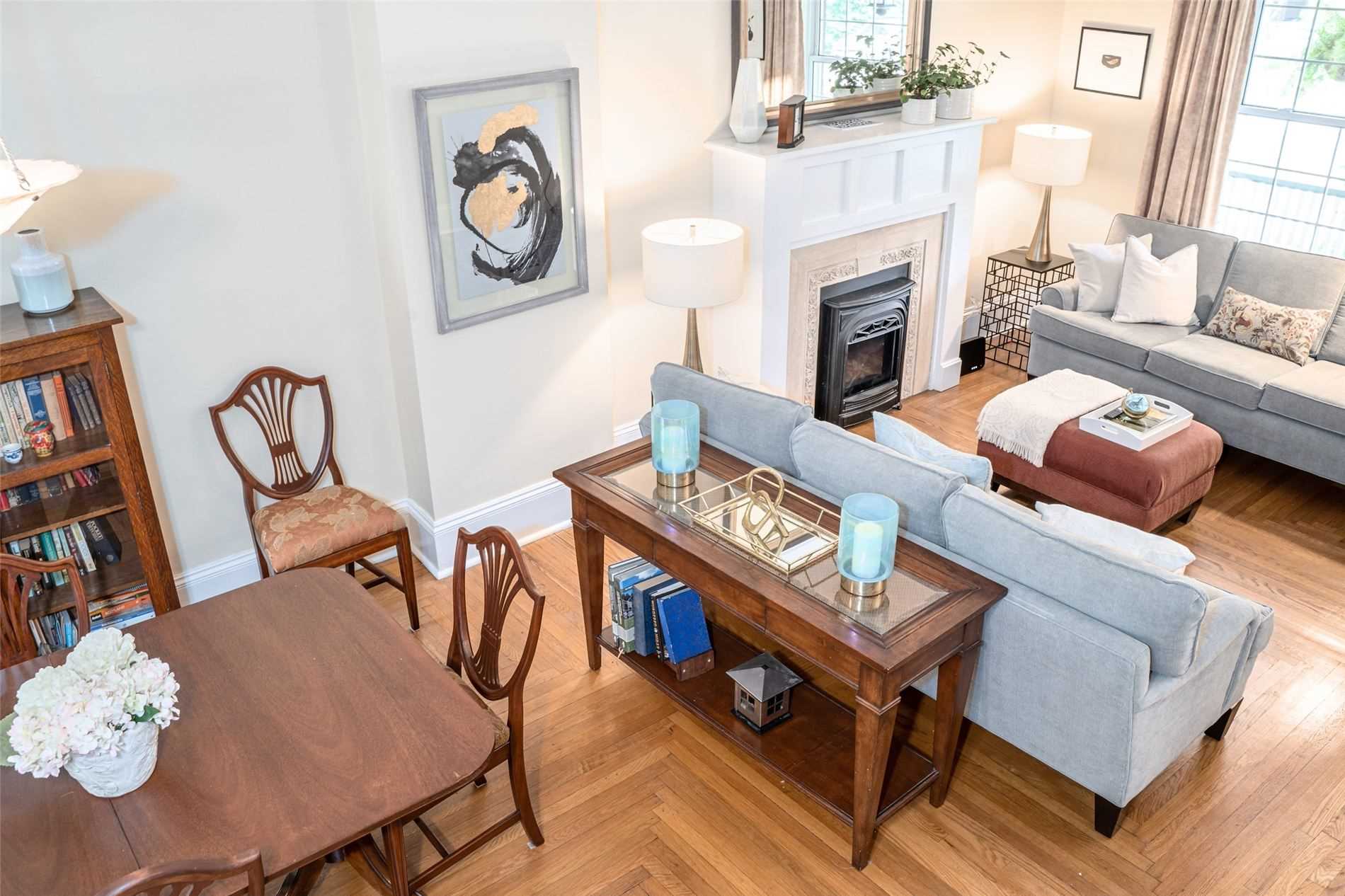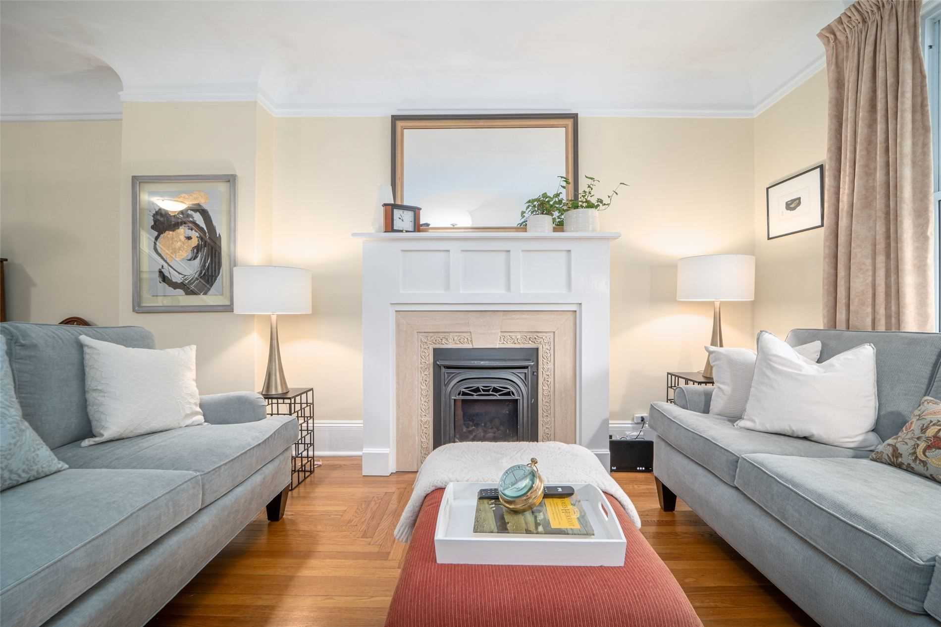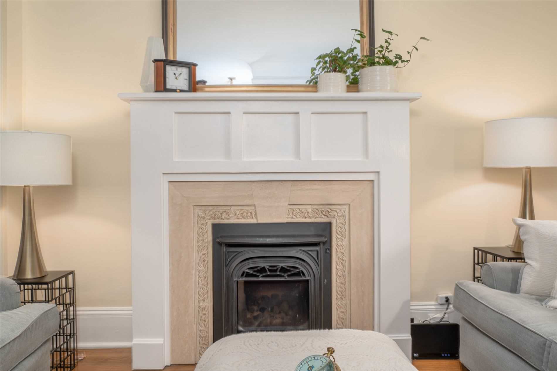 Hardwood Floor Moulded Ceiling Gas Fireplace