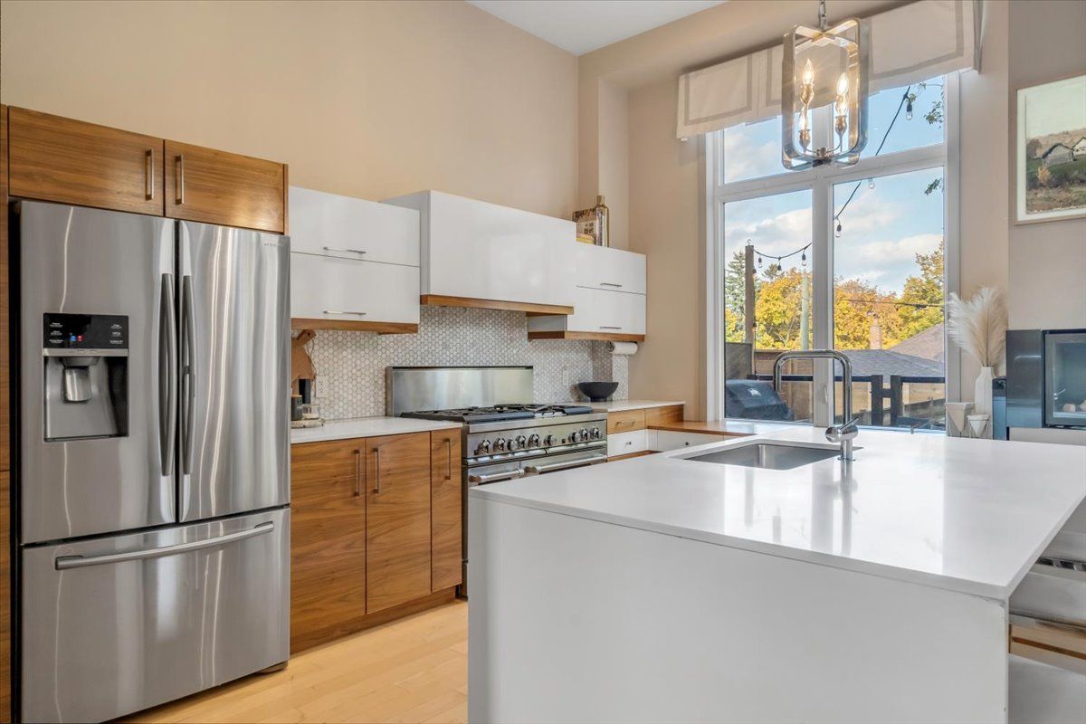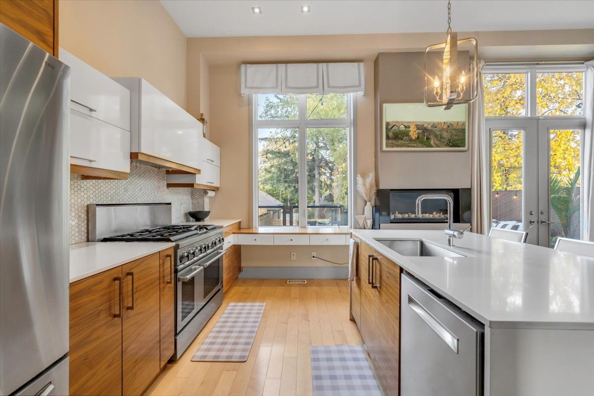 As you step through the entrance you'll be greeted by a spacious and bright open-concept living space. Aptly named "The SunHouse", the 12 ft ceilings and abundant natural light create an inviting atmosphere. The interior is meticulously designed with attention to detail and custom touches throughout. The heart of this home is the stunning gourmet kitchen with top-of-the line stainless steel appliances, a center island made of Ceaserstone, and ample counter space for culinary enthusiasts. Opens to outdoor oasis with a spacious patio for outdoor dining and a beautifully landscaped yard, perfect for kids and entertaining.Nanny Suite: Basement boasts an incredible nanny suite, complete with separate entrance, kitchen, murphy bed, 3 PC bath separate washer & dryer, W/O to Patio and a double garage.