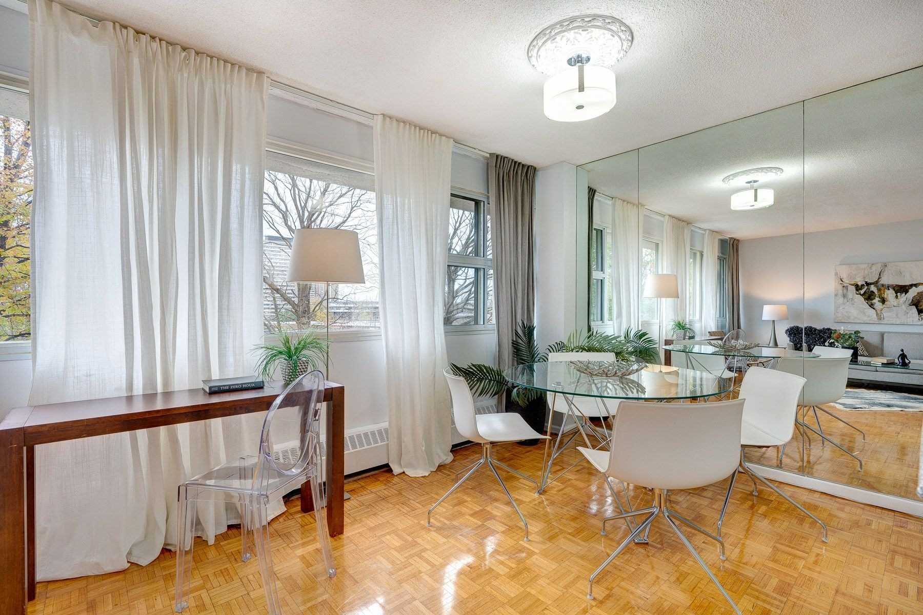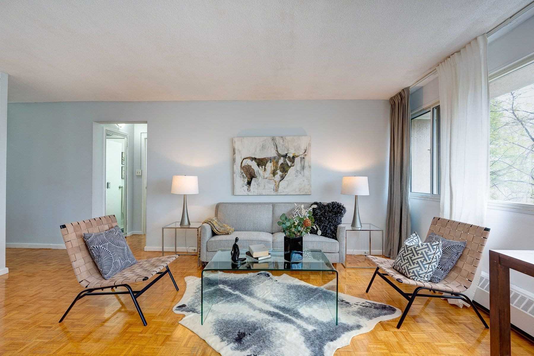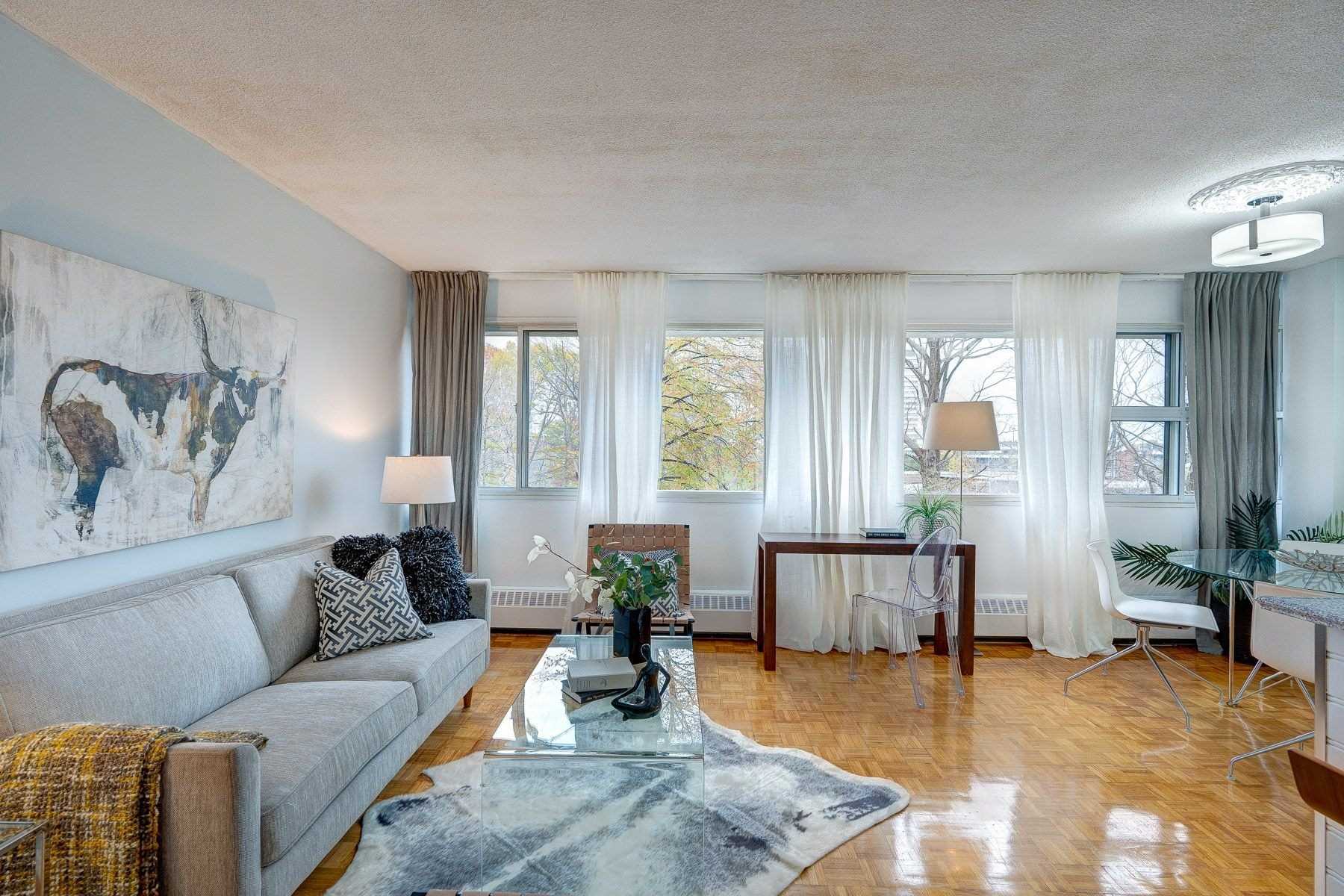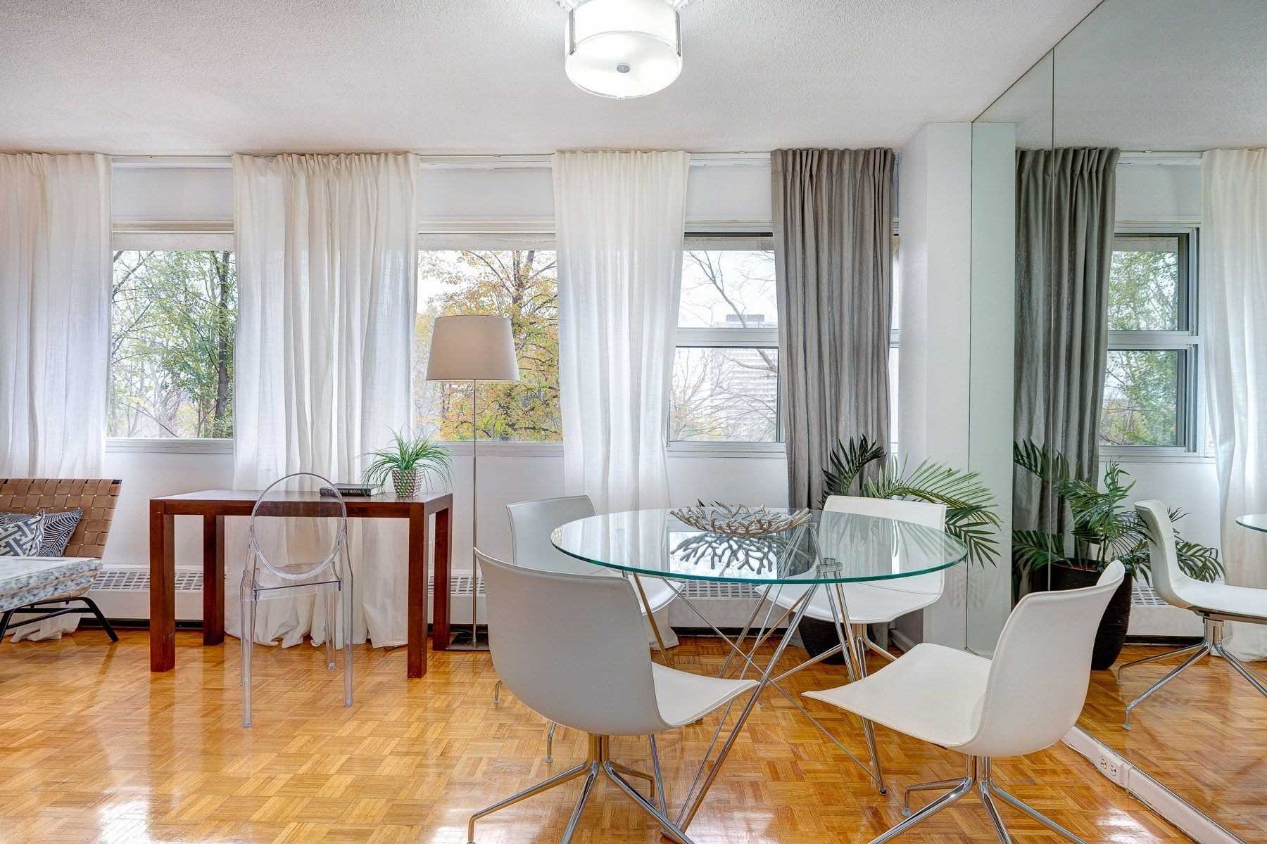Spacious And Bright, Open Concept 1 Bedroom, 1 Bath Unit With Beautiful Parquet Hardwood Floors Throughout. Large Wall-To-Wall Windows That Let In Tons Of Light, With Gorgeous Treetop Views. Maintenance Fees Include All Utilities. Parking And Locker Included. Very Well Run Building With Manicured Grounds And Great Amenities. Close To Dvp, Eglinton Lrt, Shops, Museums, Science Centre, Schools. Fridge, Stove, All Light Fixtures. Maintenance Fees Include All Utilities