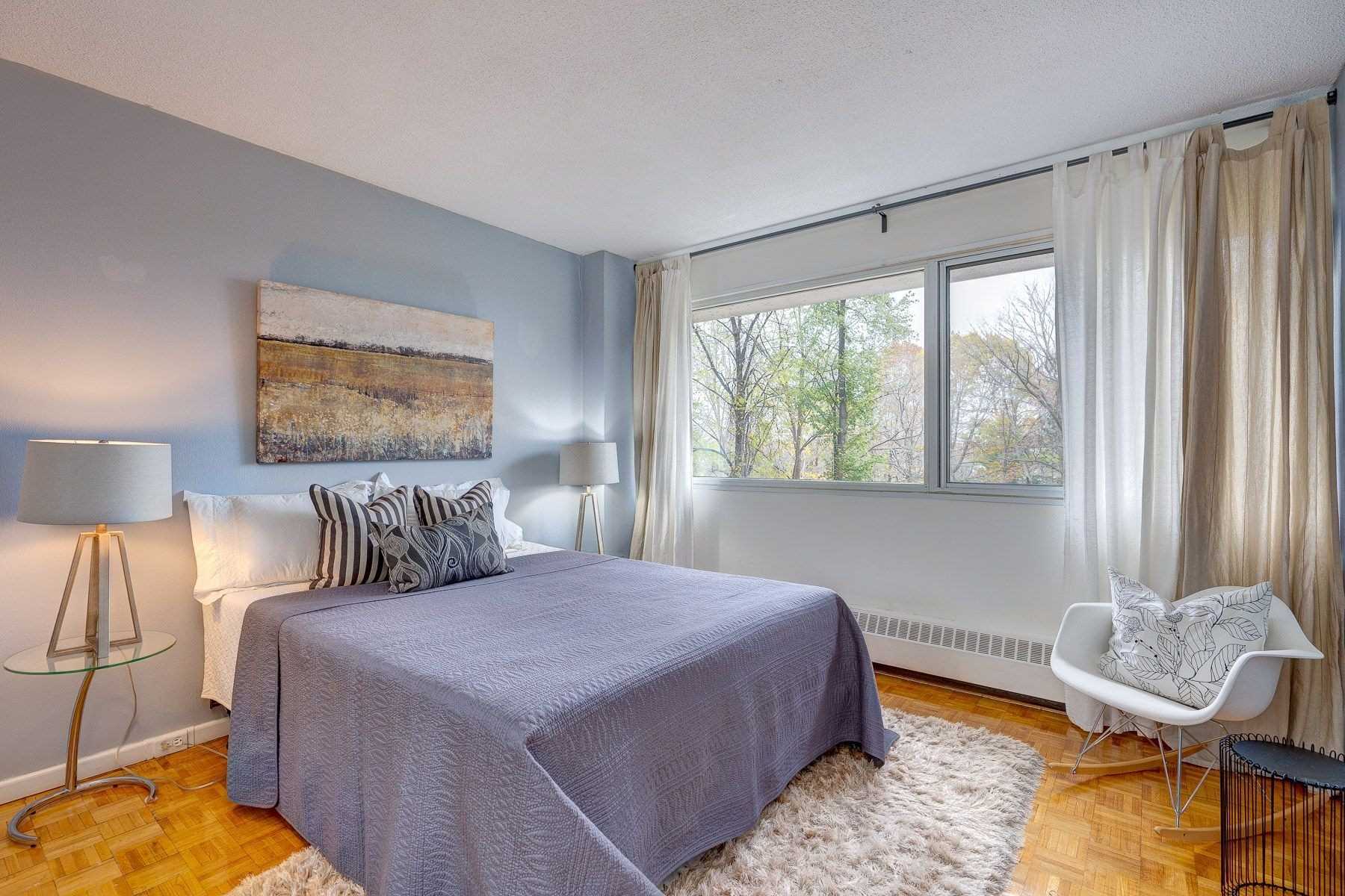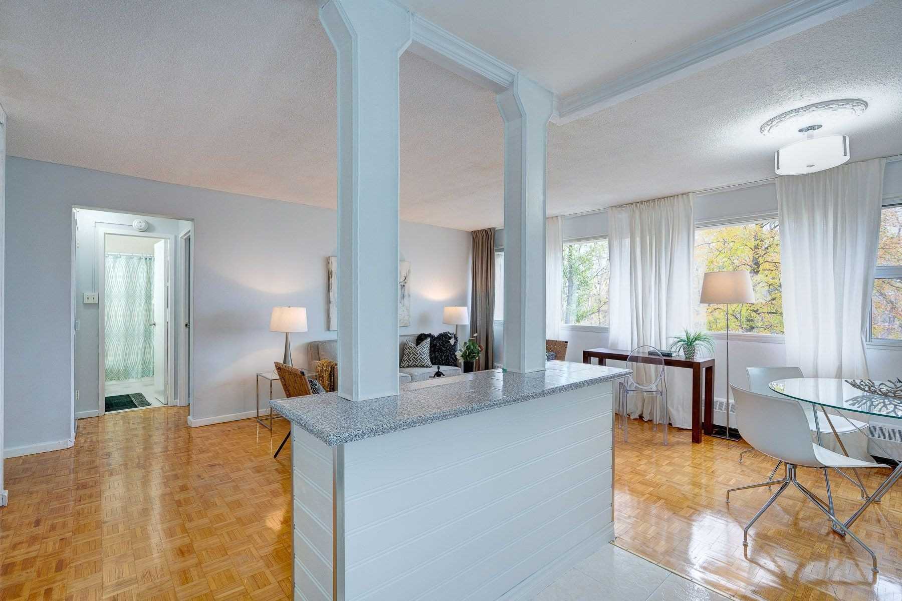 宽敞明亮的开放式概念1卧室,1浴室,美丽的镶木地板,整个地板。 宽大的落地窗让大量的树梢美景尽收眼底。 维护费包括所有公用事业。 包括停车和储物柜。 运行良好的建筑,修剪整齐的地面和便利设施。 靠近Dvp,Eglinton Lrt,商店,博物馆,科学中心,学校。 冰箱,炉子,所有窗帘,所有灯具。 维修费包括所有公用事业