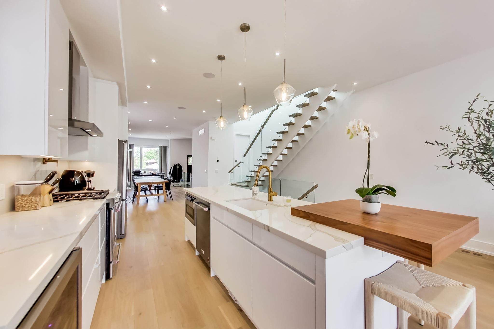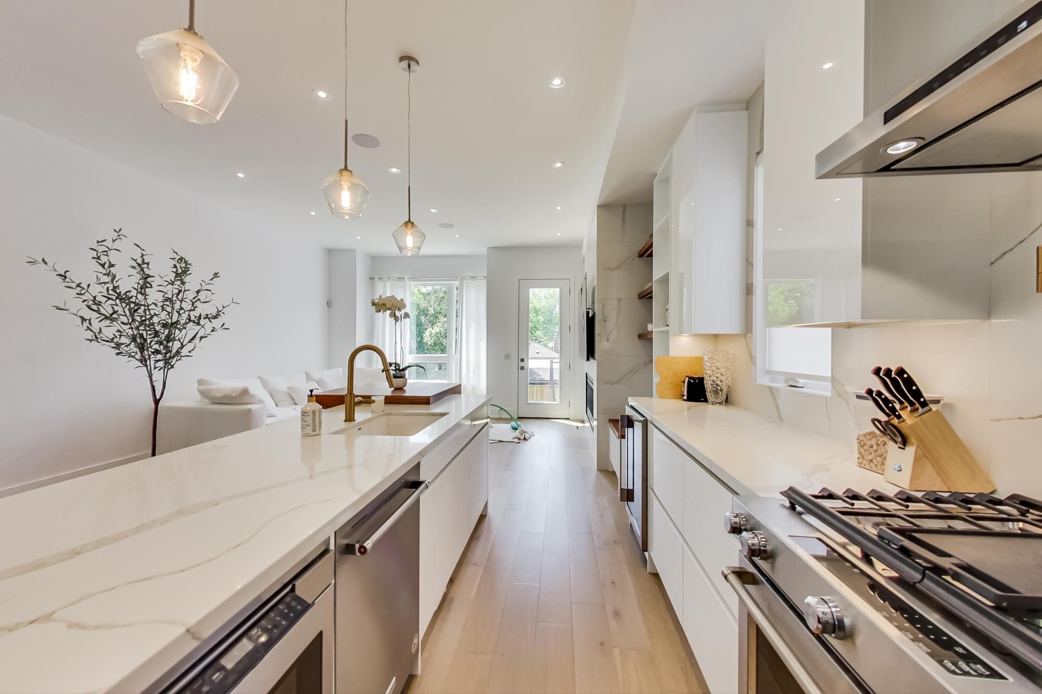 Custom Built Gorgeous Home, over 3100 sq. ft of custom luxury living space! Open concept main level with 10ft high ceilings, large windows and custom cabinetry! Kitchen displays warm tones with lots of light quartz counter & backsplash, custom millwork, 55 inch linear gas fireplace and it does not end there! All appliances in the exquisite chef's kitchen are top of the line, oversized calcutta quartz with a raised walnut breakfast bar. This kitchen also features a beautiful b/i Avanti dual zone wine fridge. Family room large for entertainment walking out to large deck. Lots of natural light protrude through the skylight and large windows! The prim bedroom is beyond stunning with it's 5pce ensuite, heated floors and custom lighting. Corners were not cut as the upper level also features 2 other large bedrooms with built in closet organizers and a jack&jill 4pce ensuite - designed with a luxury wall to wall vanity and European tile! Basement boasts 11 ft ceilings, wet bar AND MORE!!!Avanti Fridges, Smart Home Automation, S/S Kitchenaid appliances, kitchen/living/family in-ceiling b/i speakers, in-floor heating in prim ensuite and basement, central vac, irrigation system, smart samsung wash/dry, owned Furn/AC/Hot Water