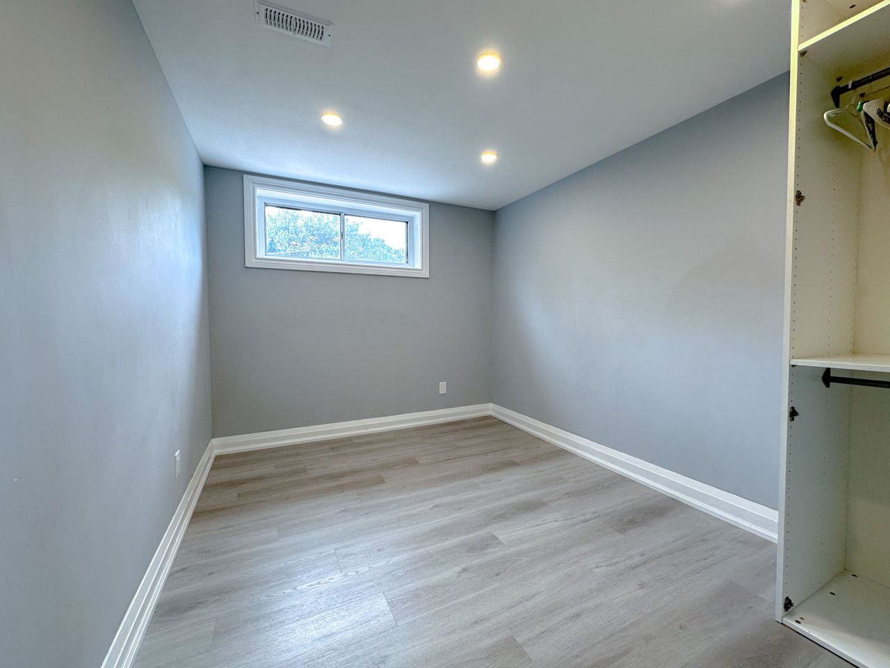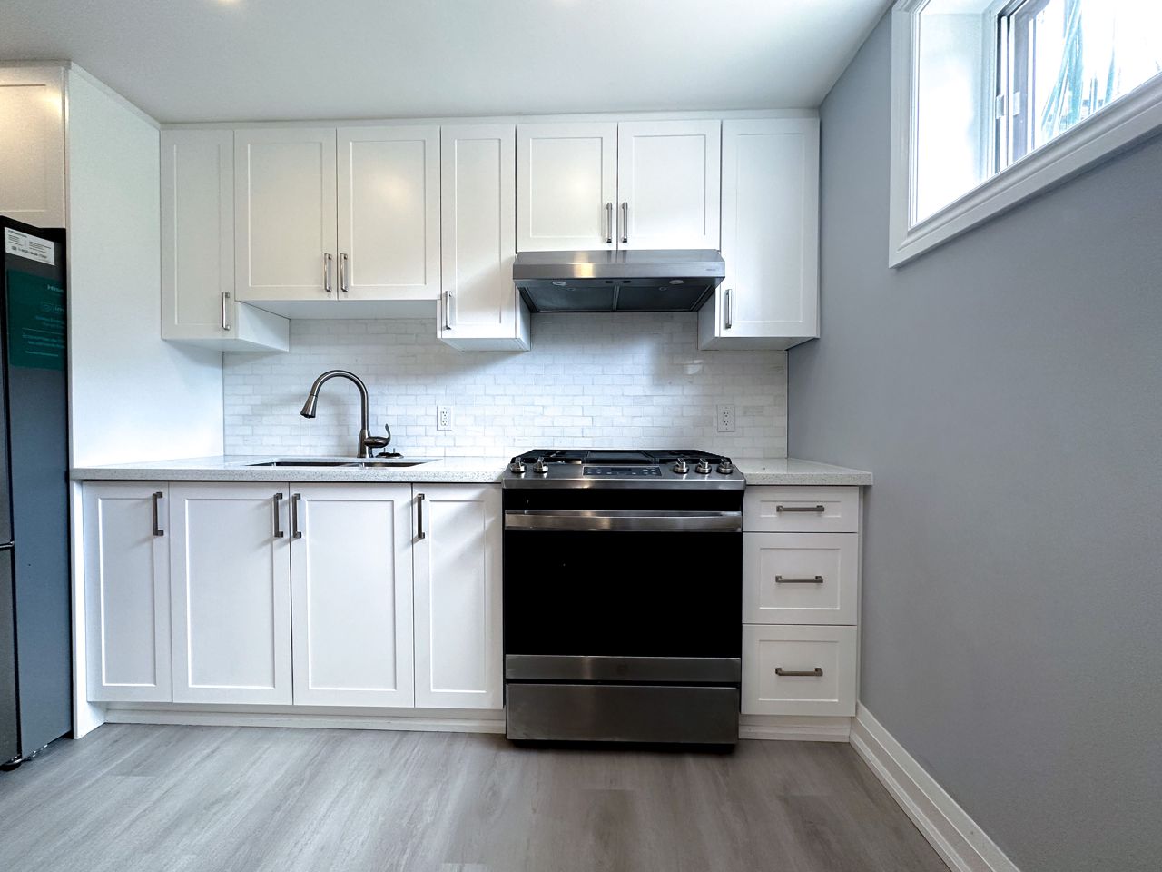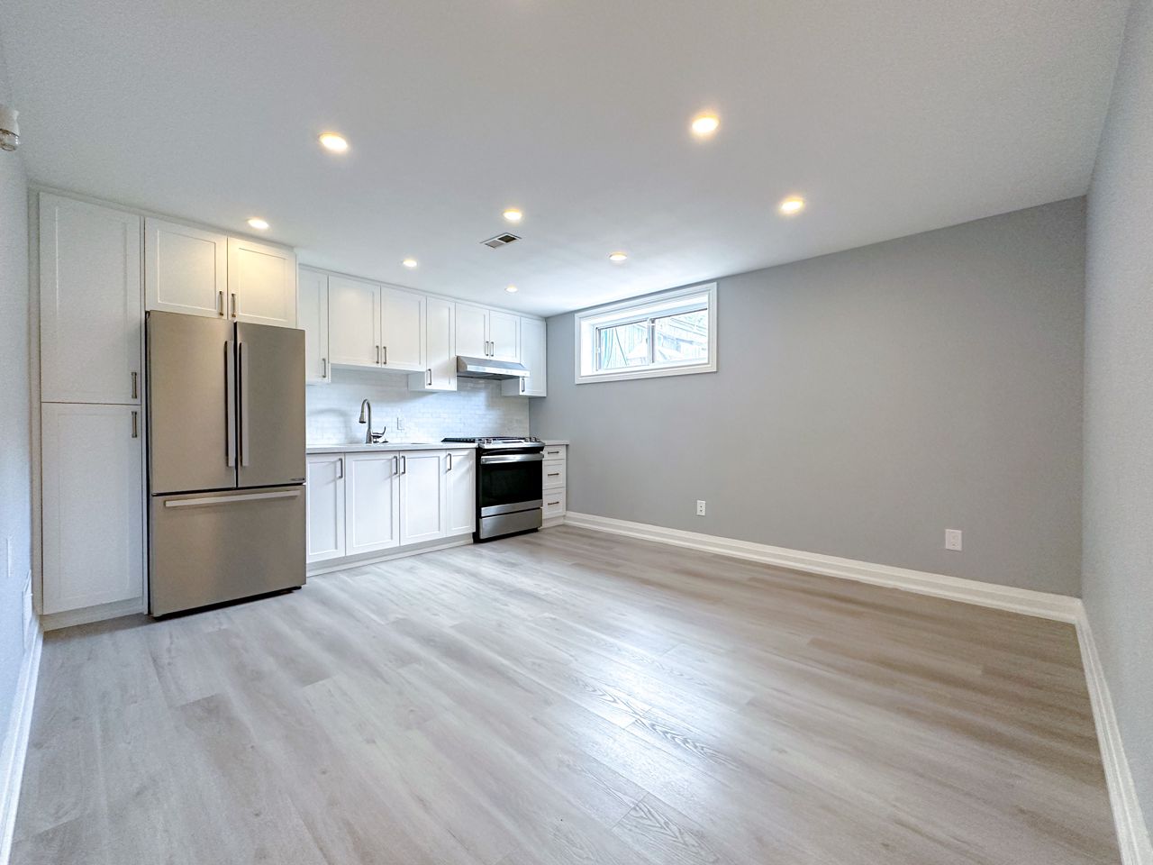 Bright & newly renovated basement apartment with 1 parking spot on private driveway! Located in family friendly neighborhood! Separate entrance, 1 spacious bedroom, 1 Bath & Utilities included! Open floor plan with updated laminate floors throughout. Updated kitchen with stainless steel appliances, gas stove & quartz counters. Den can be converted into office space or extra storage. Laundry room is conveniently on the same level making laundry day very easy. Great amenities include: Maple leaf park & tennis courts just up the street, Easy access to Highway 401 & 400, Close to Weston Go station, Downsview Park, Humber River Hospital, Yorkdale Shopping Centre, schools, stores & more!