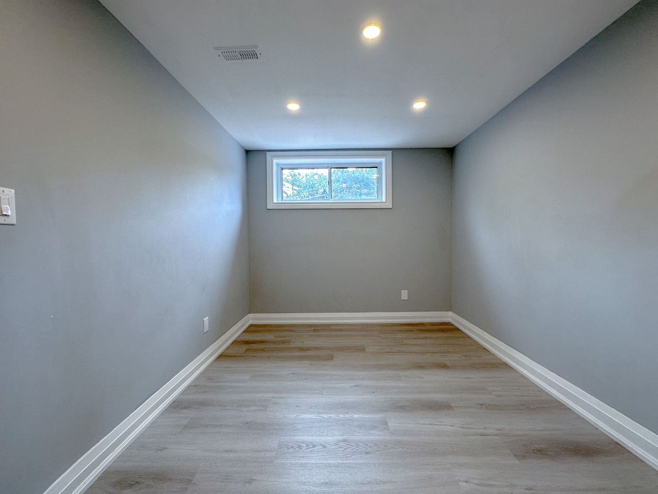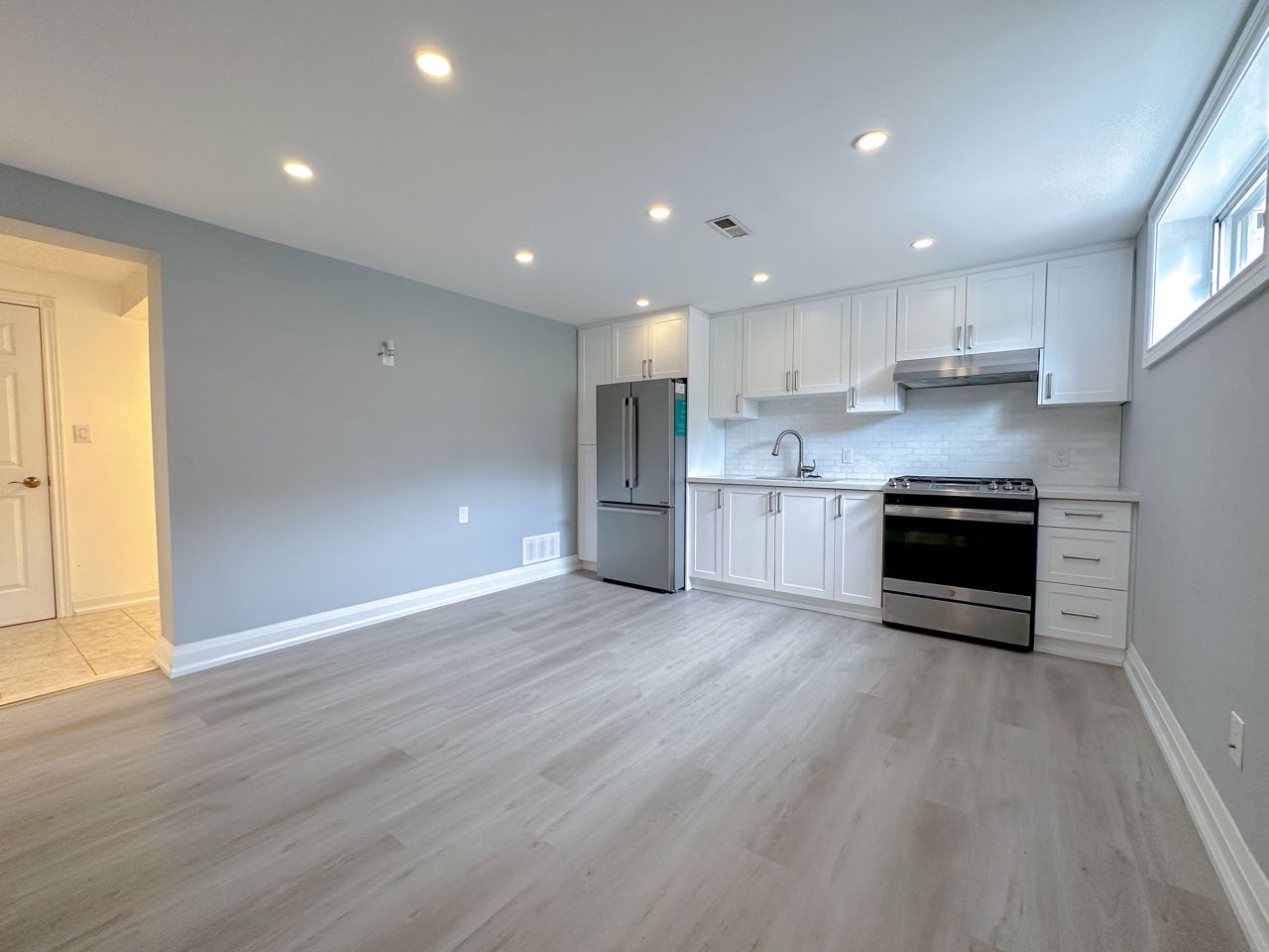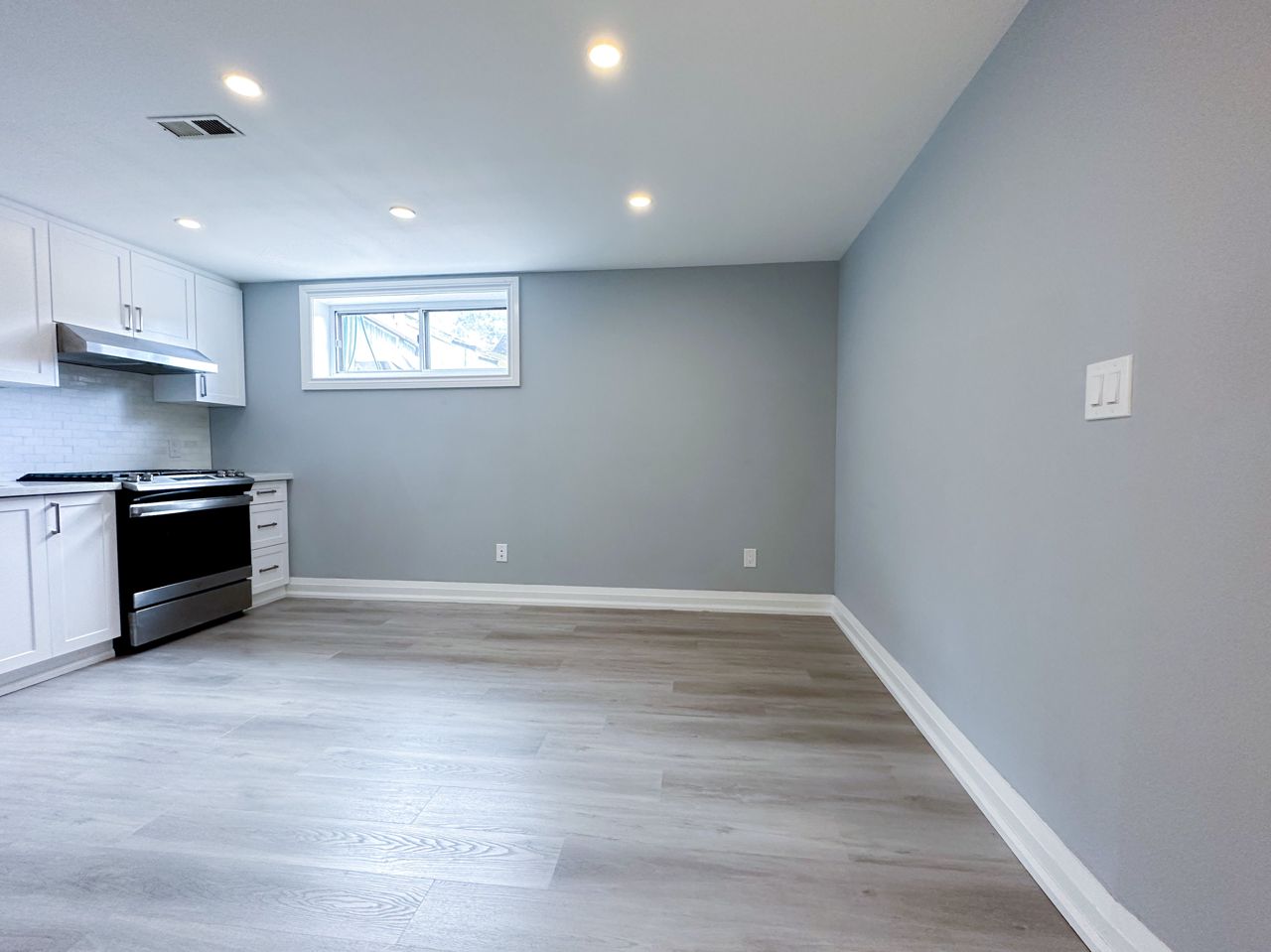 Bright & newly renovated basement apartment with 1 parking spot on private driveway! Located in family friendly neighborhood! Separate entrance, 1 spacious bedroom, 1 Bath & Utilities included! Open floor plan with updated laminate floors throughout. Updated kitchen with stainless steel appliances, gas stove & quartz counters. Den can be converted into office space or extra storage. Laundry room is conveniently on the same level making laundry day very easy. Great amenities include: Maple leaf park & tennis courts just up the street, Easy access to Highway 401 & 400, Close to Weston Go station, Downsview Park, Humber River Hospital, Yorkdale Shopping Centre, schools, stores & more!