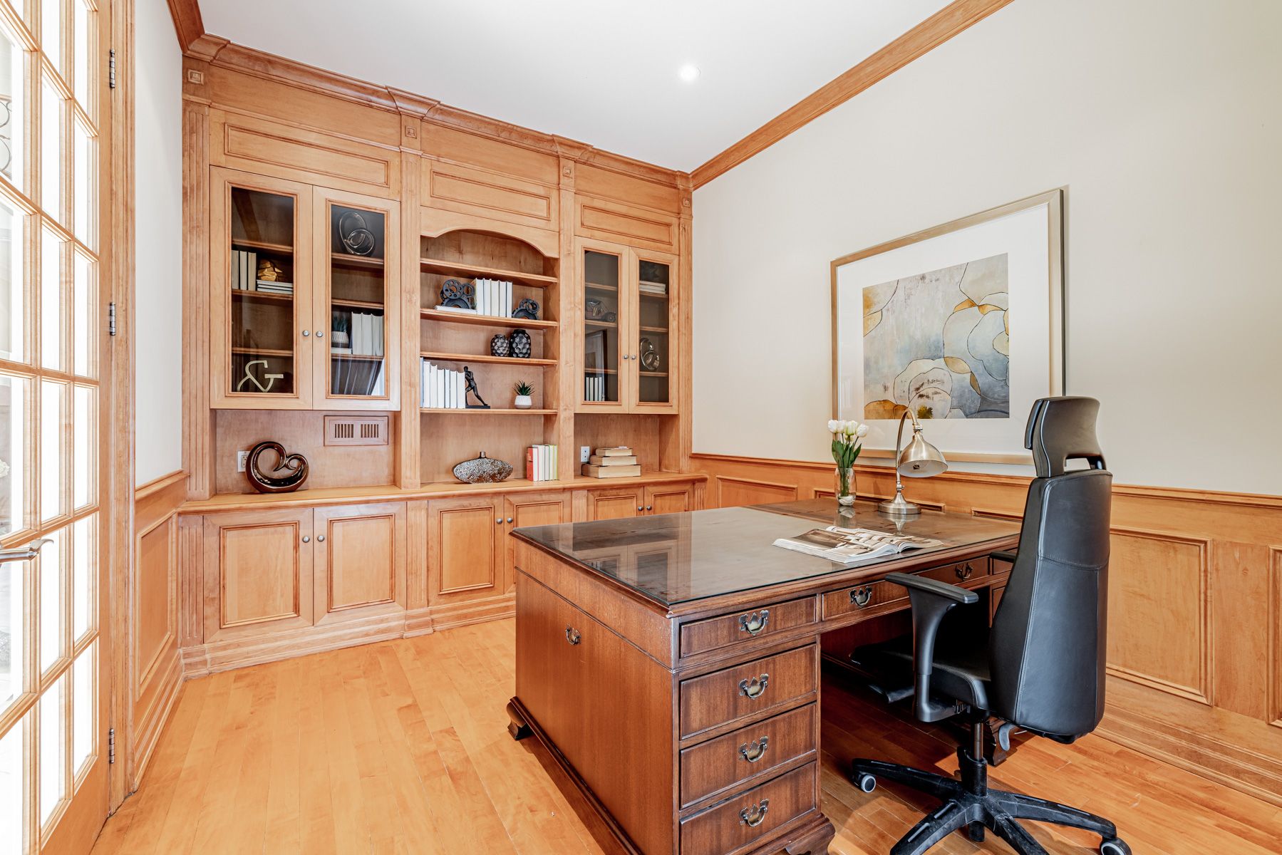 B/I Bookcase Hardwood Floor Moulded Ceiling