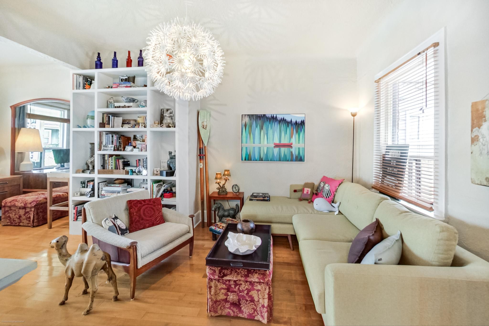 Hardwood Floor B/I Bookcase Combined W/Family