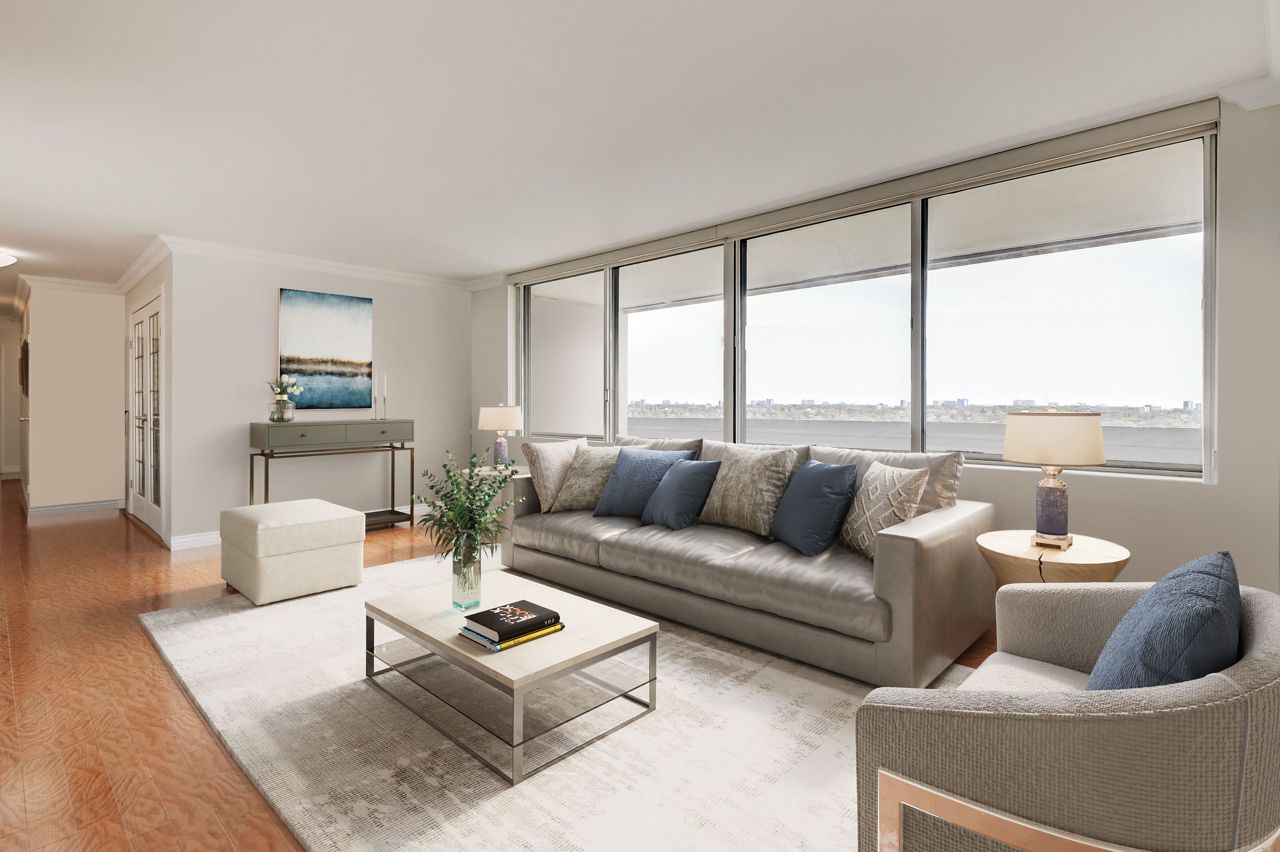 Situated in a beautiful 4.5 acres setting of manicured gardens, 2103 is a meticulously maintained and updated suite offering over 1,700sf of comfortable living. This 3 bed, 2 bath unit boasts unobstructed views of the Charles Sourial conservation area from almost every room. Completing this beautiful space is a formal dining room, high quality eat-in kitchen overlooking the living room, laundry room, storage room/pantry, and a well-lit den. 2103 comes with 2 side by side parking spots on the first level as well as a storage locker. The monthly fees include all utilities, including Fibe high-speed Internet and 24 hour concierge. Enjoy Wynford Place’s incredible array of amenities including an indoor pool, gym, golf driving range, tennis and pickle ball court, squash/basketball court, billiards room, sauna, fully equipped workshop, library and fully upgraded party room with separate entrance. Walk to the future LRT/TTC or hop on the DVP you’re well positioned to get anywhere easily!Please note that all windows are being replaced in the suite of which the full cost is being borne by the seller.