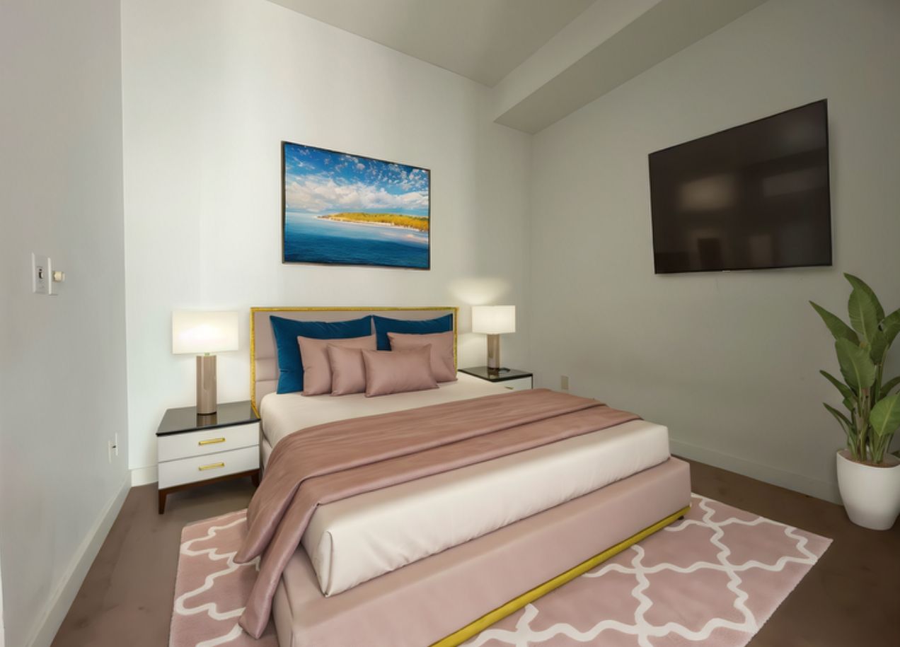 Discover urban living at its finest with this charming one-bedroom condo located in the heart of downtown. This stylish unit features an open-concept layout, modern finishes. Enjoy breathtaking city views from your private Balcony. This Beautiful unit is freshly painted! ensuring everything is bright and welcoming.Additional highlights include in-suite laundry, access to top-notch building amenities such as Indoor Pool, Gym, Party Room, Billiards Room, Theatre Room, 24 Hr Concierge service. Conveniently located within walking distance to popular restaurants, shopping, public transit. Don't miss the opportunity to make this downtown gem your new home! **Virtually staged**Built-In Fridge, Stove, Dishwasher, Washer + Dryer