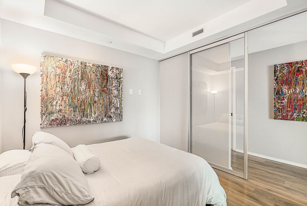 Great 1 Bedroom Condo located at Bloor and Bathurst Streets - 97% Walk Score - steps to Bathurst Subway Station. In the Annex neighbourhood - steps to schools, museums, transit, shopping and much more! Approximately 636 sq ft with an Amazing view! End unit on the south/east corner - unobstructed with City views including CN Tower - a Must See!Blomberg integrated fridge and dishwasher. EG cooktop, built-in stove, microwave, stacked washer and dryer. Good closet space, deep soaker tub with large rain shower showerhead. Laminate throughout in living areas.