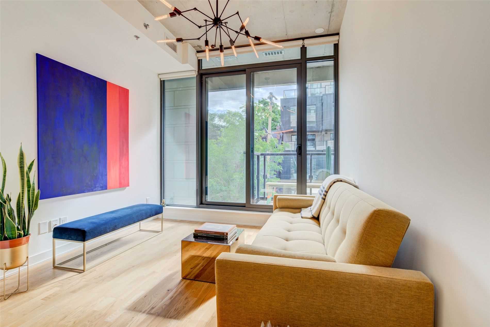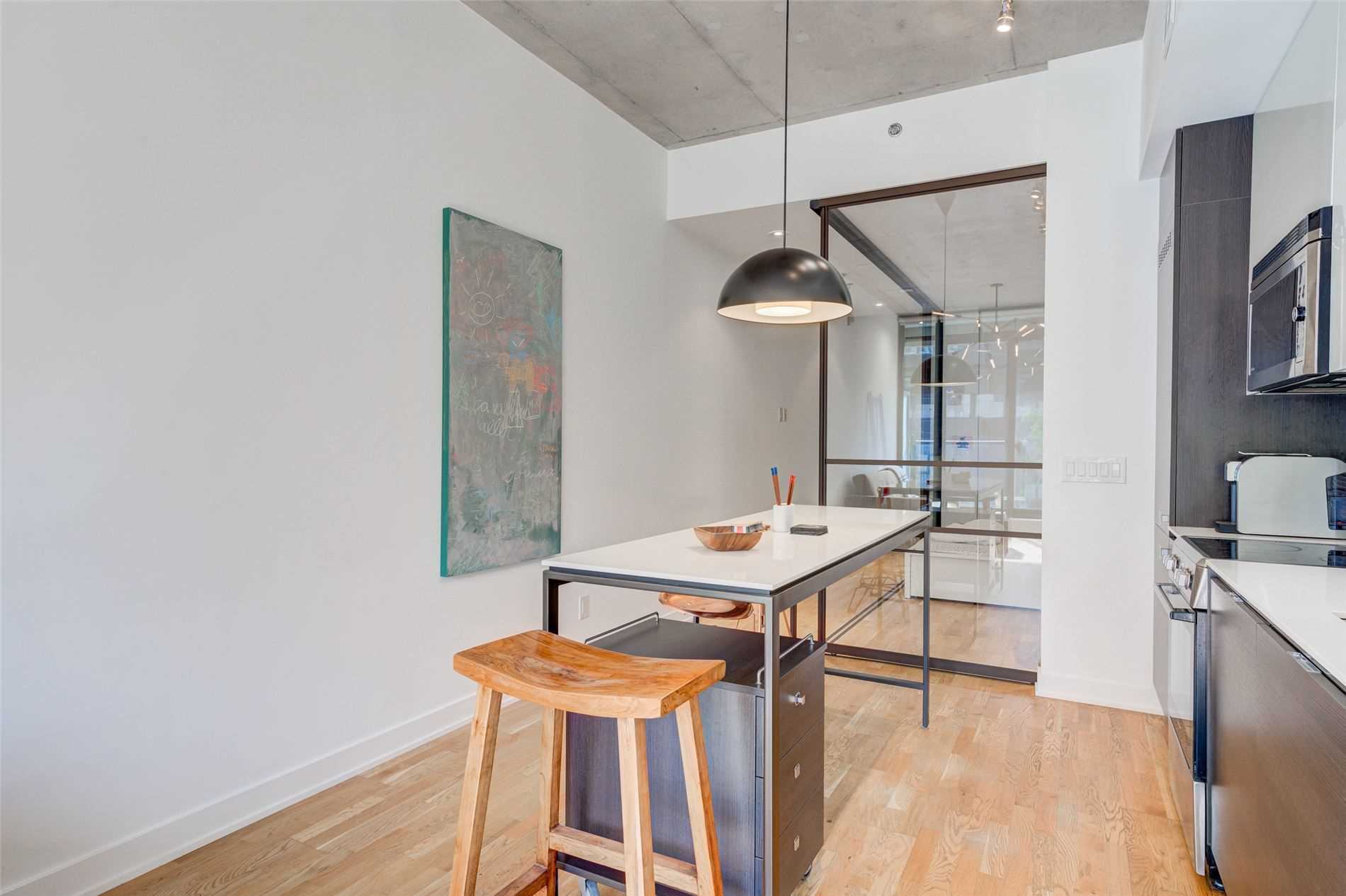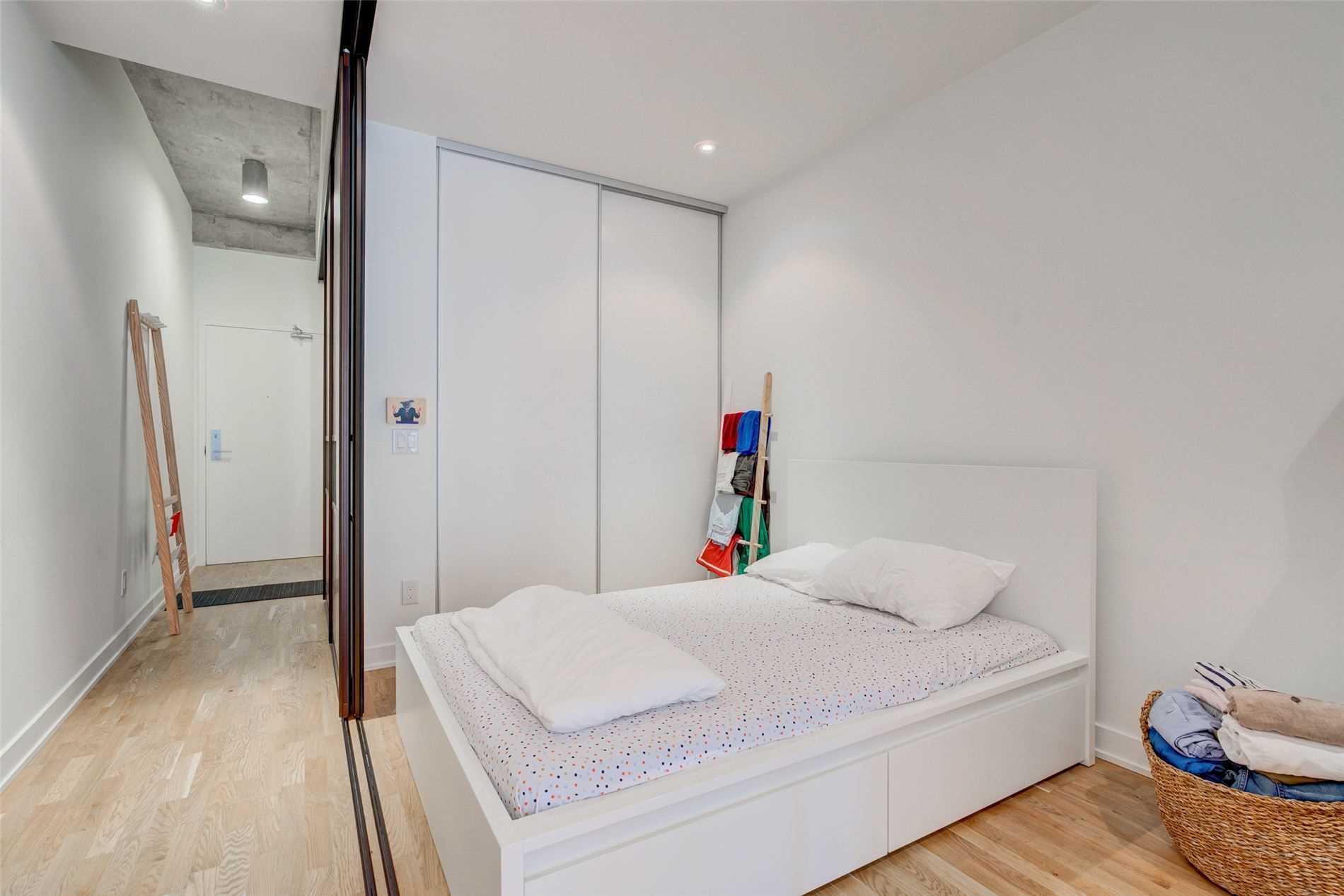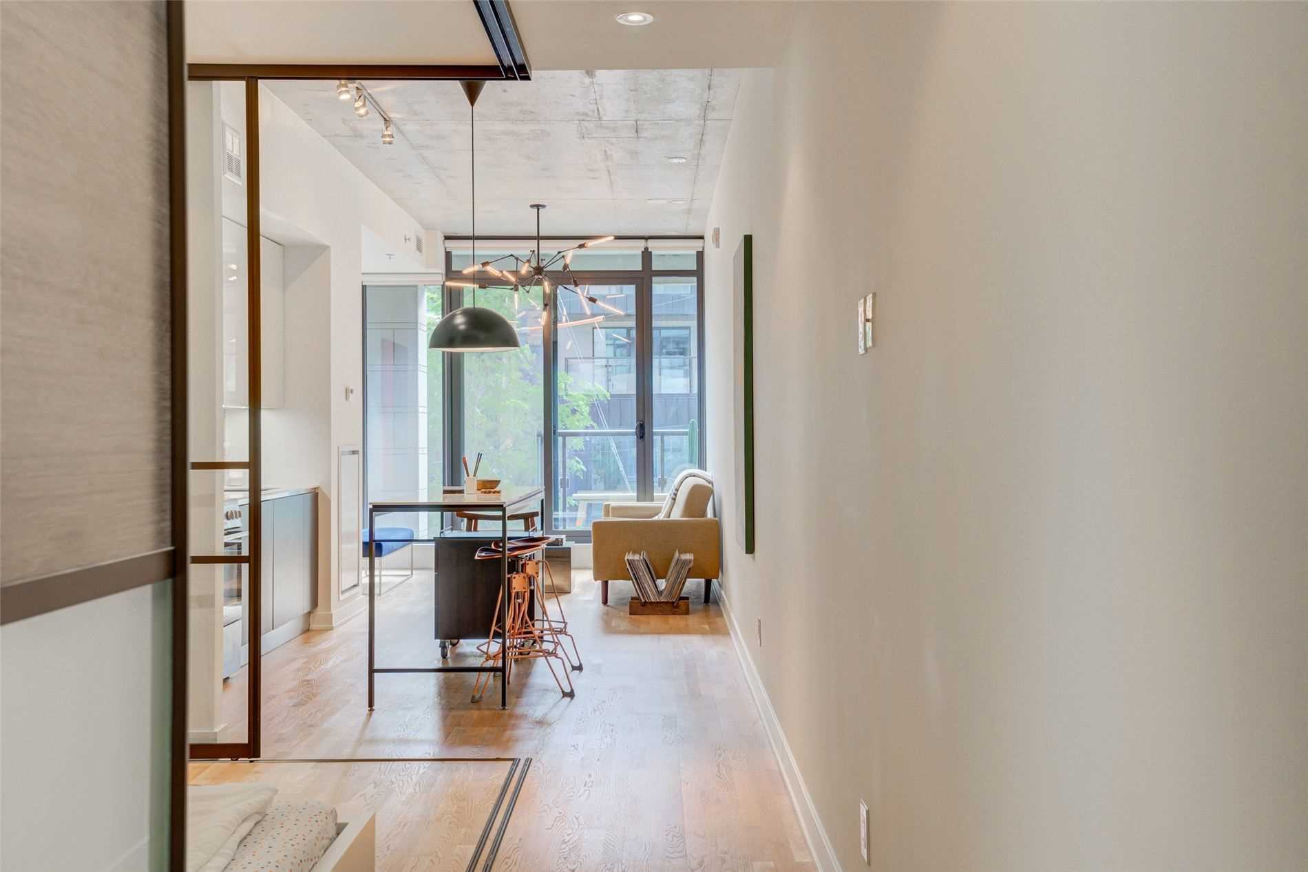Stunning East Facing Design Forward Large 1-Bedroom In The Award-Winning Boutique Art Condo. Tons Of Sunlight W/ Flr To Ceiling Windows. Loft-Style Features Include 10Ft High Exposed Concrete Ceilings & Designer Custom Finishes. Boasting A Scavolini Kitchen W/ Built-In Appl, Quartz Counters, Under Cabinet Lighting & Large Island. Extra Wide Bedroom W/ Double Closet & Room For An Office Plus Outdoor Balcony. Spa-Like Bathroom W/Rain Shower. Steps To All That Queenw & Kingw Have To Offer. A Must See! Amenities Incl. Party Room/Outdoor Deck W/Bbq Access, Fire Pit & More! Near Trinity Bellwoods Park, Direct Public Transit Routes & Surrounded By Trendy Bars, Cafes & Restaurants.