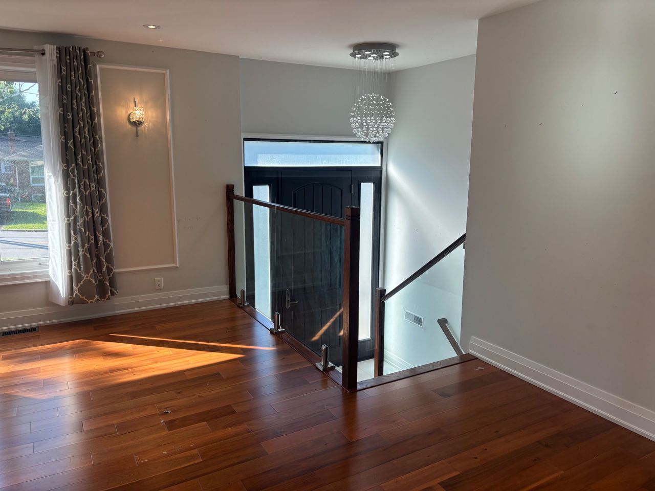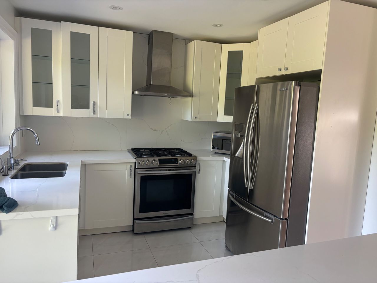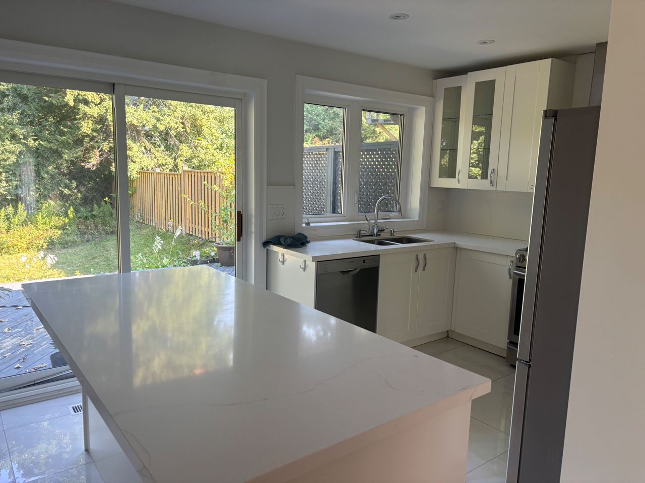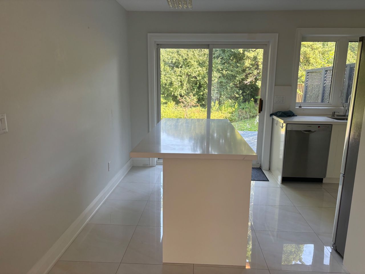主层(*Main Floor*):三间卧室,均带 ensuite 洗浴室(套内卫浴)。现代化厨房,配备不锈钢电器。可步出私人后院。洗衣房。车库停车位1个。车道停车位1个。租客负责割草和铲雪。租客支付:水电费的60%。方便出入 DVP/401 高速公路。临近小学和高中。