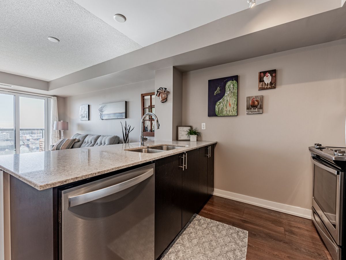 Spectacular open concept unit with Lake views located In The Heart Of The Danforth Village. This unit gives you the best balance of location, features, and of course an amazing price! Over $16,000 of upgrades were put into this unit including upgraded flooring, granite counters in kitchen and bathroom, Stainless steel appliances, high end Washer/Dryer, upgraded doors, and more! You will fall in love with the sun filled living space, designer washroom, and the extremely spacious primary bedroom that fits a King Sized bed and comes complete with a massive walk-in closet. Take advantage of this opportunity to live in one of the most accessible areas in Toronto that is mere steps from the TTC, GO Station, Don Valley Parkway, amazing trails and beaches, and an eclectic mix of some ofthe best shops and restaurants Toronto has to offer.