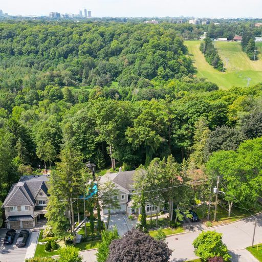 Spectacular Home overlooking largest ravine with golf course and nestled on a quiet crescent. Professionally landscaped 90 ft front yard, with new high-end stone paving. Breathtaking view of the ski slopes in winter and birds sounding forest in summer. This 4 bedroom house has an open concept main floor; living room, dining room, family room with centered fireplace; gourmet kitchen, centre island, granite counters throughout and s/s appliances. Two French doors open to stone paved patio, serene garden and bubbling fountain. Second floor; skylight above stairs lead to 4 generous bedrooms new custom built closets, den, balconies and 4pc bathroom. Cathedral ceiling primary bedroom suite with balcony has walk-in closet, huge 6pc spa marble cladded bathroom. Lower level contains large rec room, fireplace, new 3pc bath, nanny bedroom, large office, cold wine storage & laundry. This unique country-like setting house is steps to Subway, Yonge St. Shops/restaurants and 401.S/S fridge, cooktop, b/i oven, b/i dishwasher, b/i microwave, washer, dryer, ELF's, all window coverings, HWT (owned), sump pump, shelf's & cabinets in basement office, laundry & cold cellar.