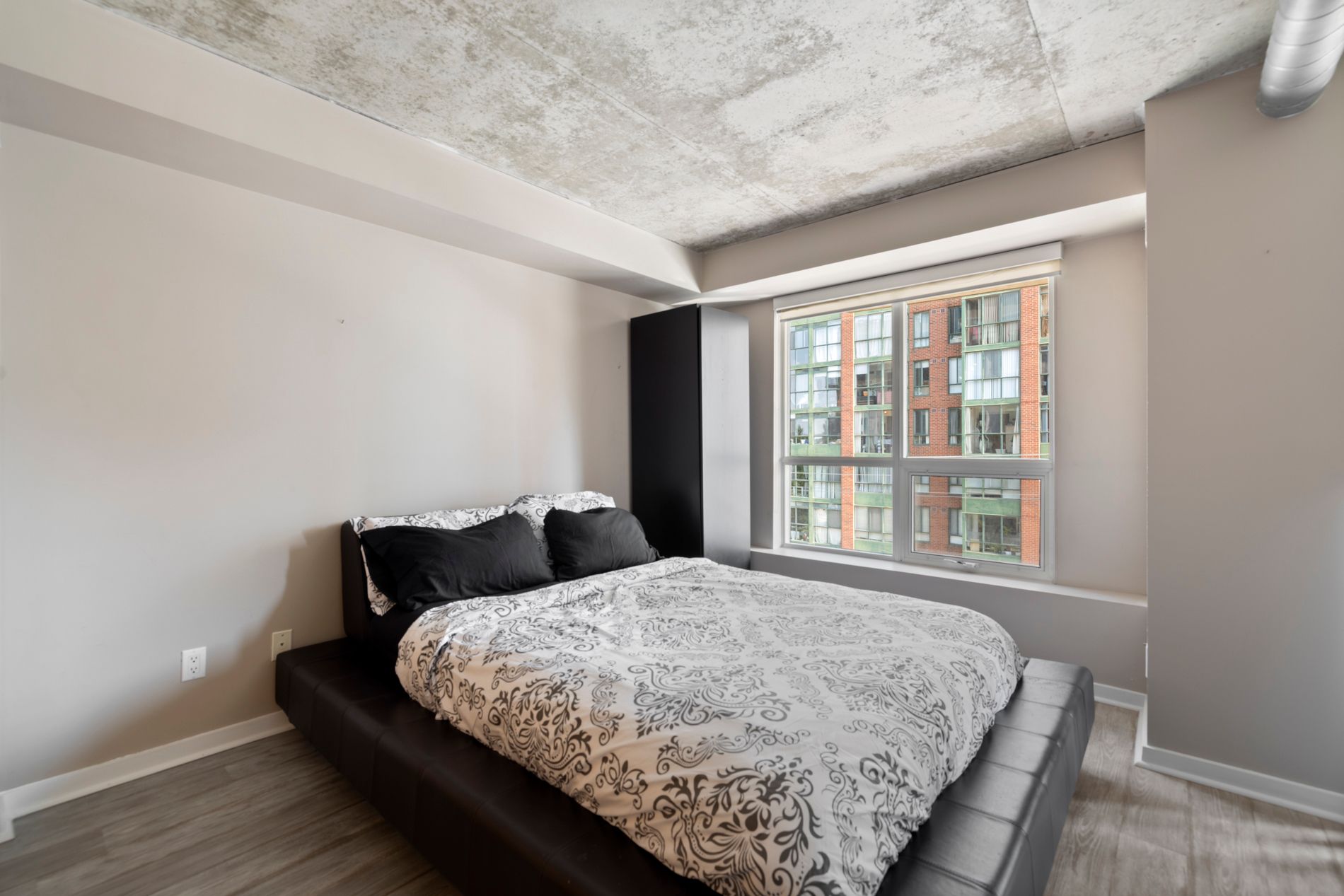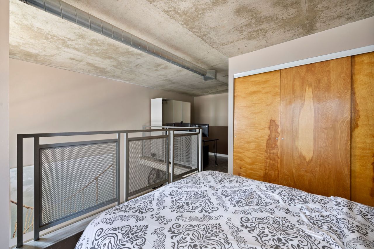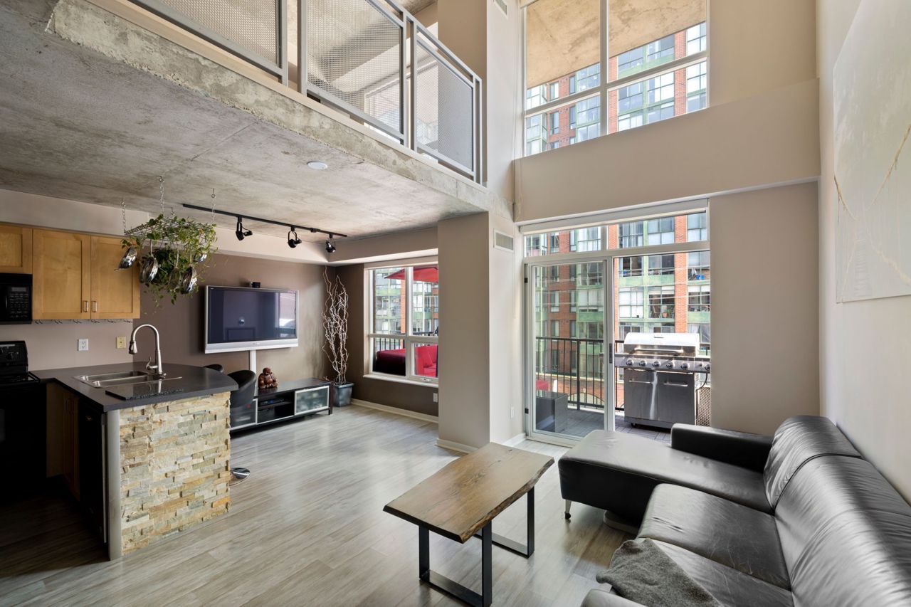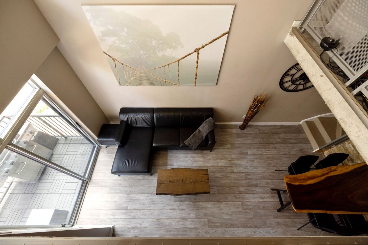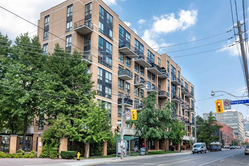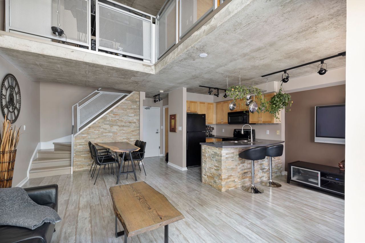 Unique & Rarely Offered Loft Hovering Over King St W, Welcome To The Kings Lofts, 2 Storey Loft In The Heart Of King West Village, 815Sqft 1 Bedroom + Den, Rare "08" Model With Deepest Layout From Door To Window Thanks To Architectural Design, Soaring 17FtCeilings, South Facing, Open Concept, Custom Designed Stone Wall, Wall Of Windows, Exposed Concrete Ceilings, Stainless Steel Hanging Chef Pot Rack, Lofty Steel Ducts & Red Fire Bell, Largest Balcony In Building, Custom Stained Oak Stairs, Custom Steel Trims, 4th Floor High Demand Unit, Pet and Rare Barbecue-Friendly Building With Maintenance Fees That Include All Utilities. Overnight Security Guard, Modern Gym, Explore A Lively Neighborhood With Restaurants, Bars, Shops, Cafes, Parks, Fitness Studios and Easy Access To Public Transportation. BBQ On Your Private Balcony With Friends, Surrounded by Trees. Guest Visitor Parking Available. Extra Storage / Pet Room Built Under Stairs Through Closet. Nest Smart Thermostat. Tiled Balcony!Includes 1 Parking, 1 Very Large Locker, 3 Bike Racks!!! Custom B/I Storage Under Stairs, Fridge, Stove, B/I Dishwasher, Washer, Dryer, B/I Microwave With Hood Fan, All Existing Light Fixtures, All Window Coverings, Hanging Chef's Pot Rack.