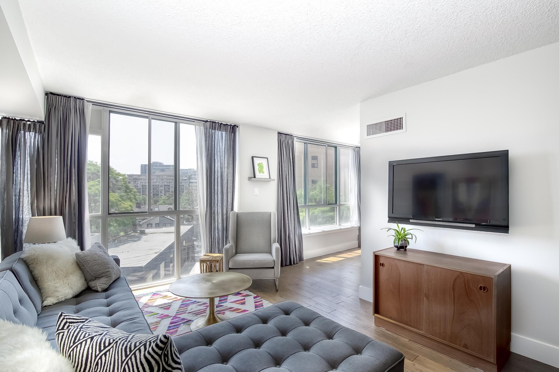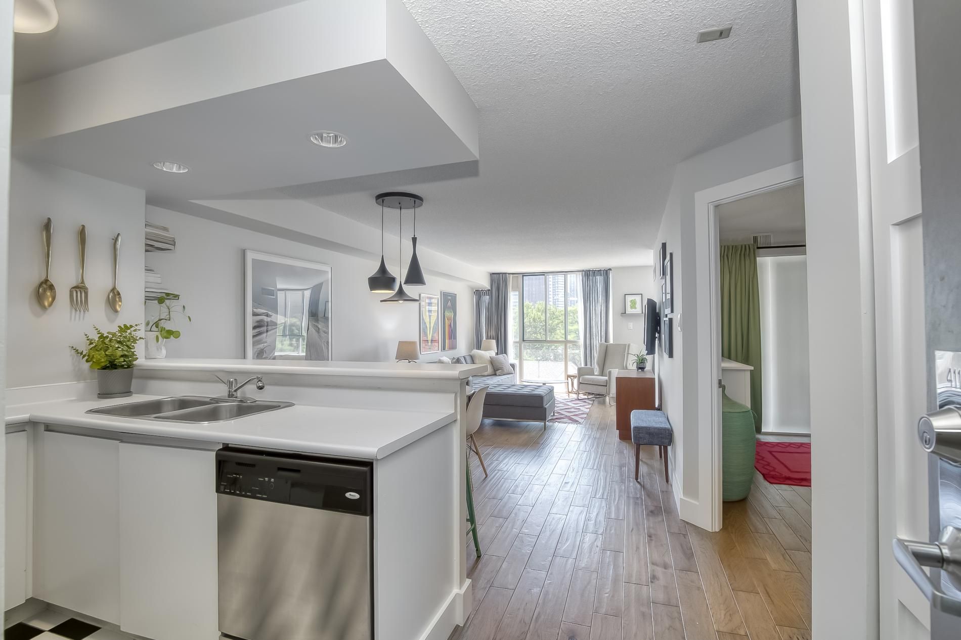 Stunning 2+1 bedroom unit in the heart of West Queen West--over 900 sq ft of living space and updated throughout! Chic engineered hardwood flooring, an open concept living room/dining room with floor-to-ceiling windows; stylish kitchen with stainless-steel appliances and a breakfast bar; custom wooden closet doors; ensuite laundry; two renovated washrooms with subway tile, a walk-in shower, a deep-soaking tub, and modern finishes. Parking for one car but also minutes away from parks, trendy shops and restaurants, major transit lines, schools, and more! Don't forget to visit to Roof Garden to experience all of the stunning views and all the amenities: Rooftop terrace with Jacuzzi, BBQ's, dining Gazebo, furniture loungers, running track with views of downtown and the lake, steam room, sauna, gym, private tennis court. Outdoor private playground and underground visitors parking. All of must be seen.WEIGHT RESTRICTION ON PET IS 30 LBS.