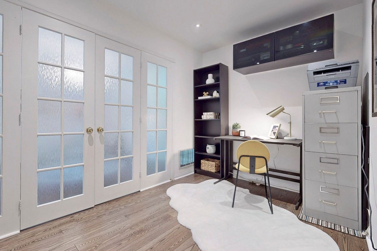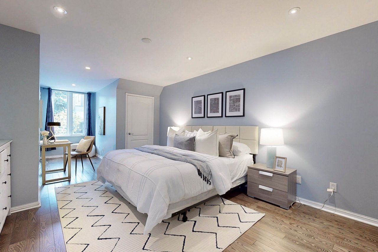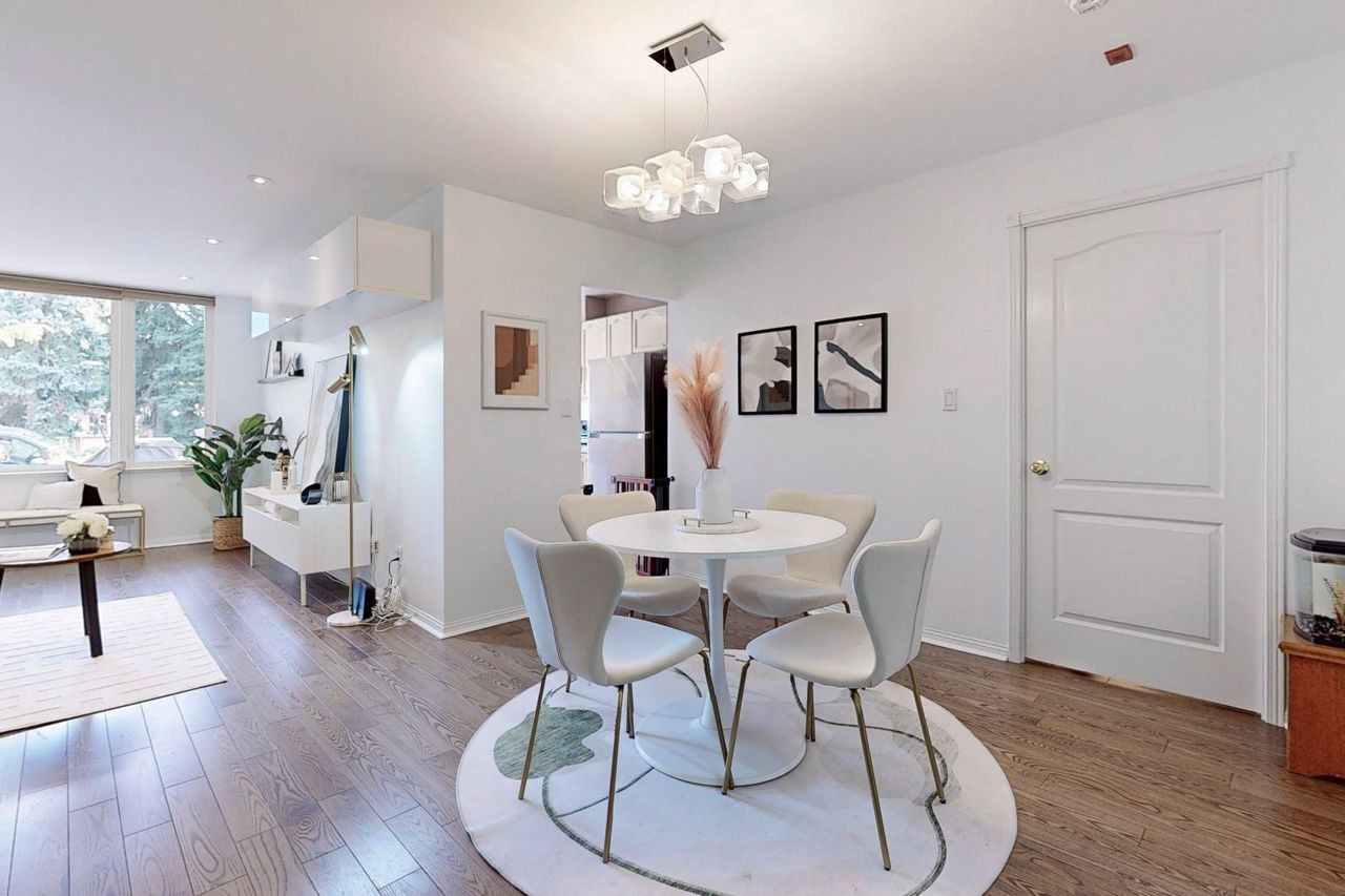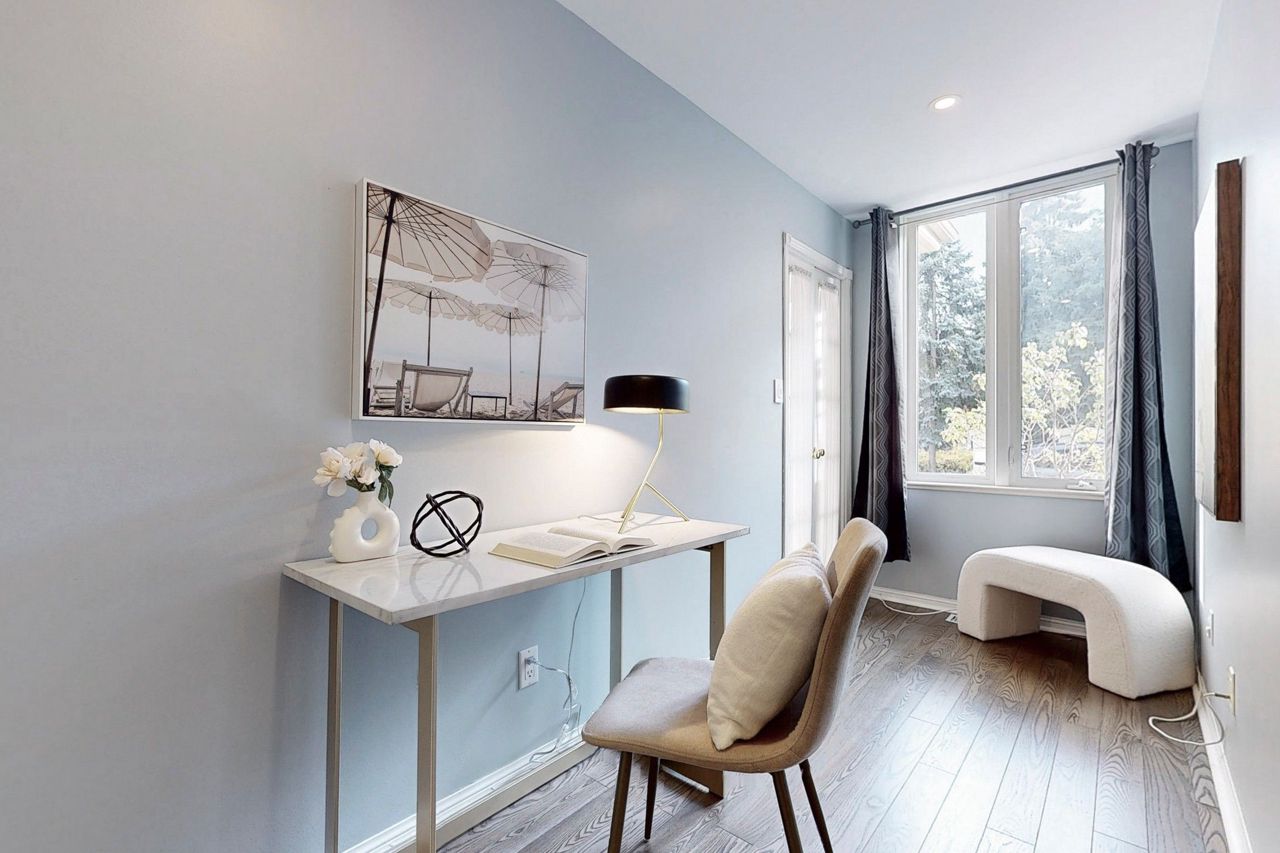 Rarely offered, large (1,221 Sqft) main level Tridel built stacked condo townhouse. Located in desirable Willowdale east, minutes walk to the highly sought after Mckee Public School. A family friendly and calm enclave ideally situated minutes away from all the amenities located at the Yonge and Finch corridor. The North York Centre and Finch subway station are a short 10 minute walk away. Open concept unit, freshly painted throughout with a garden view. One large primary bedroom with full ensuite bathroom and office area. Large den that can easily be used as a second bedroom. Spacious kitchen with direct W/O to the front terrace. Guest bathroom, and washer and dryer area updated (2017). Potlights throughout the home and main reno completed in 2015. A/C unit upgraded (2016). Engineered Hardwood installed (2017). New fridge in (2018). Closet doors upgraded at front entrance (2021). One underground parking space and ensuite locker included. 24 Hour security onsite.Fridge, Stove dish washer, Washer and Dryer, light fixtures