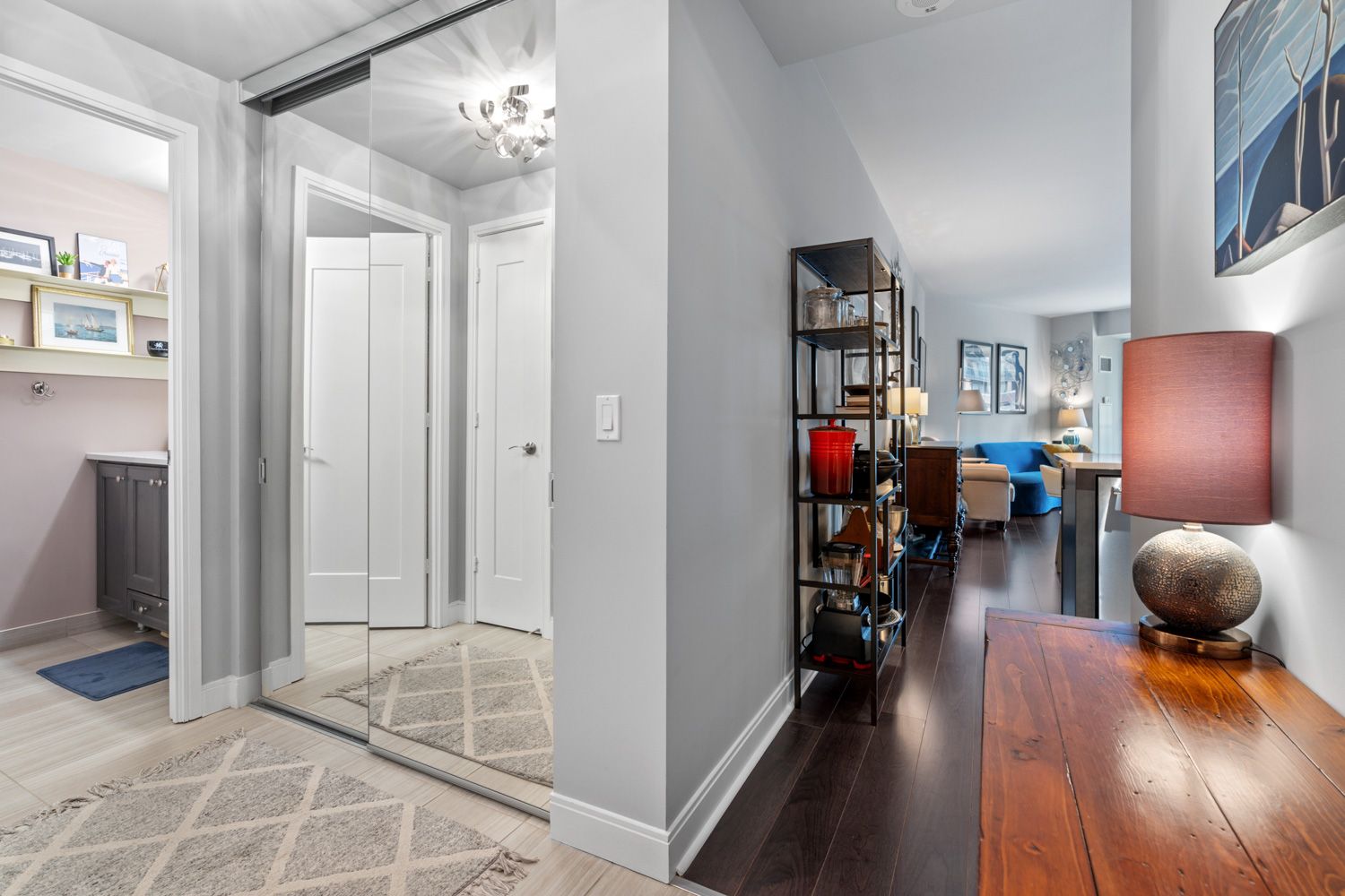 Window Flr To Ceil Mirrored Closet Hardwood Floor