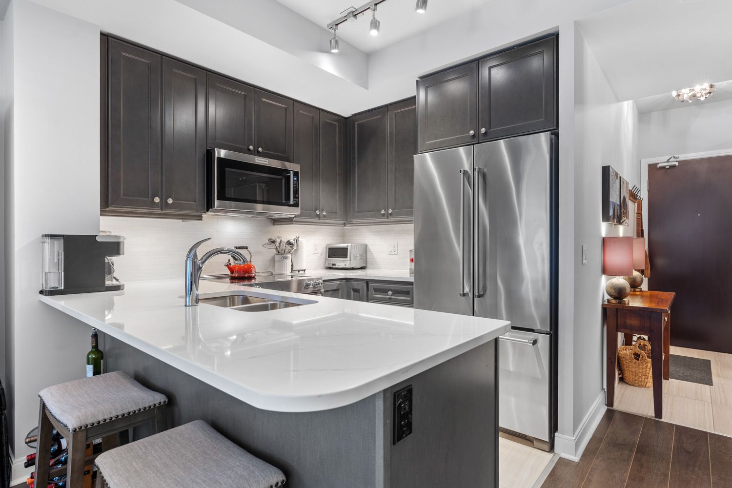 Stainless Steel Appl Breakfast Bar Tile Floor