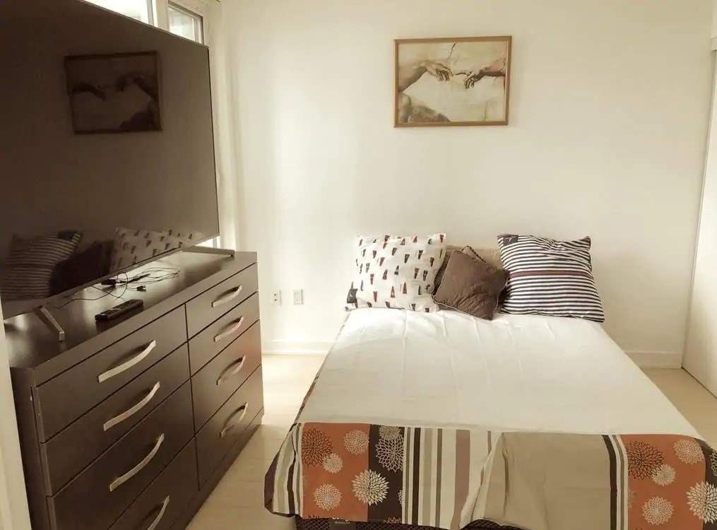 Great Location!"Spectra" Building In Waterfront Communities Downtown. Fully Furnished 1+1 Luxurious Condo With Lake View.Bright, Large Windows Along Living And Bedroom. Den Can Be Used As 2nd Bedroom . Few Minutes Drive To Highway. Walk To Streetcar, Transit, Park, Banks, Restaurants, Supermarket, Harbour Front And All Amenities Including Badminton, Basketball, Movie Theatre, Massage Room, Party Room And Play Room. First Mont Rent Free. 75" 4K Television, Stainless Steel (Fridge, Dishwasher, Stove, Microwave With Hood Fan), Ensuite Laundry (White Staked Washer & Dryer), Track Light In Kitchen, Kitchen Granite Counter Top, Backsplash, All Elfs & Window Coverings.
