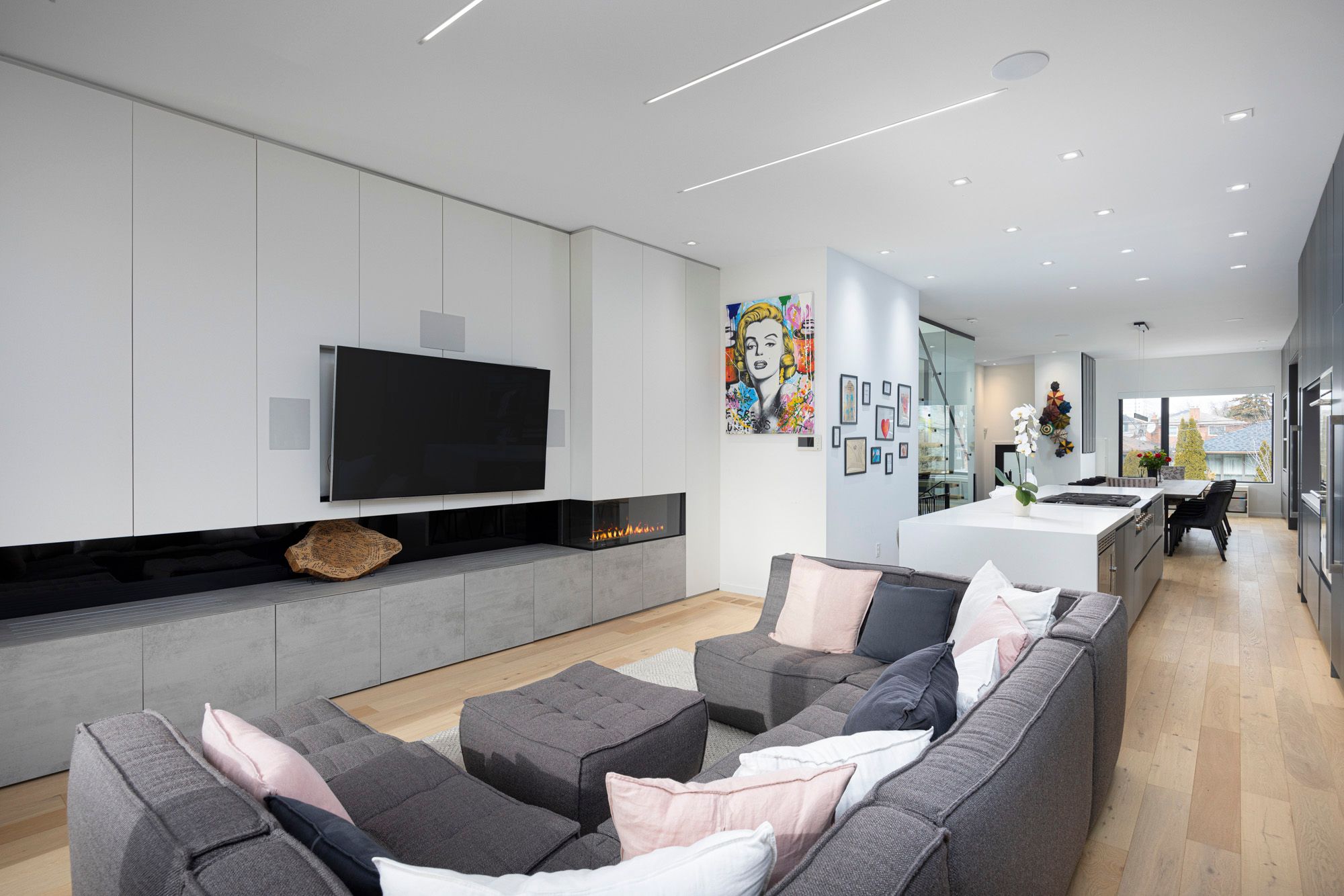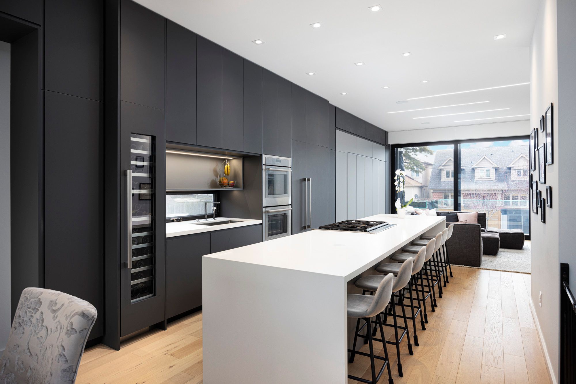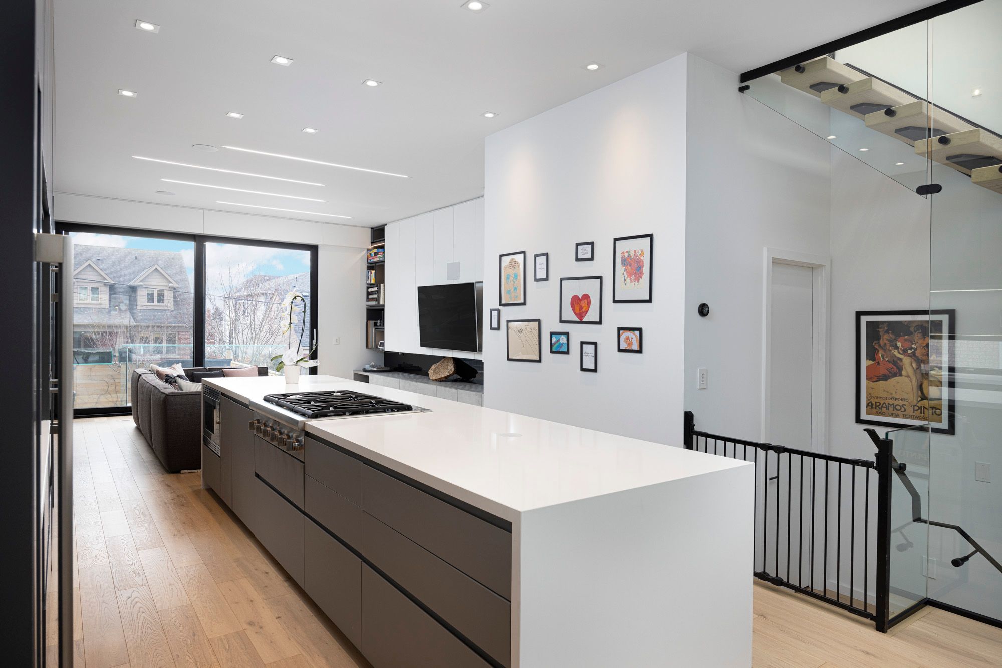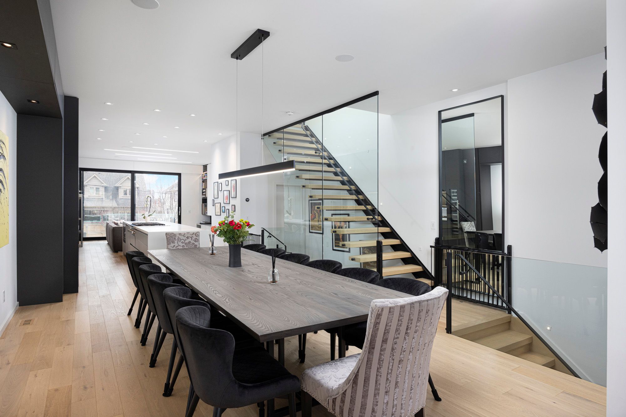Welcome to a Builder's Own Modern Home! Open Concept Modern Masterpiece 4 Mins Away From the Subway! Chef's Gourmet Kitchen With Huge 14 Ft Waterfall Quartz Island!! Thermador Stainless Appliances With Double Oven, Wine Fridge, Custom Built-in Pantry, Automatic Built-in Hood Fan, Paneled Dishwasher. Floor To Ceiling Windows With Lift + Slide Doors to Huge Deck. Linear Fire Place, Sonos Surround Sound System on Main Floor/Primary Bedroom/Backyard. Built in Speakers for Family Room TV. Lutron Controlled Lighting Interior + Exterior Backyard/Frontyard. Frontyard/Backyard Irrigation System, BBQ Gas line, Deck With Glass Bar, Backyard Shed With Power and Wifi Booster. Custom Controlled Automatic Blinds, Floating Stairs Case, White Oak Flooring Throughout, Custom Built-in Closets Throughout, Filtered Water System, Central Vac, Exterior Camera System, Video Door Bell, 10 Feet Ceiling Main/9 Feet Second/10 Feet Basement, One Bedroom Basement Apartment With Polished Heated Concrete Floors!See Schedule C