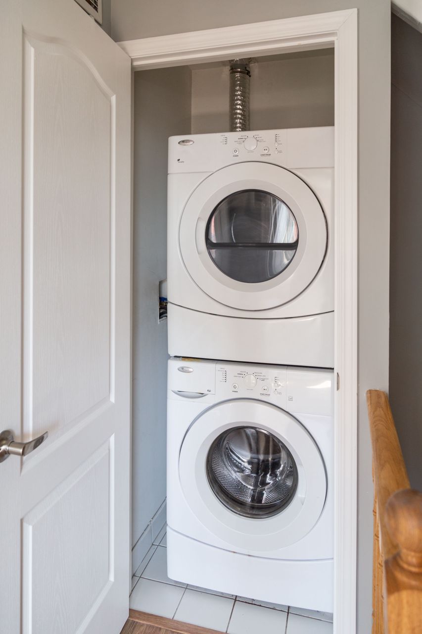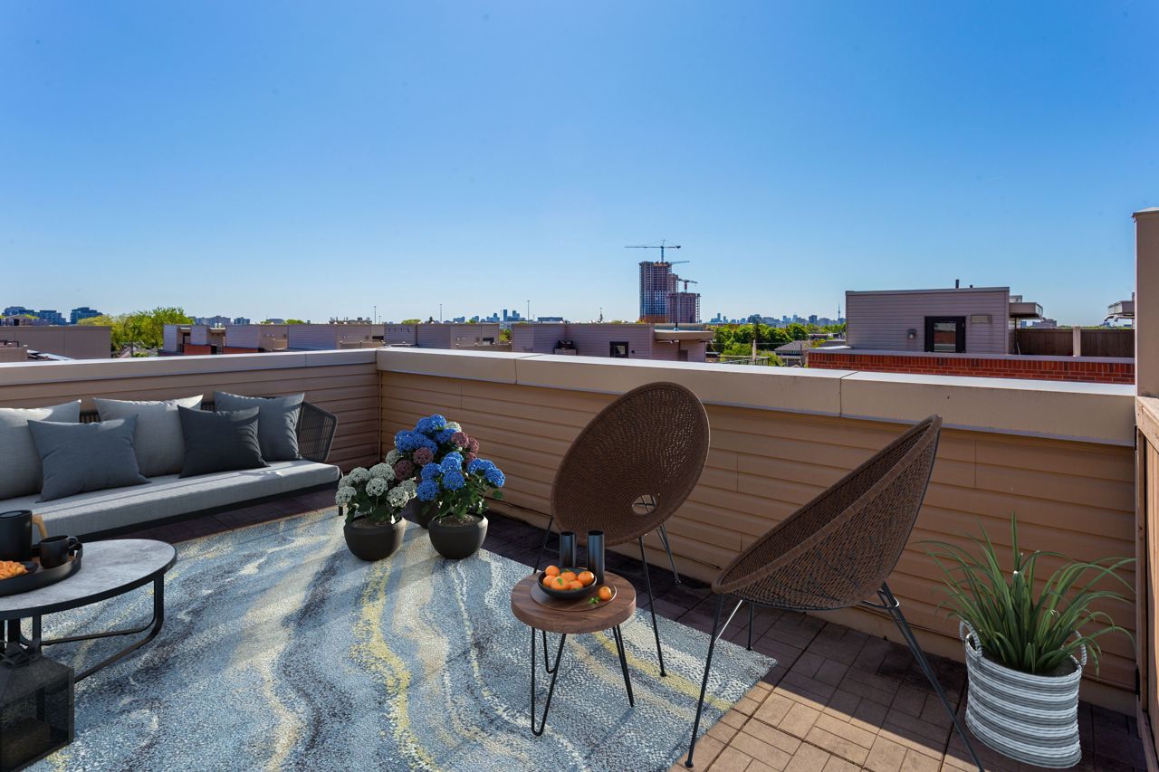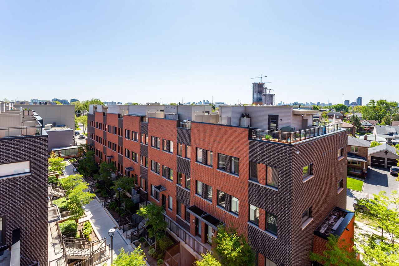 Modern Urban Condo Townhouse At Yorkdale Village Being the end unit allows for additional windows and sunshine also Boasts Laminate Floors on main level and Berber Carpet On 2nd Level and staircases, main fl offers open concept design, kitchen overlooking living room/dining room combination and powder room. 2nd floor has 2 bedrooms, full bath and laundry with full size machines , the third floor offers a great terrace facing South and endless views of downtown and CN tower . This unit has 1 parking and Locker. Ttc At Your Doorstep And Close To Humber River Regional Hospital, Yorkdale, And Downsview Park.Stainless Steel Kitchen Appliances: Stove, Fridge, Built-In Dishwasher, And Built-In Over-The-Range Microwave. All Existing Light Fixtures. Washer And Dryer.