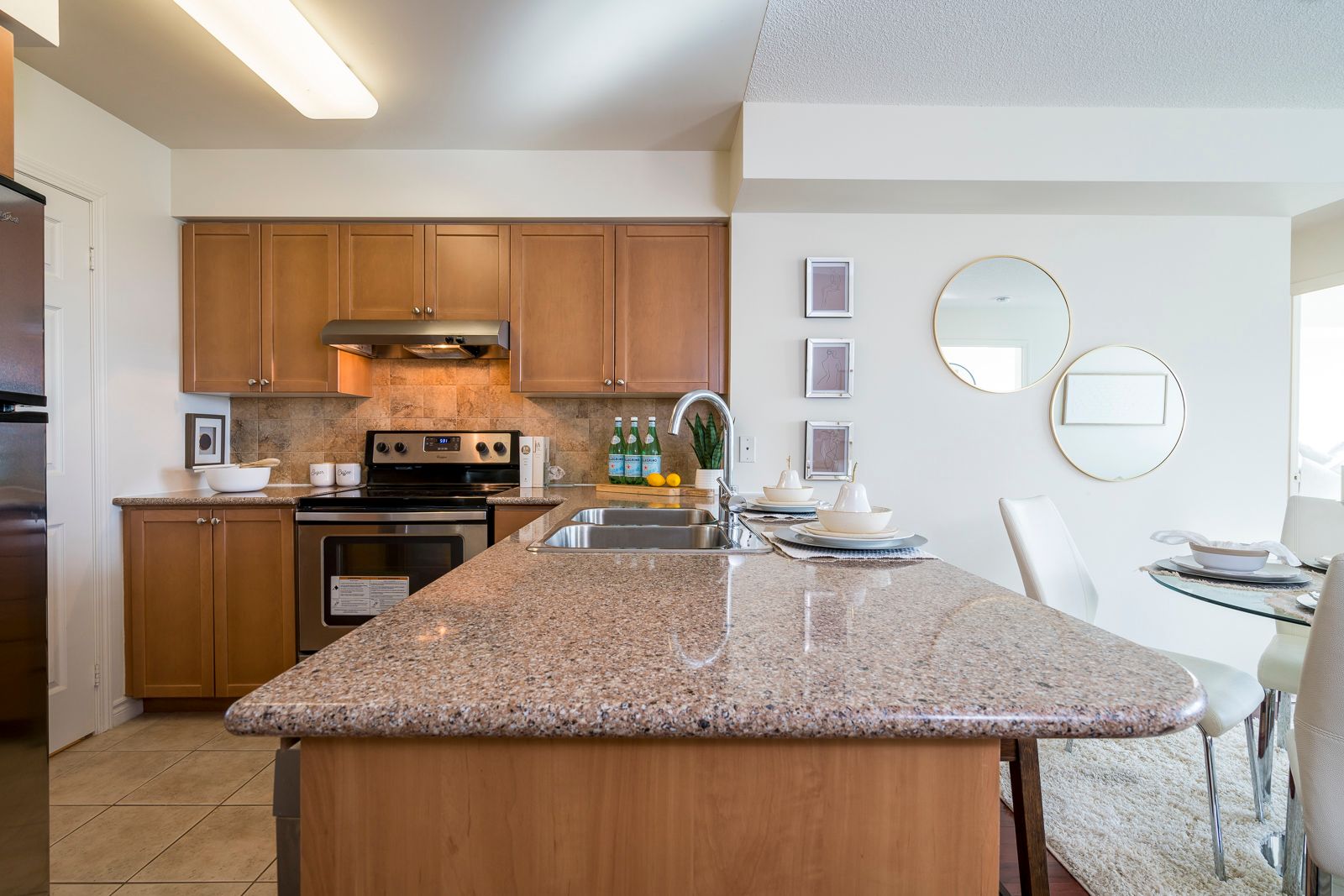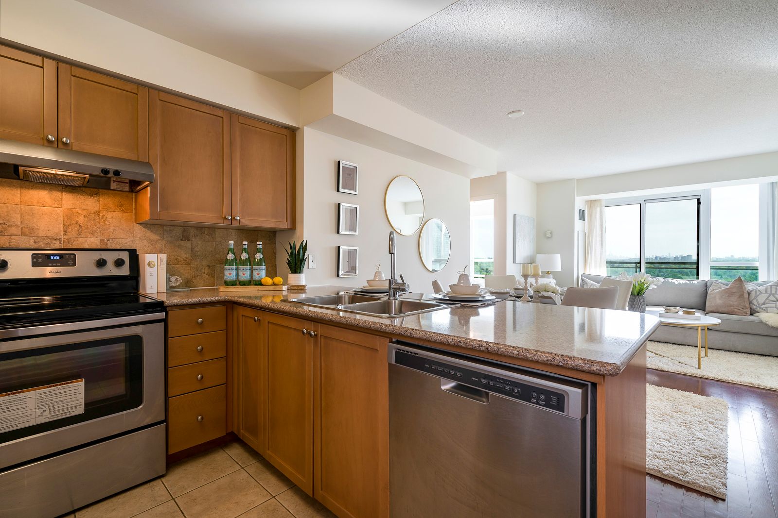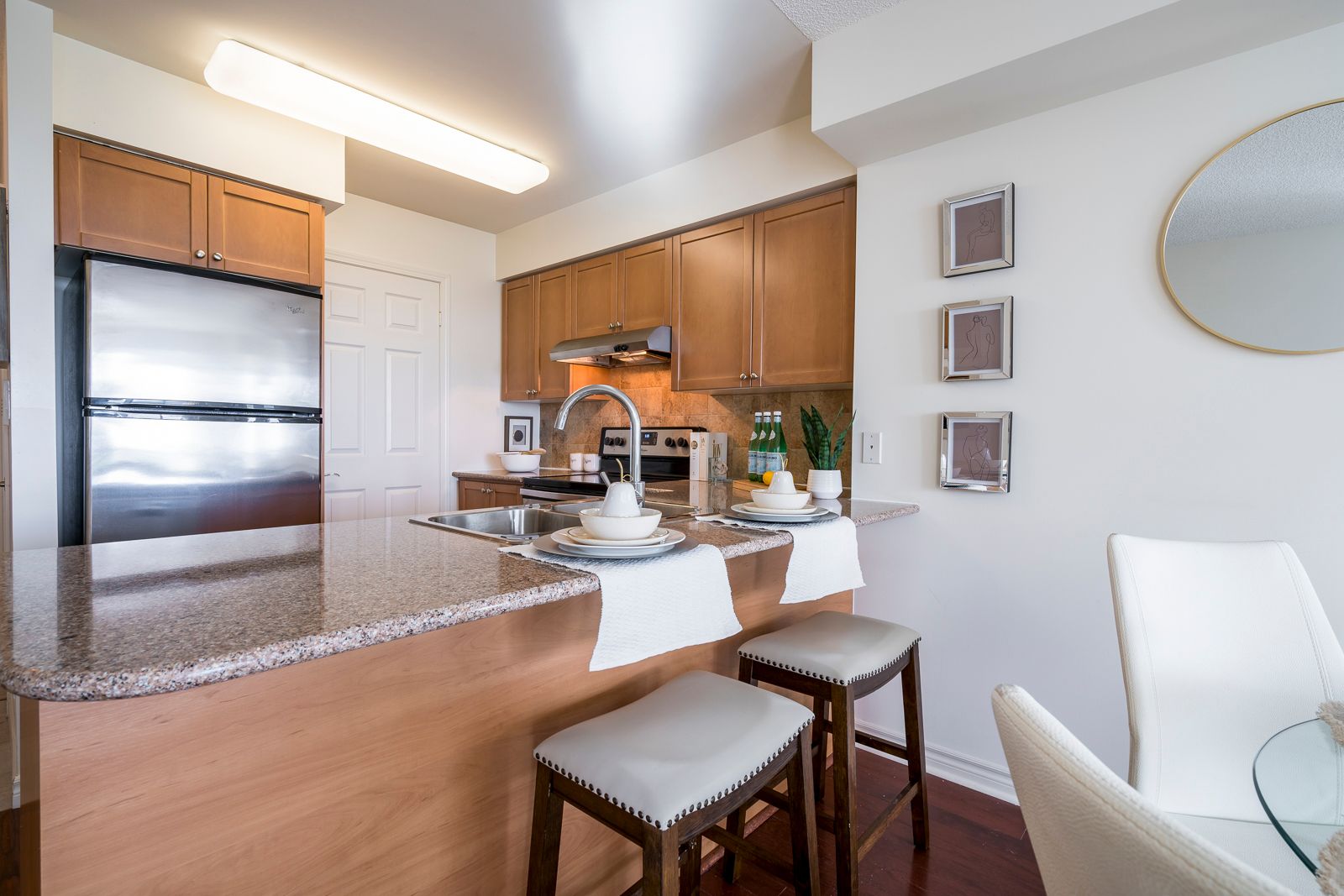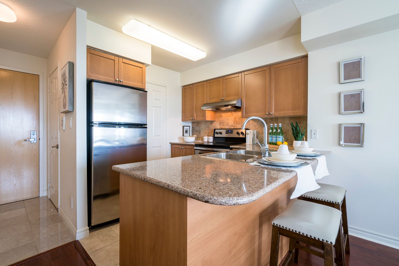 Move in ready! Sun Filled 2 Bedroom Unit In The Highly Desired Altitude Condos! Floor To Ceiling Windows & Hardwood Throughout. Open Kitchen w/ Granite Counters, A Breakfast Bar & S/S Appliances. Parking, A Locker & Ensuite Laundry. Excellent Amenities Includes A Theatre, Gym, Library, Pool, Guest Ensuites & 24/7 Security. Shopping, Restaurants, Ymca, Ttc/Rt/Stc/401 All Within 5 Min Drive/Walking. Don’t Miss This Great Opportunity To Own A Unit In This Amazing Tower!Fridge, Stove, Washer And Dryer, Dishwasher. Existing Window Coverings