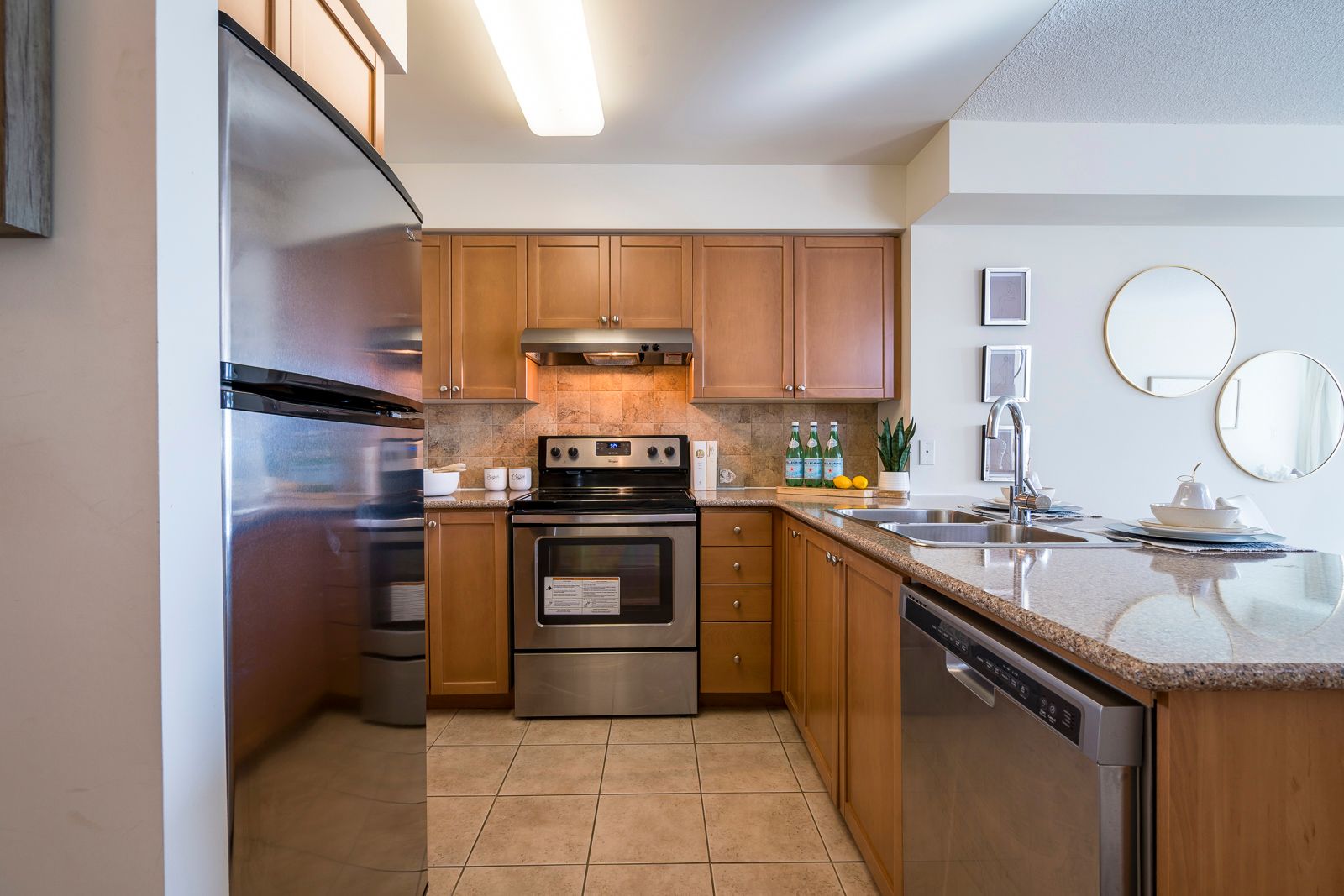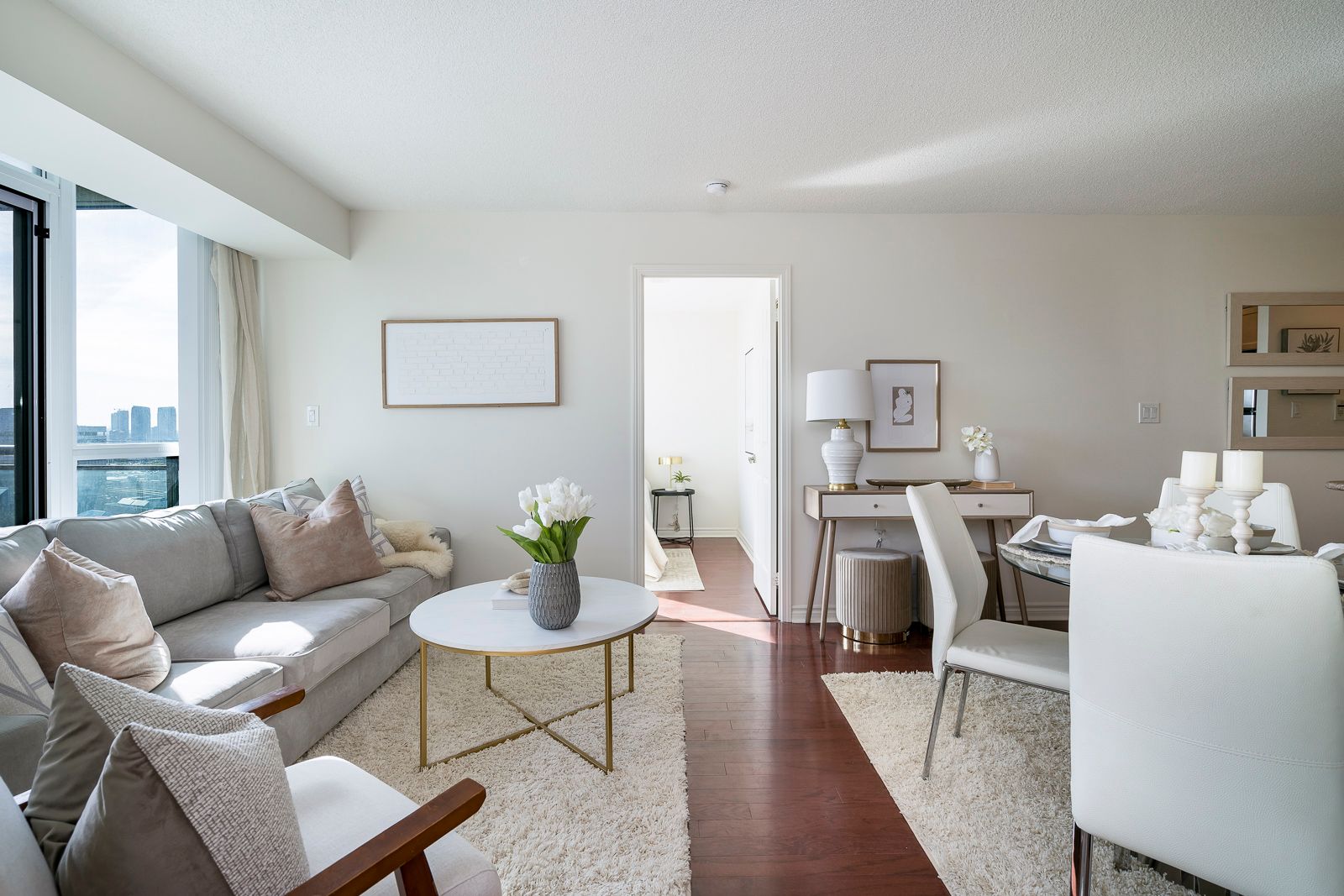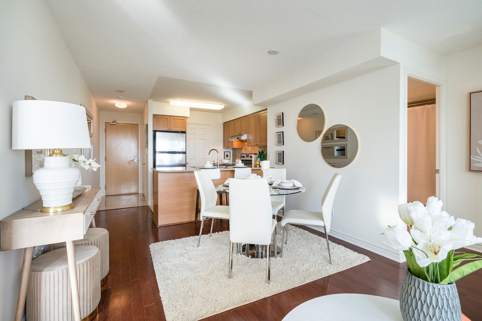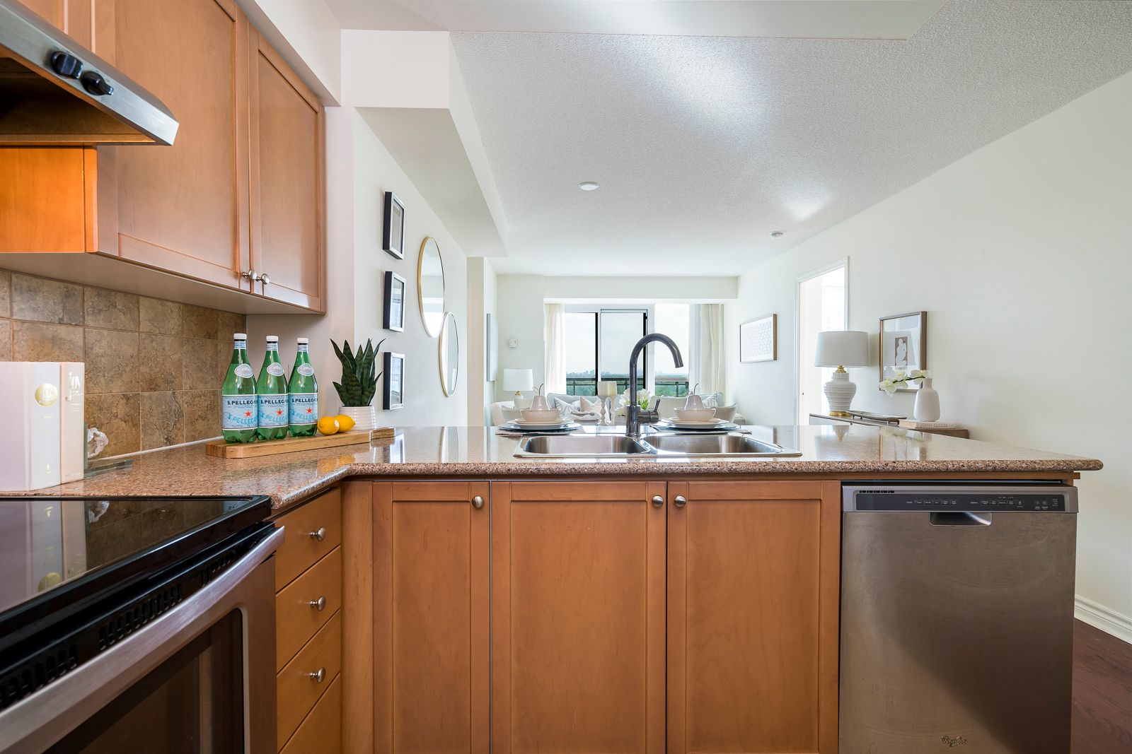 Move in ready! Sun Filled 2 Bedroom Unit In The Highly Desired Altitude Condos! Floor To Ceiling Windows & Hardwood Throughout. Open Kitchen w/ Granite Counters, A Breakfast Bar & S/S Appliances. Parking, A Locker & Ensuite Laundry. Excellent Amenities Includes A Theatre, Gym, Library, Pool, Guest Ensuites & 24/7 Security. Shopping, Restaurants, Ymca, Ttc/Rt/Stc/401 All Within 5 Min Drive/Walking. Don’t Miss This Great Opportunity To Own A Unit In This Amazing Tower!Fridge, Stove, Washer And Dryer, Dishwasher. Existing Window Coverings