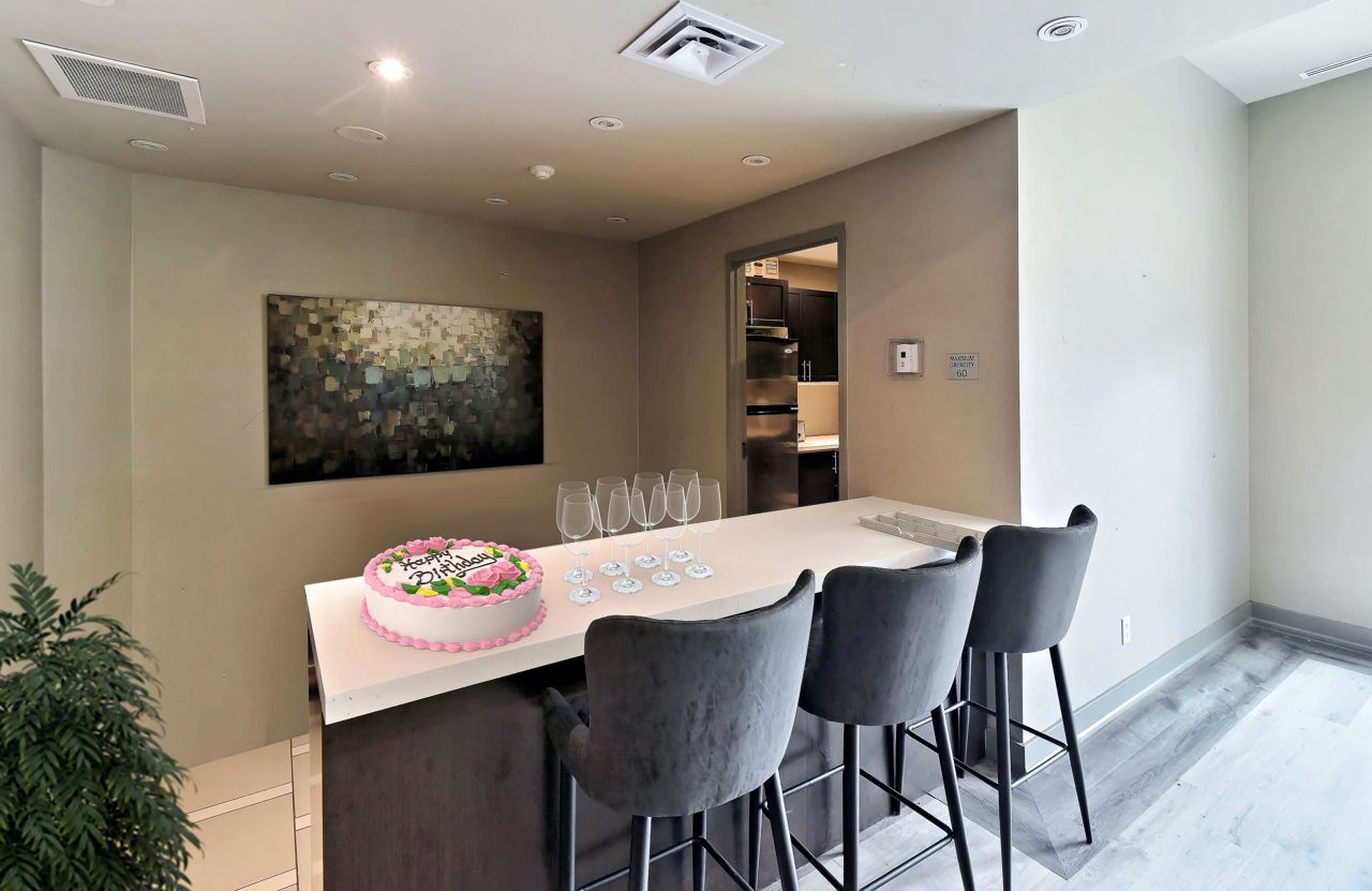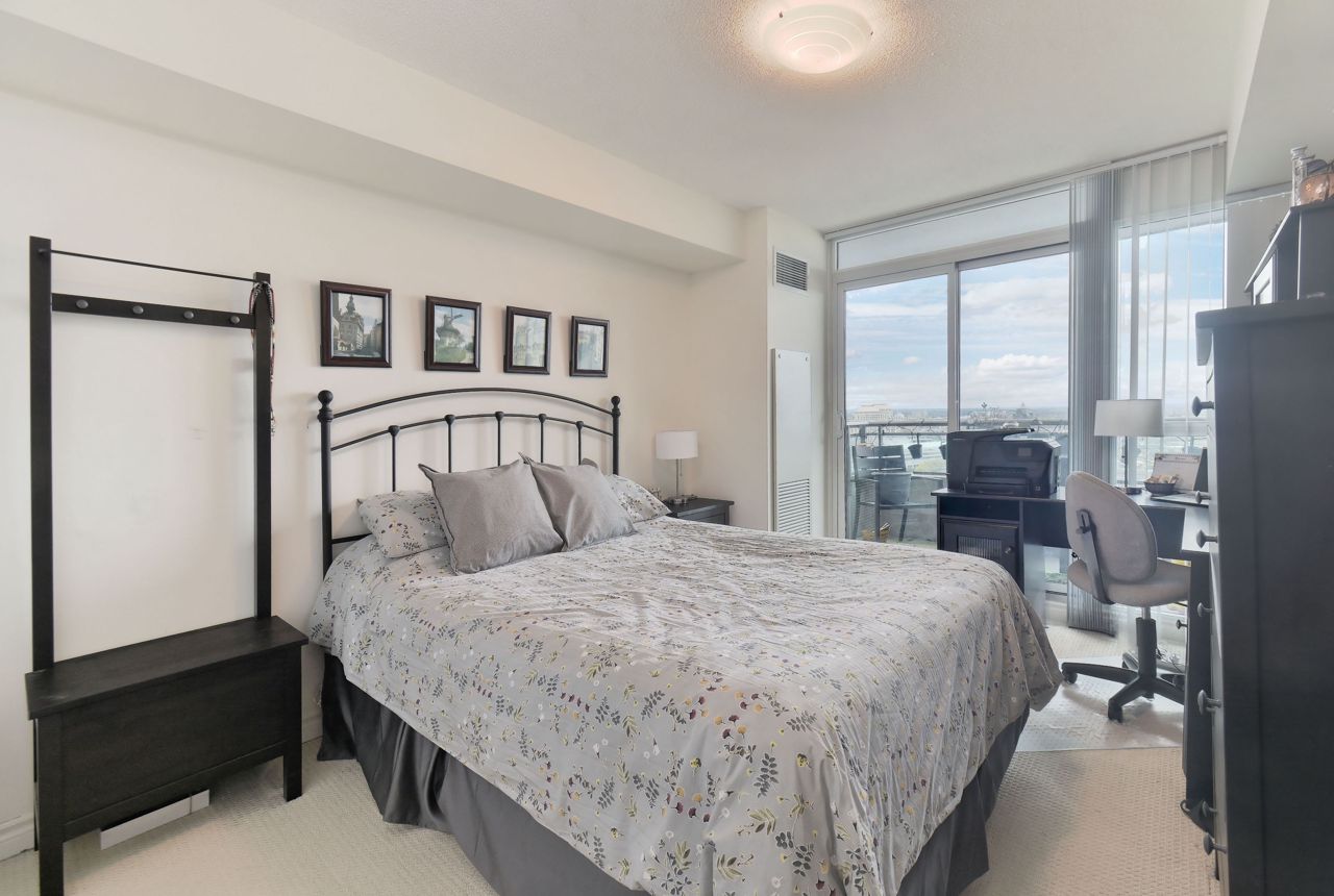Builder’s Custom Suite. 1459 Sq Ft. Large 3 Bedroom 2 Bath Unit. 3rd bedroom currently used as den. Hardwood Floors in Living/Dinning. 2 Balconies. Oversized Primary Bedroom Suite w/ 2 large Walk In Closets & Ensuite. Gourmet Eat In Kitchen w/ Breakfast Area & Bar. Feels like a house. 2 Car Oversized Parking on same level as Locker! Minutes to TTC and Groceries. Exceptionally Bright Space with Many Flr to Ceiling Windows. Spectacular views throughout. Building amenities include 24 Hr Concierge, Indoor Pool, Guest Suite, Billard and Media Rooms.