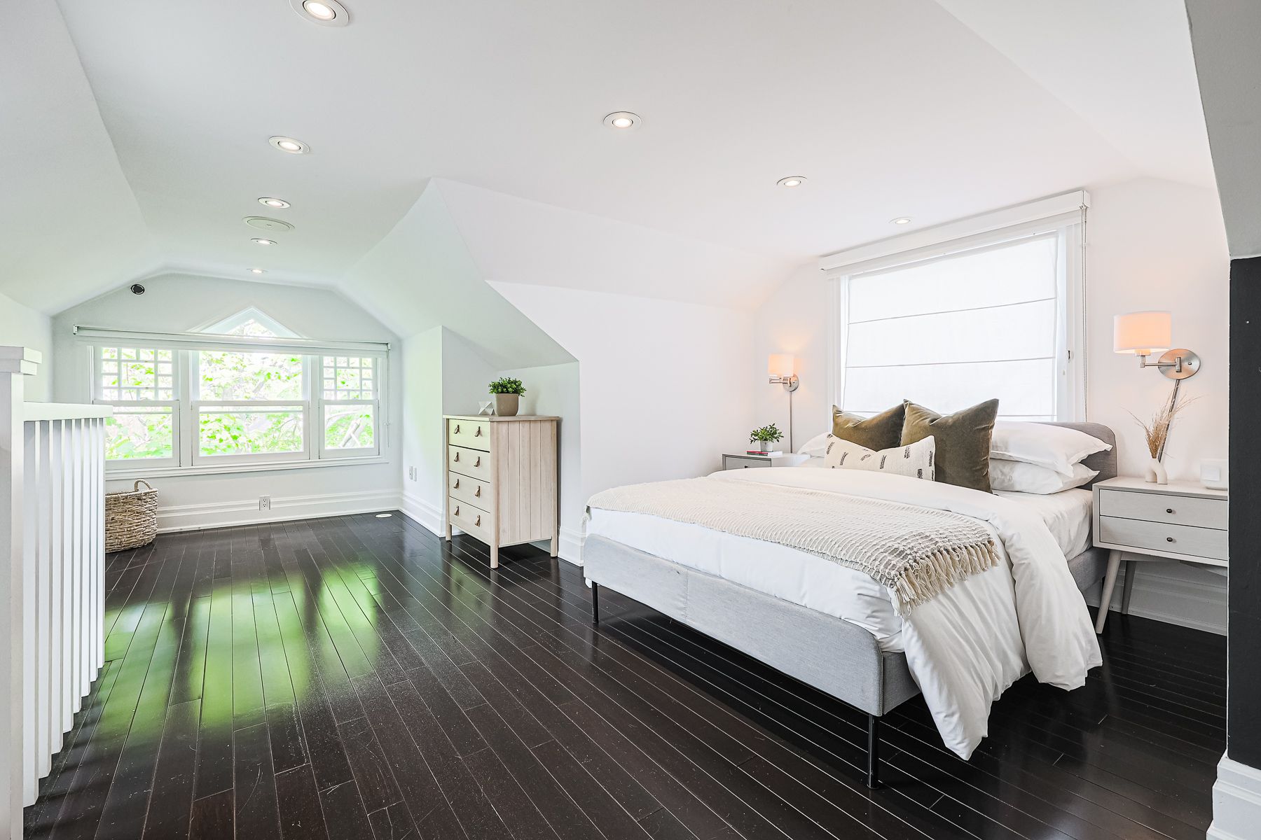 The best of the beaches! Fabulous curb appeal on this red brick, fully detached, updated 4 bed/4 bath home located South of Queen! Large front porch and Room for 2 cars on the rare private driveway. Great layout with a powder room and Modern updated kitchen that overlooks the open concept living room, dining room and family room on the main floor. 2 good sized bedrooms plus a West facing Master retreat with walk in closet and updated en-suite make up the 2nd floor. 3rd floor loft space works well as 4th bedroom, office or rec room. Finished basement with new floors, gas fireplace and a walk out to the backyard. Custom storage everywhere in the home! 2nd laundry room on 2nd floor. Large 32 X 110 lot with professional landscaping throughout. Quiet, West facing backyard is Spectacular for entertaining. AAA location in the heart of the beaches, steps to the water and the best shops, dining and cafes on Queen street.Custom "Control 4" AV system with built in speakers, california shutters, hot tub , shed in backyard. Built in Sub Zero Fridge. Great home inspection available